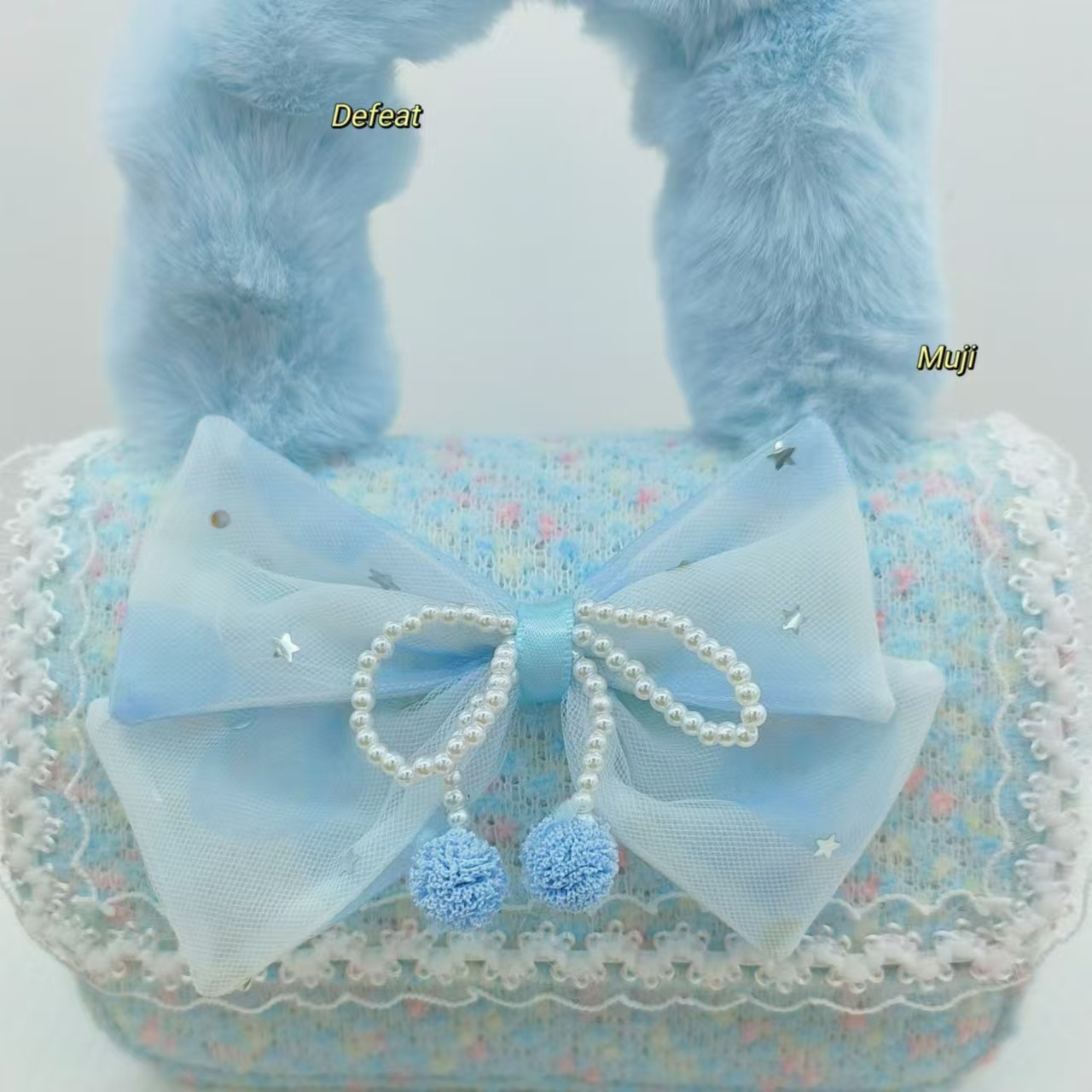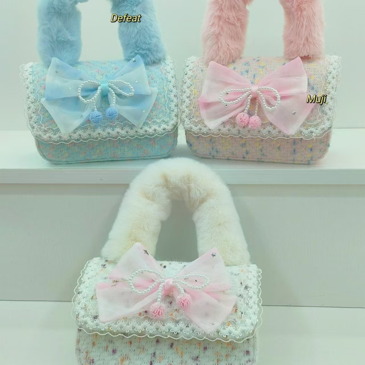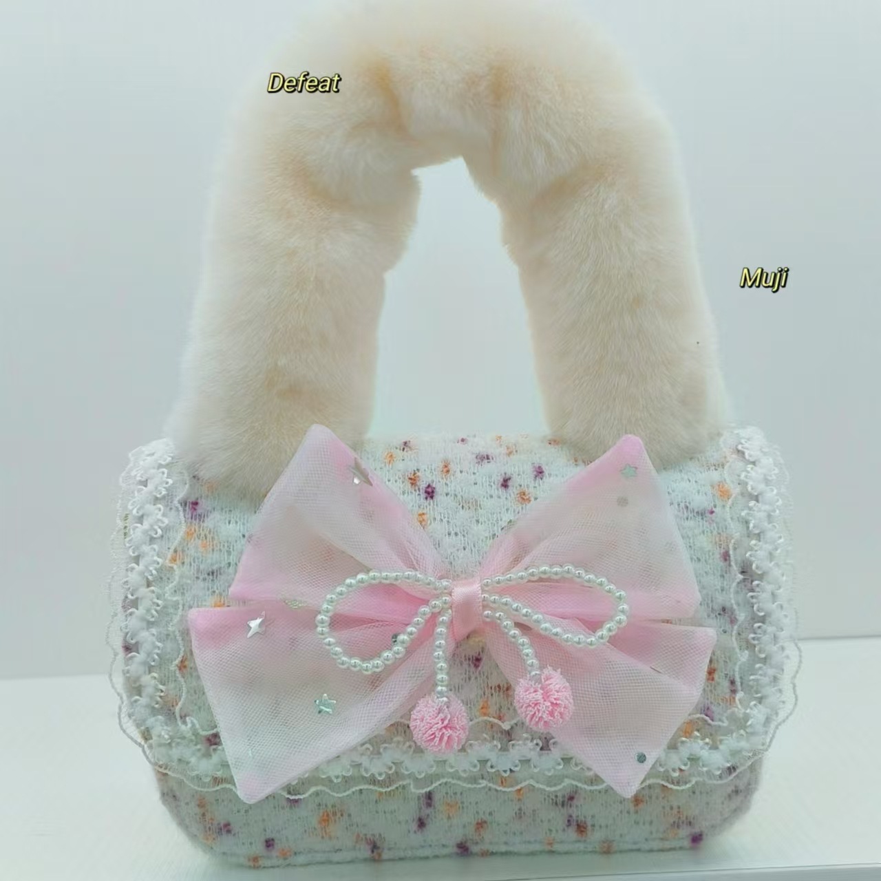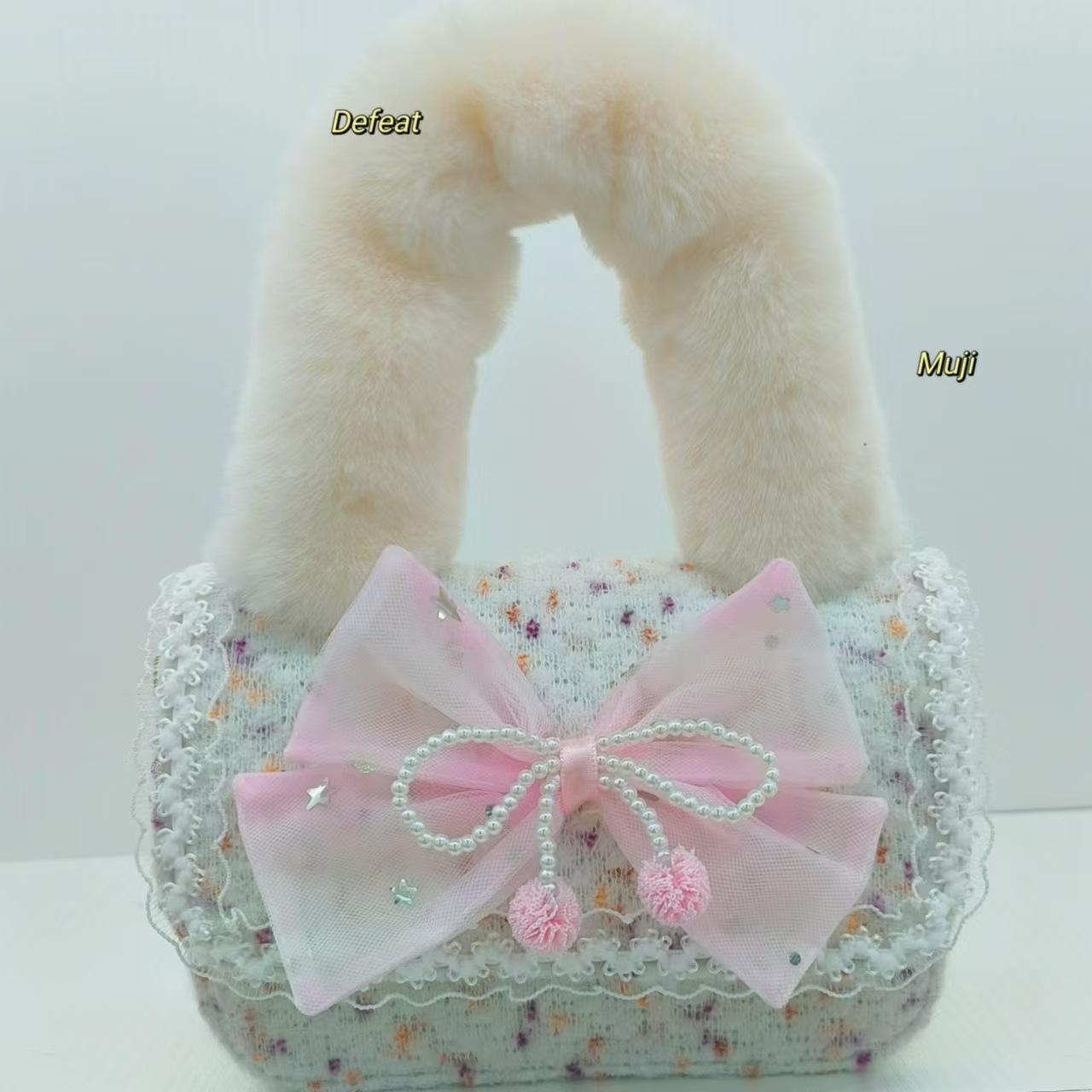 Bolso de peluche de arco, bolso de princesa, bolso de hombro, bolso de mochila, bolso de cambio, bolso de accesorios lindos.
