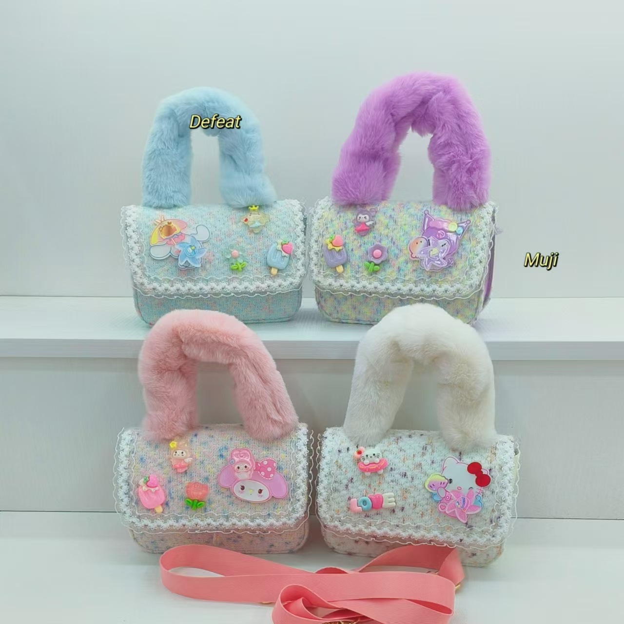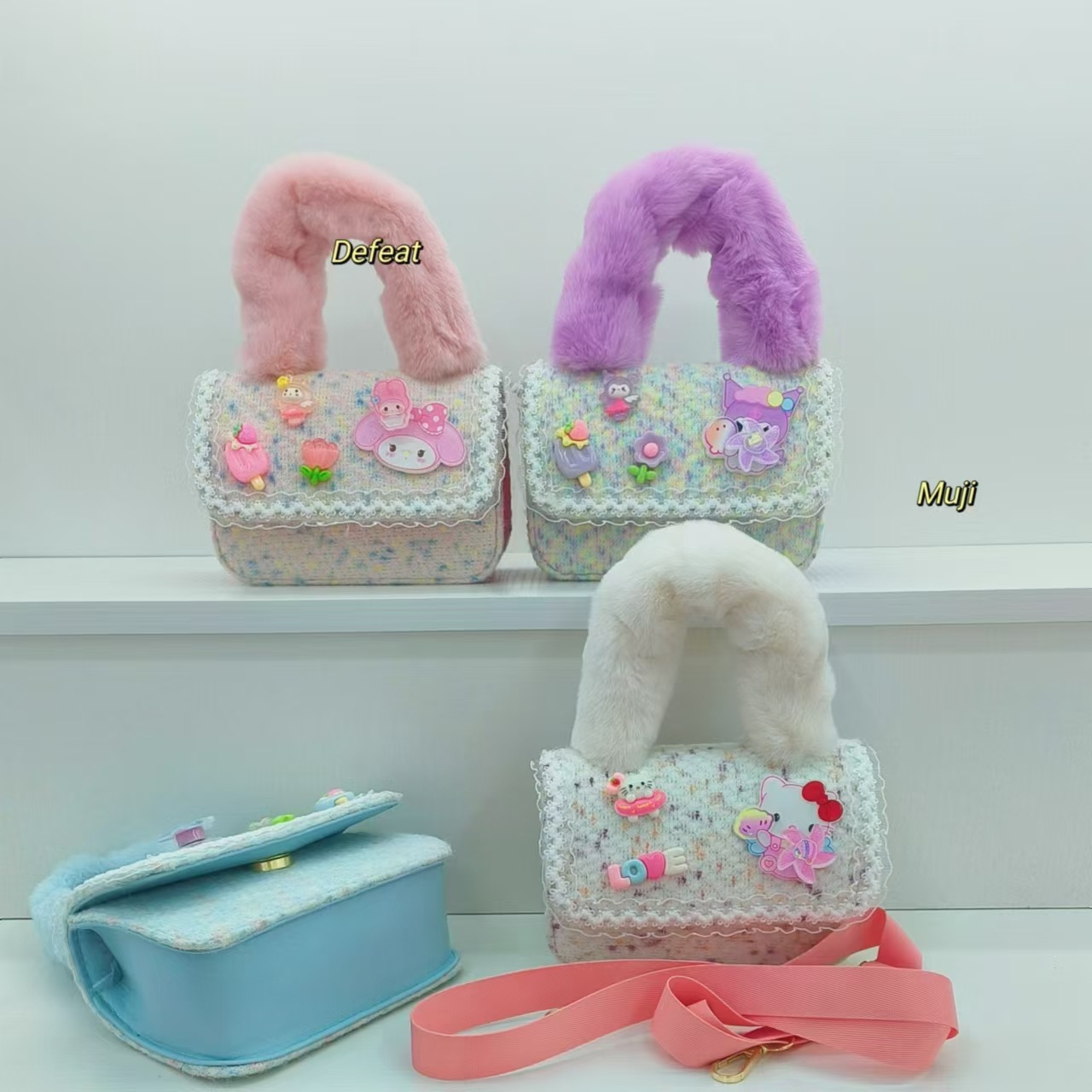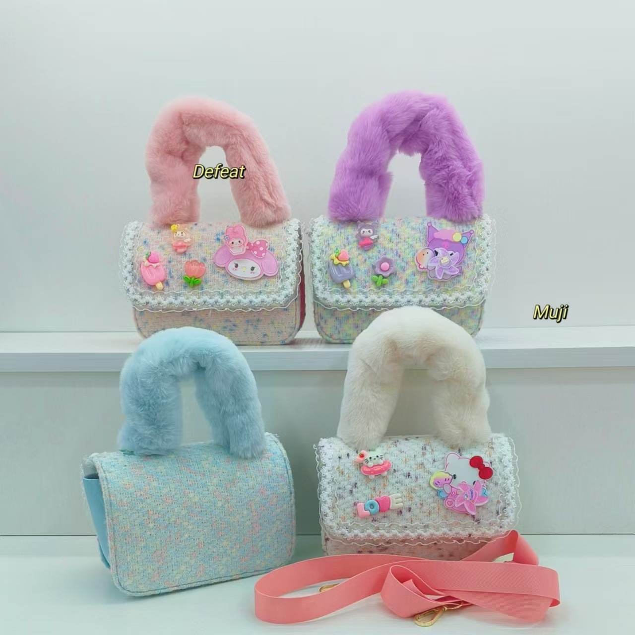 Bolso de peluche, bolso de hombro, bolso de cinturón, bolso de cambio, bolso de accesorios, bolso de princesa, bolso para niños.