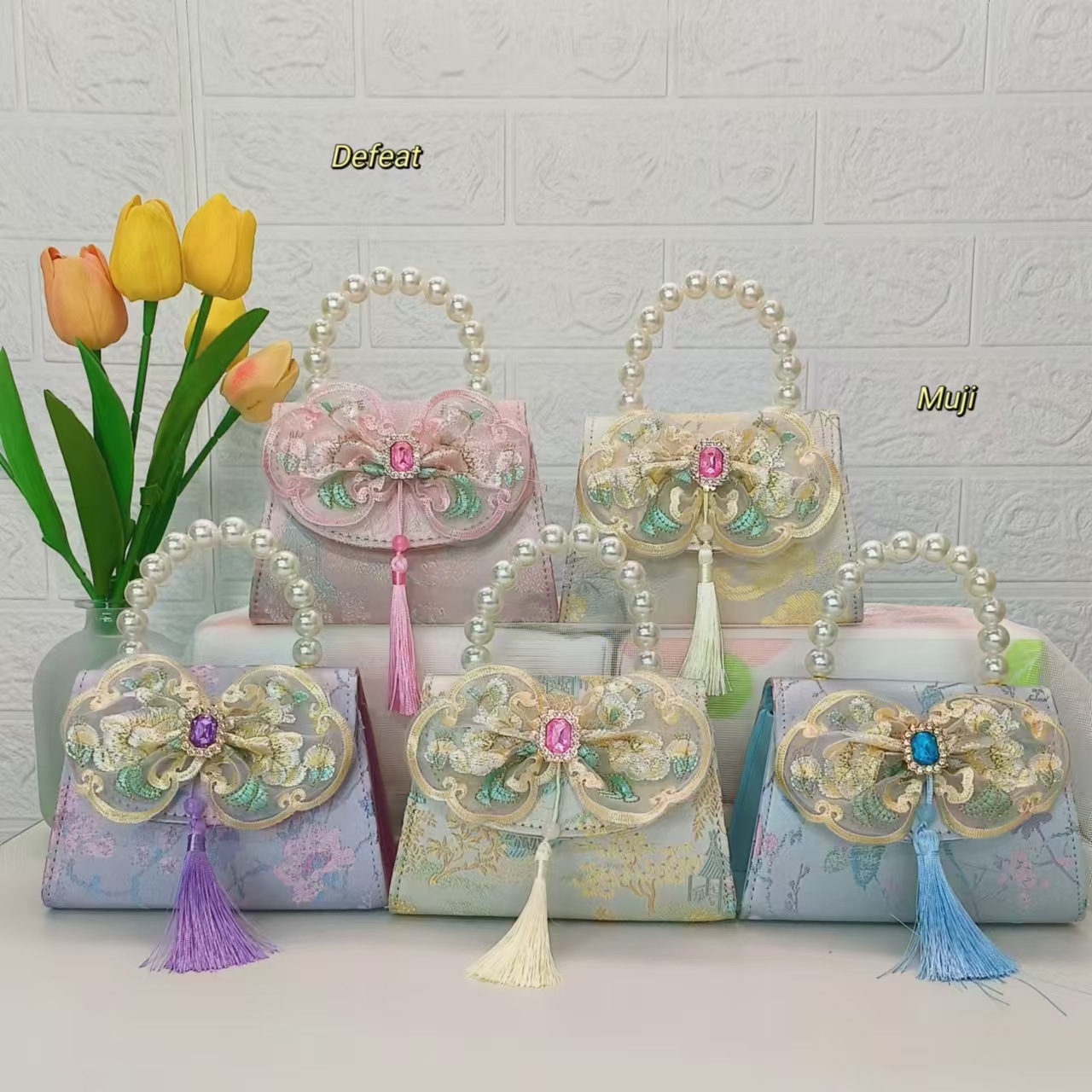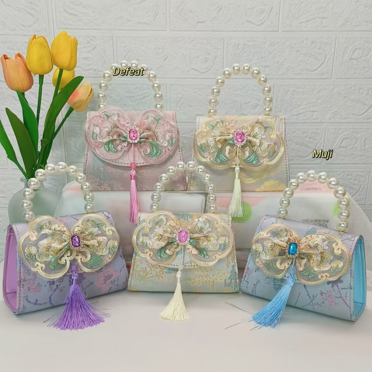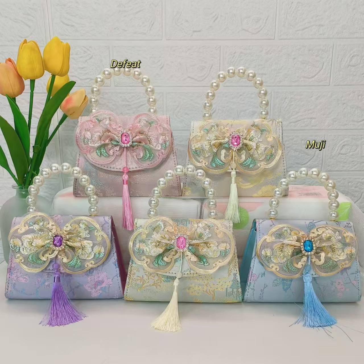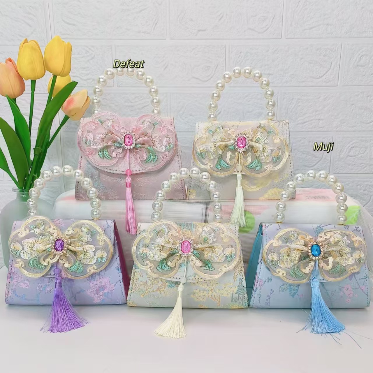 Bolso de perla nuevo estilo chino bolso de niños bolso de cambio para niñas bolso de cadena bolso de arco bolso pequeño