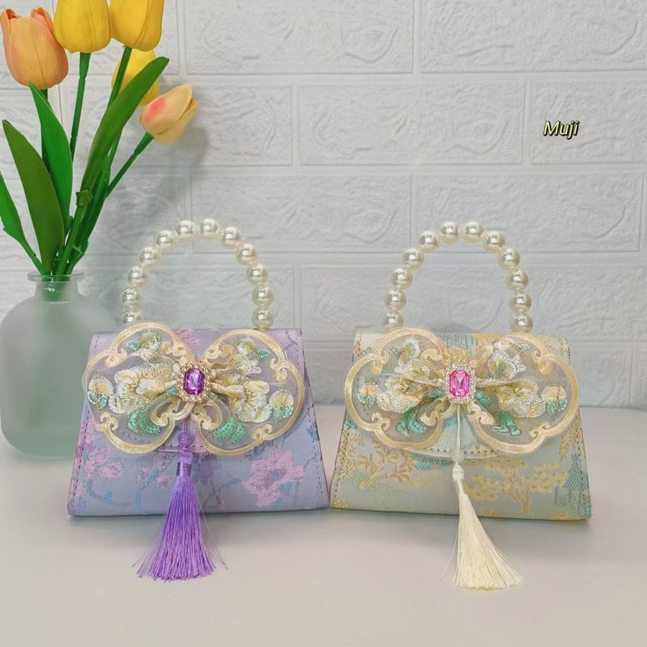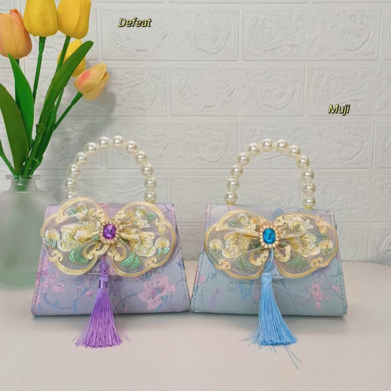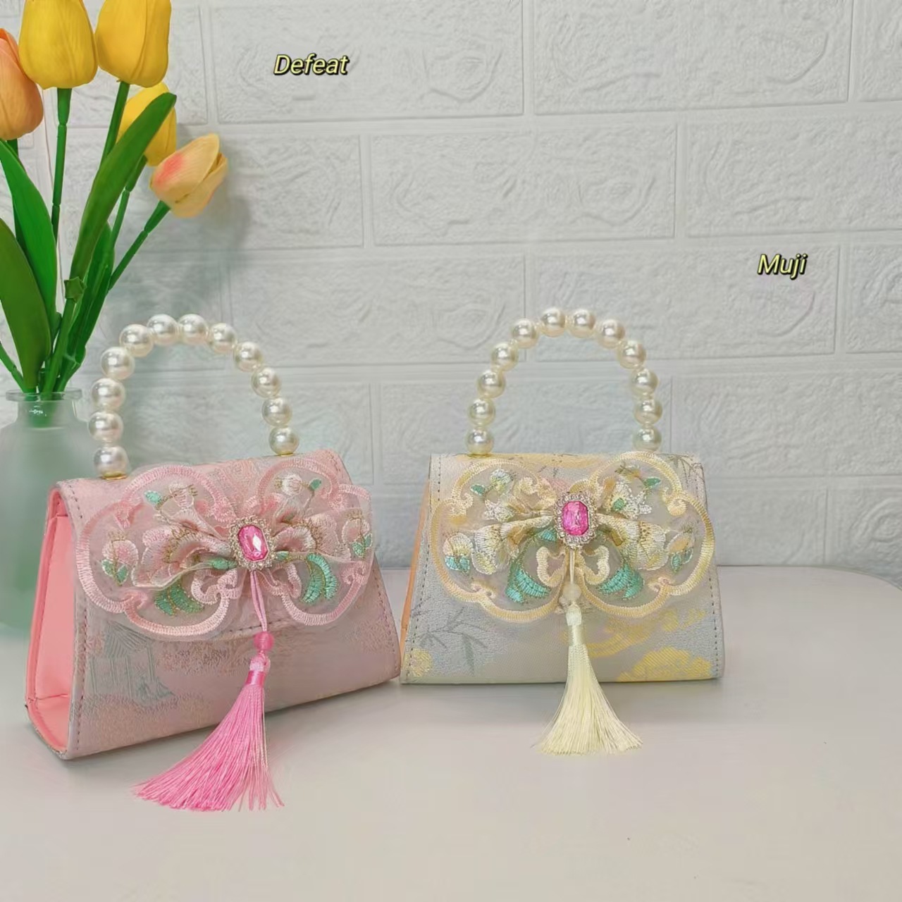 Bolso de perla nuevo estilo chino bolso de niños bolso de cambio para niñas bolso de cadena bolso de arco bolso pequeño