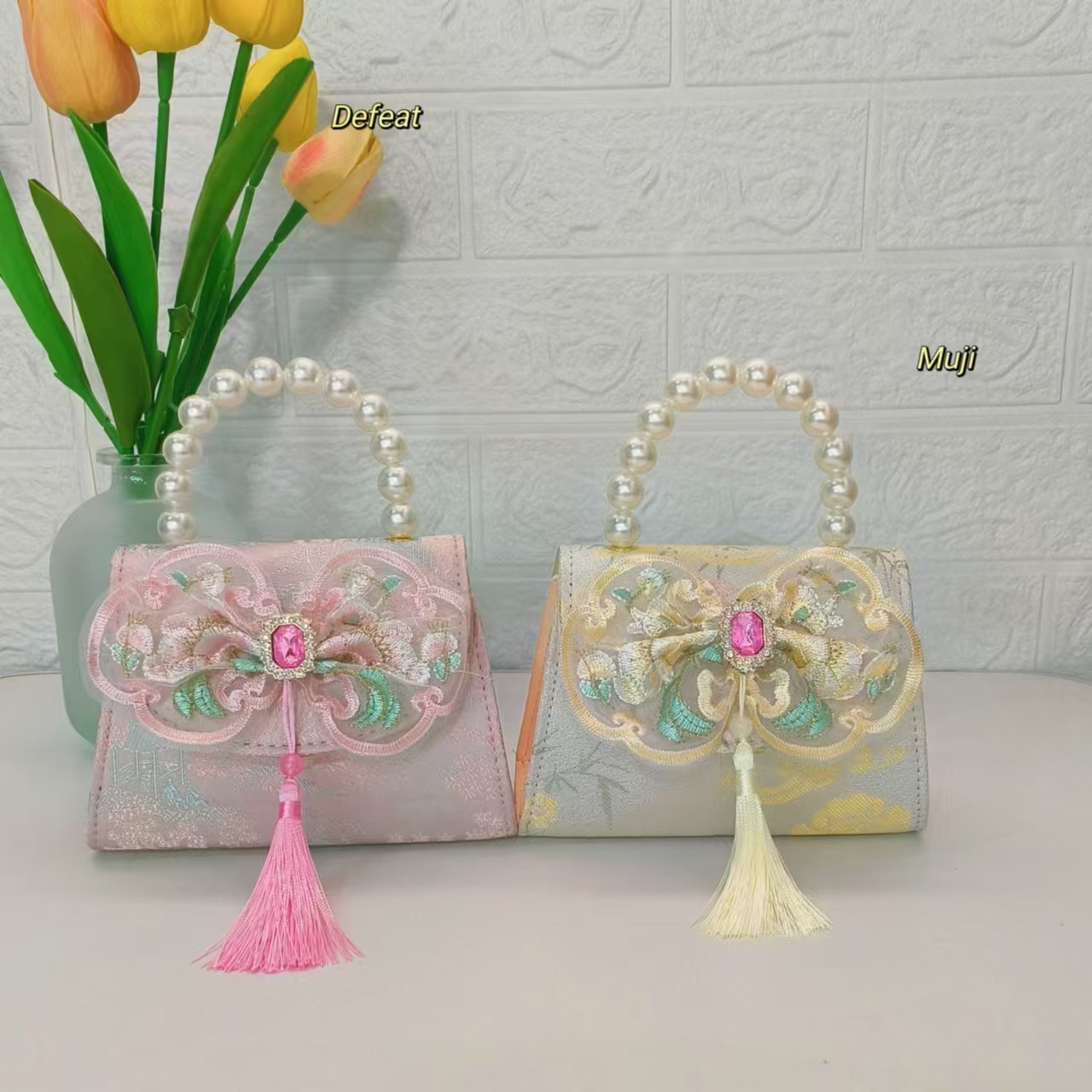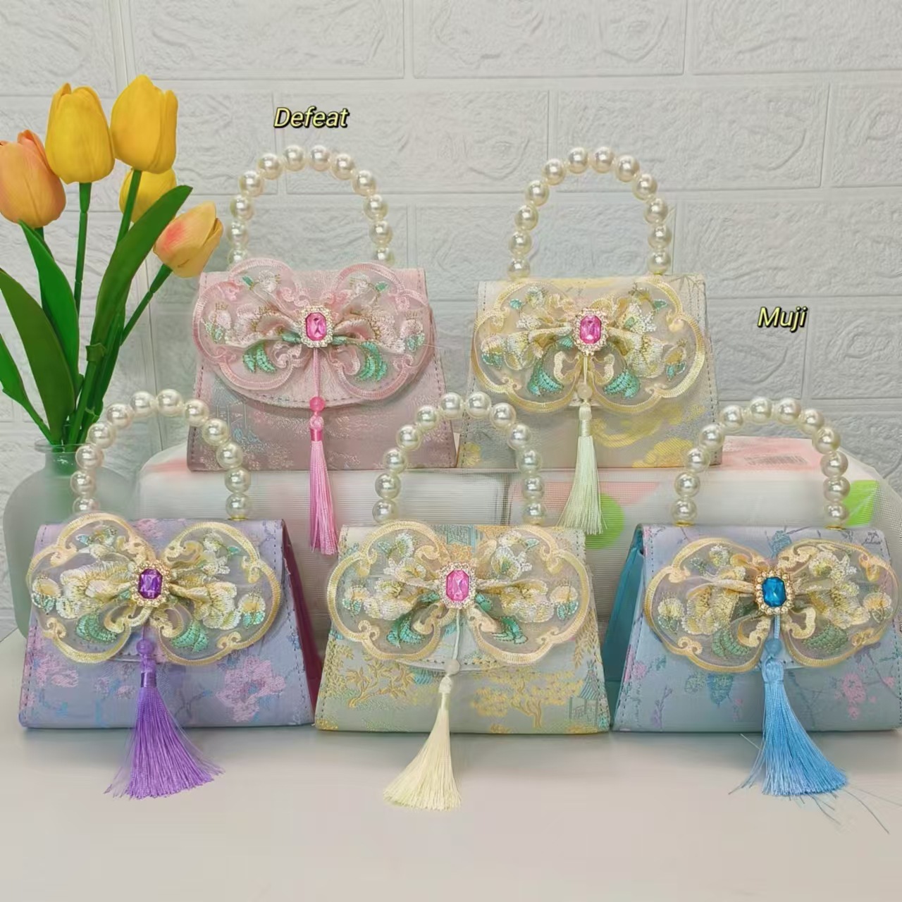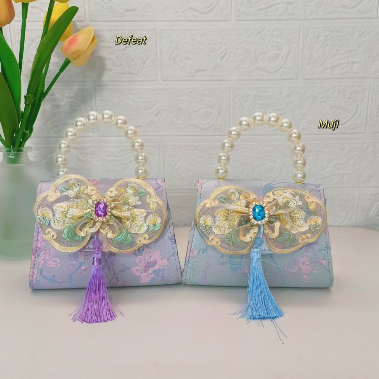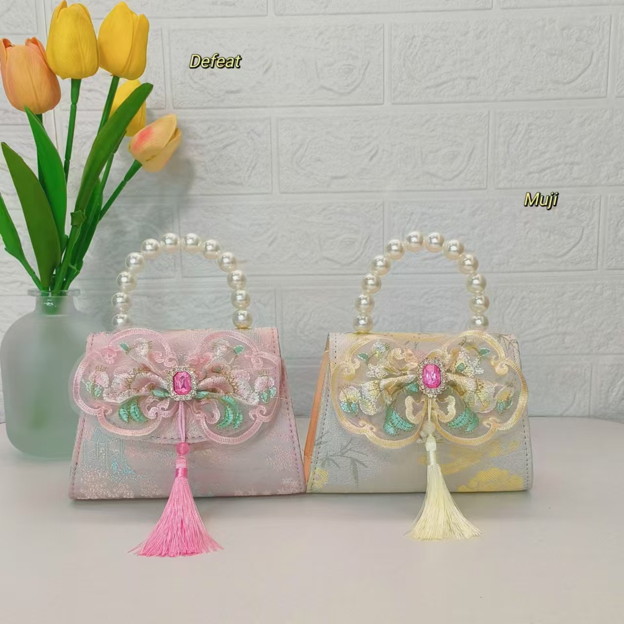 Bolso de perla nuevo estilo chino bolso de niños bolso de cambio para niñas bolso de cadena bolso de arco bolso pequeño