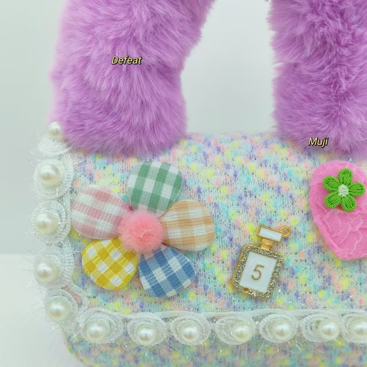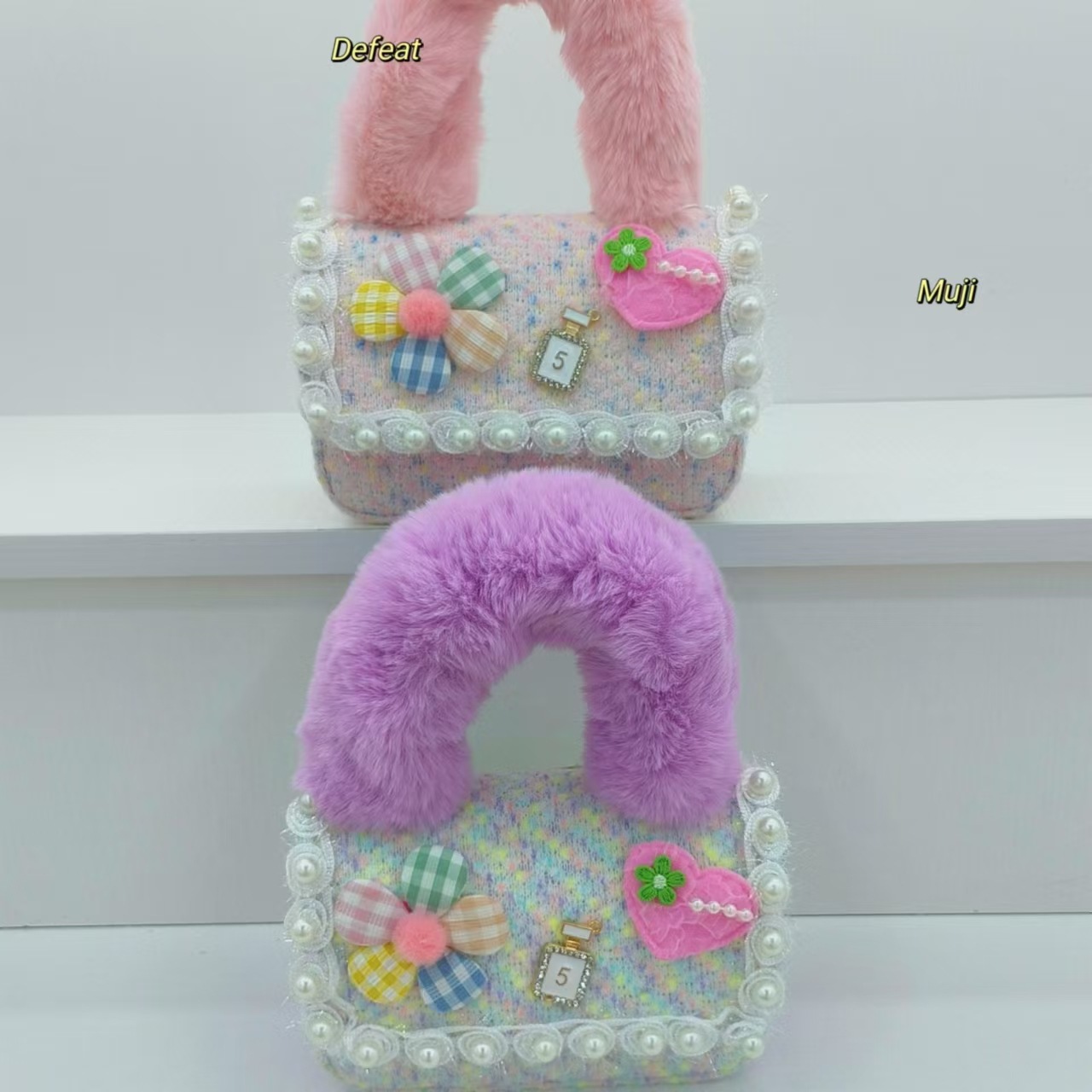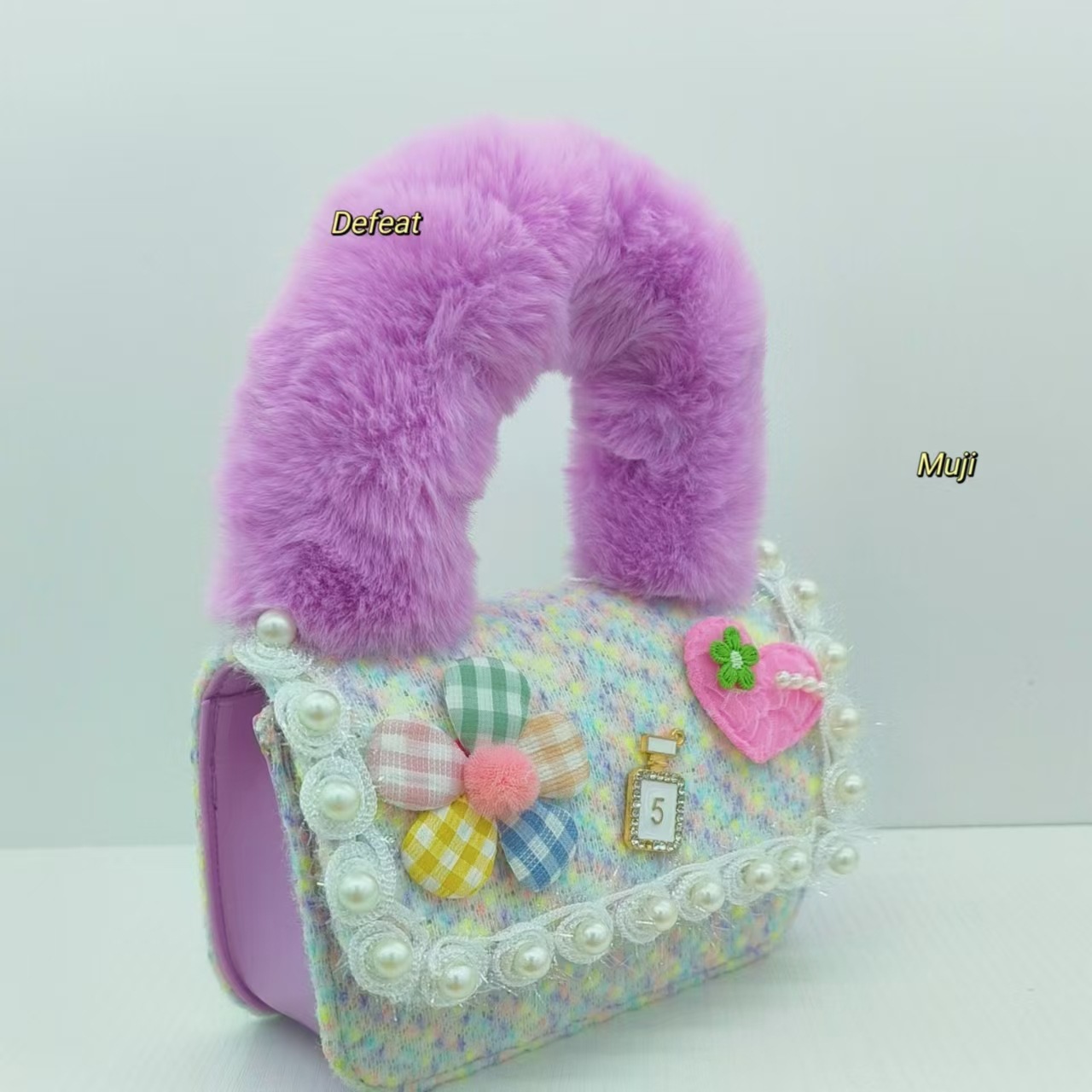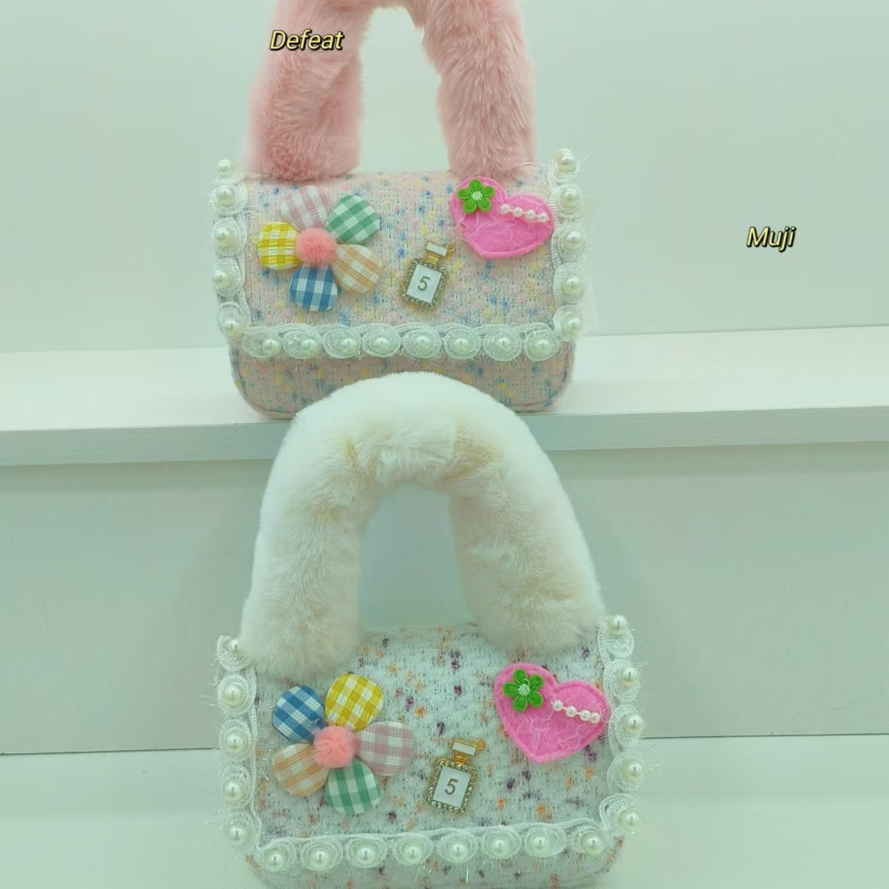Bolso de peluche, bolso de hombro de niña, bolso cuadrado, bolso de accesorios de encaje de niña, bolso de cambio de cadena