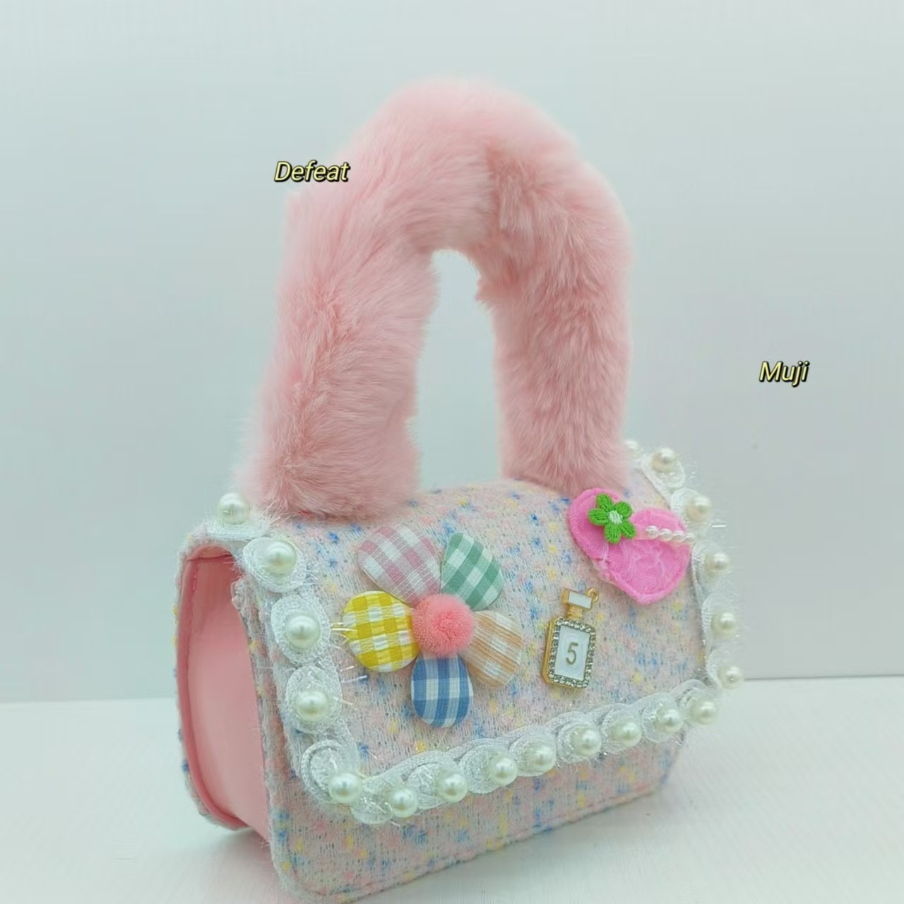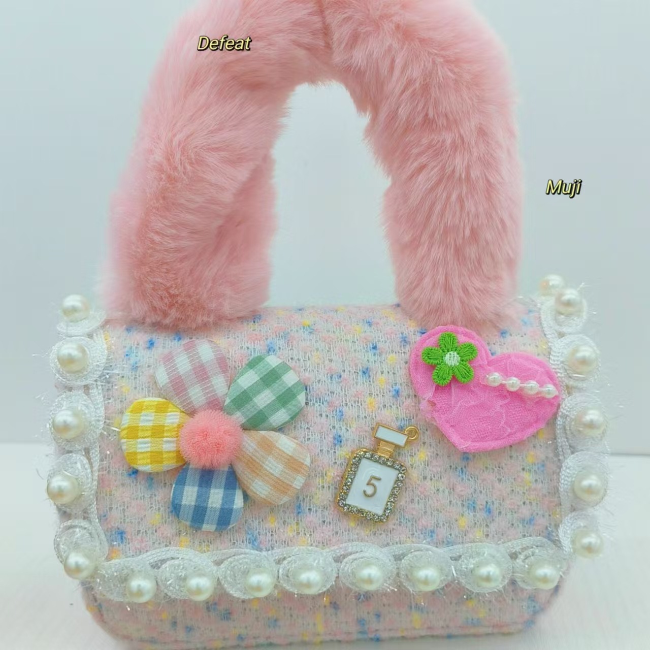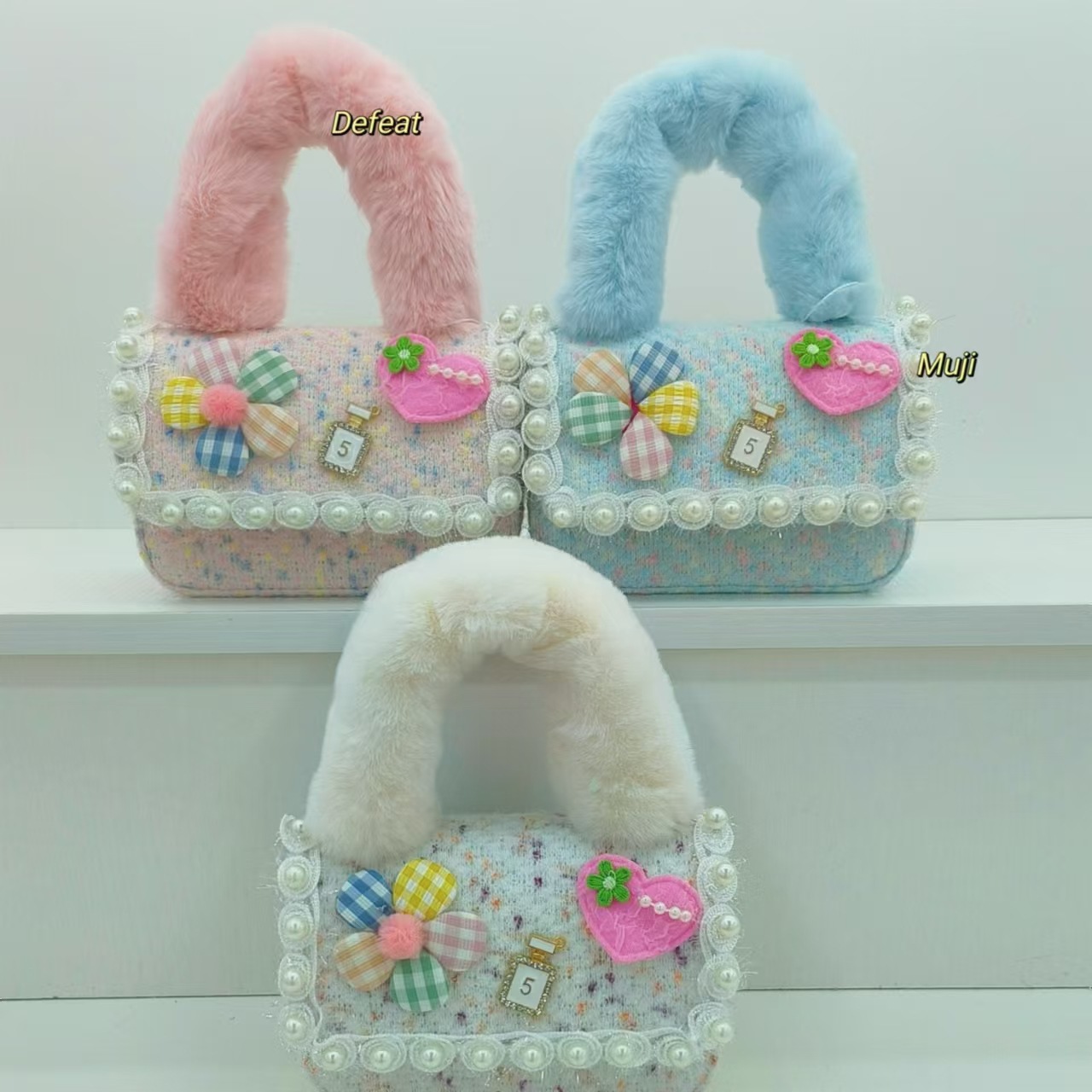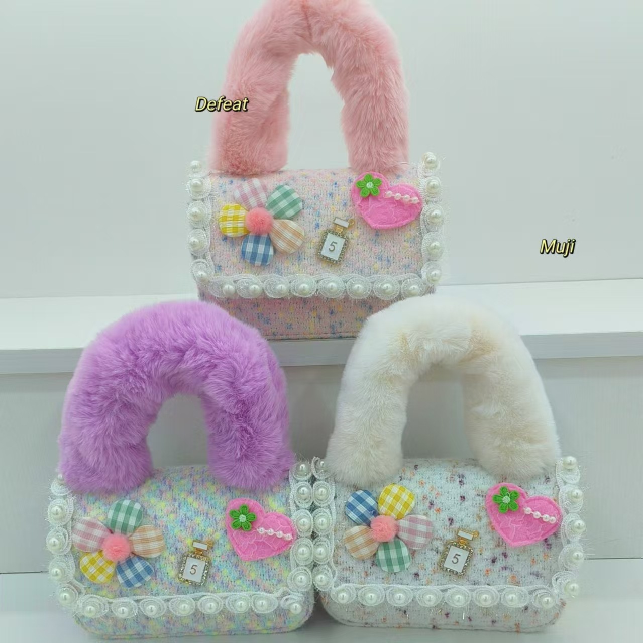 Bolso de peluche, bolso de hombro de niña, bolso cuadrado, bolso de accesorios de encaje de niña, bolso de cambio de cadena