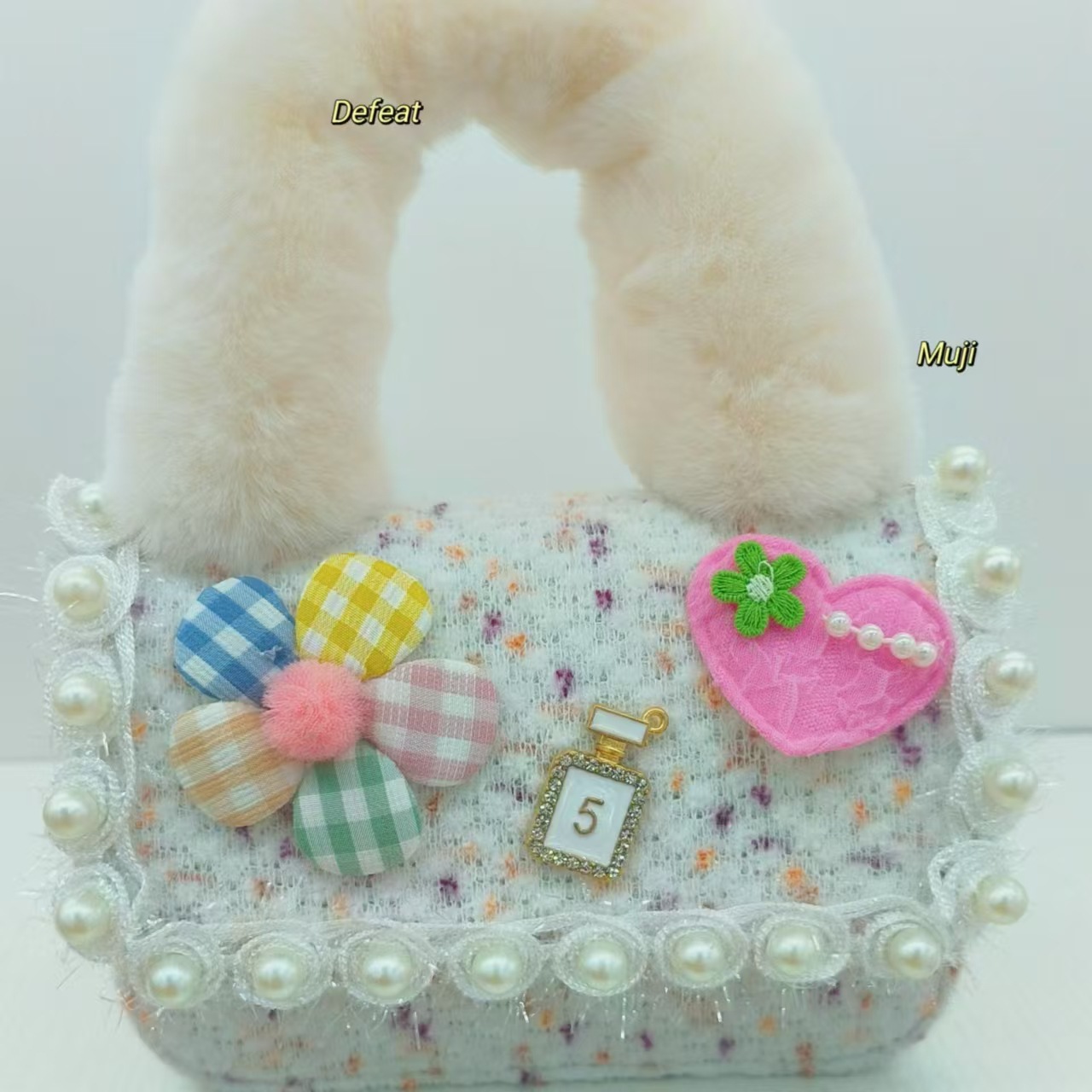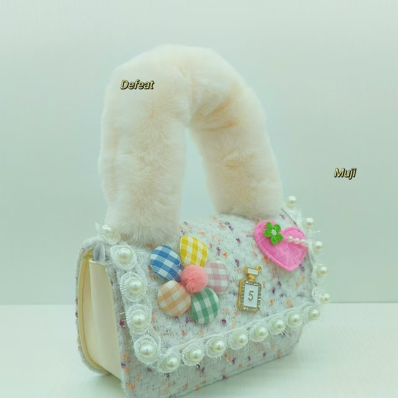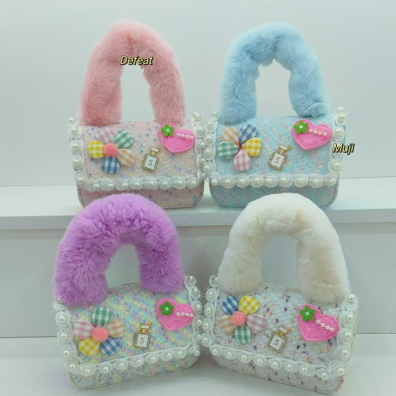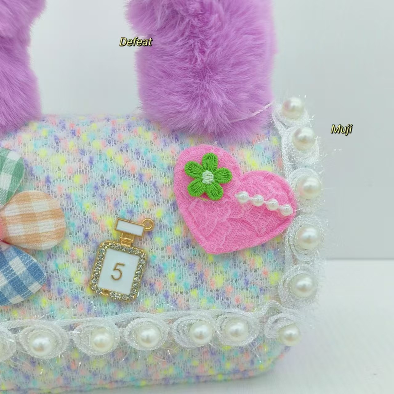 Bolso de peluche, bolso de hombro de niña, bolso cuadrado, bolso de accesorios de encaje de niña, bolso de cambio de cadena