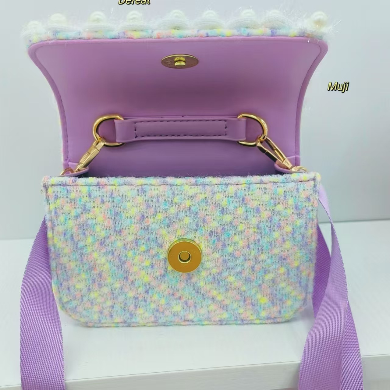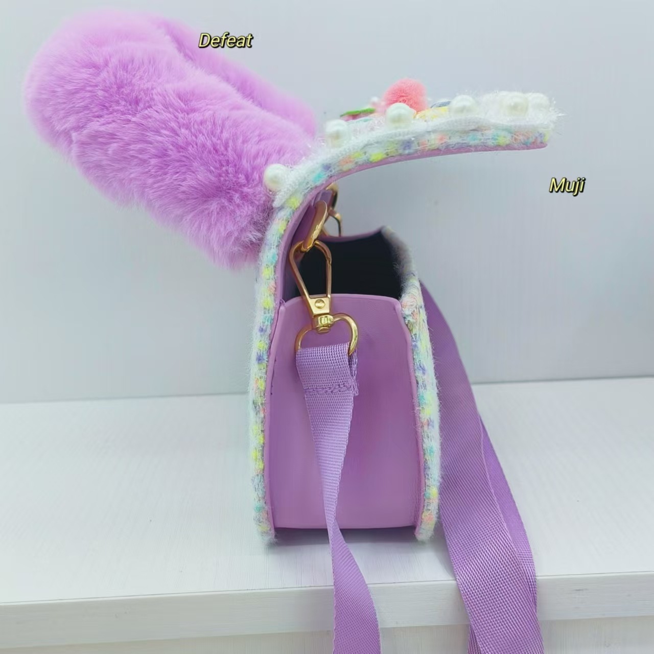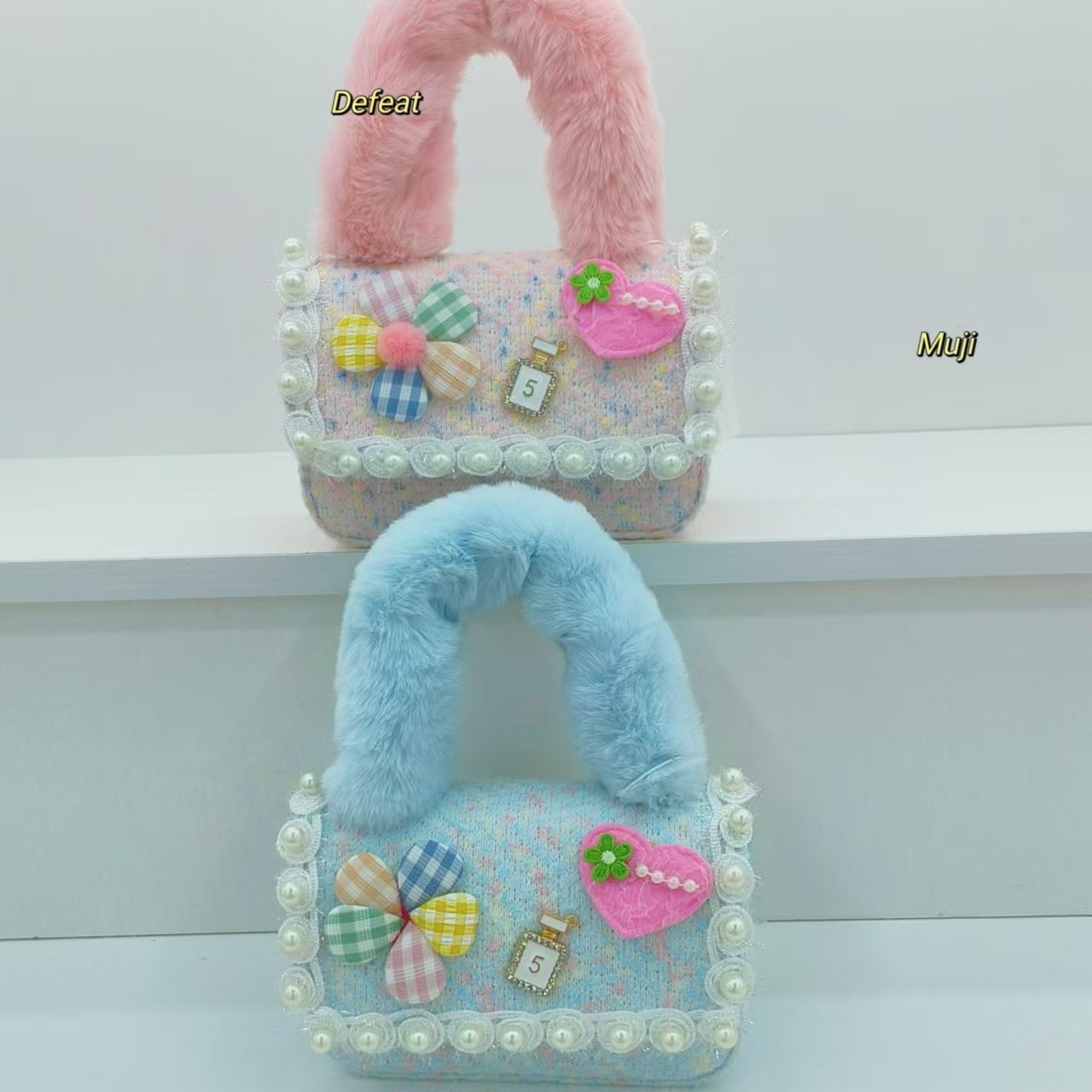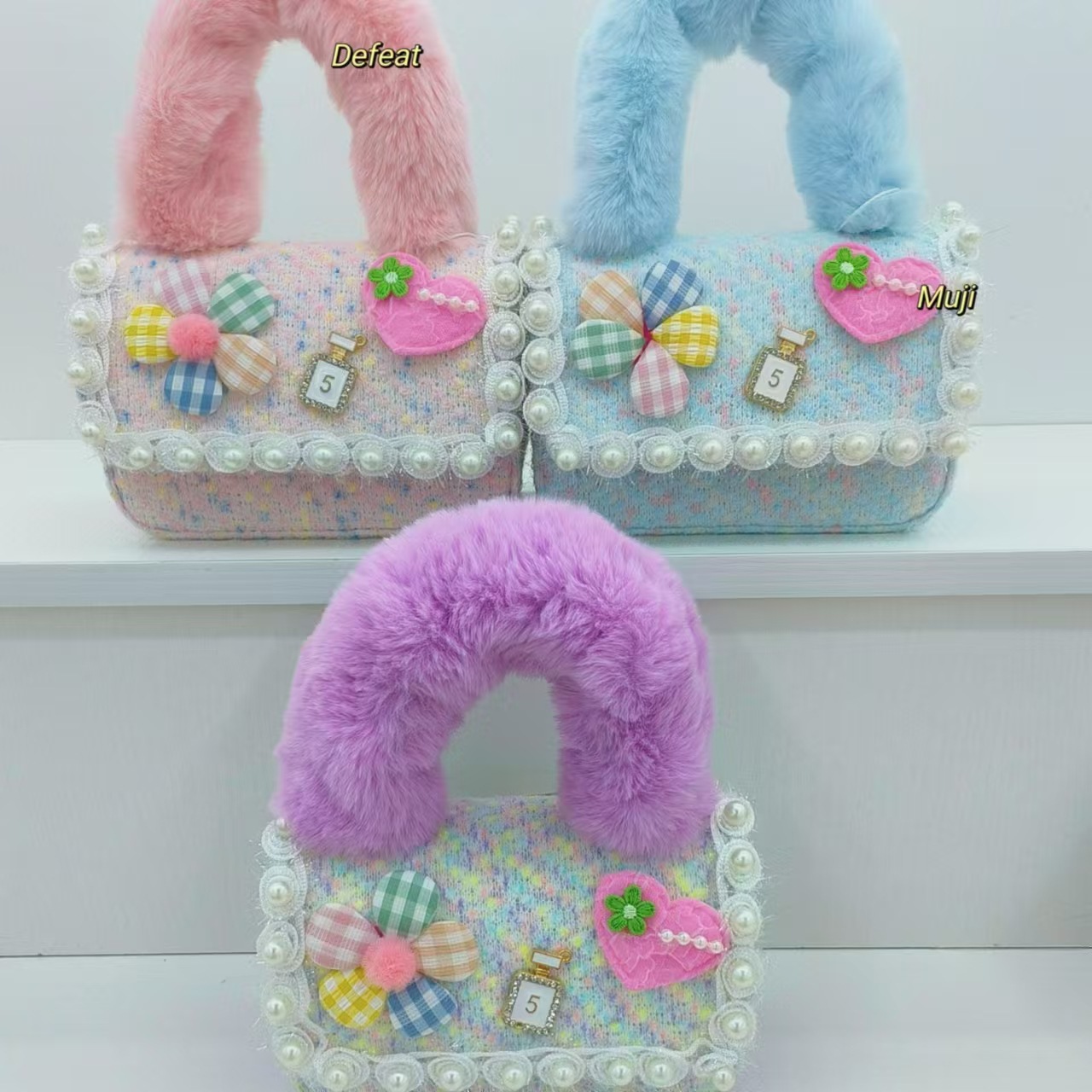 Bolso de peluche, bolso de hombro de niña, bolso cuadrado, bolso de accesorios de encaje de niña, bolso de cambio de cadena