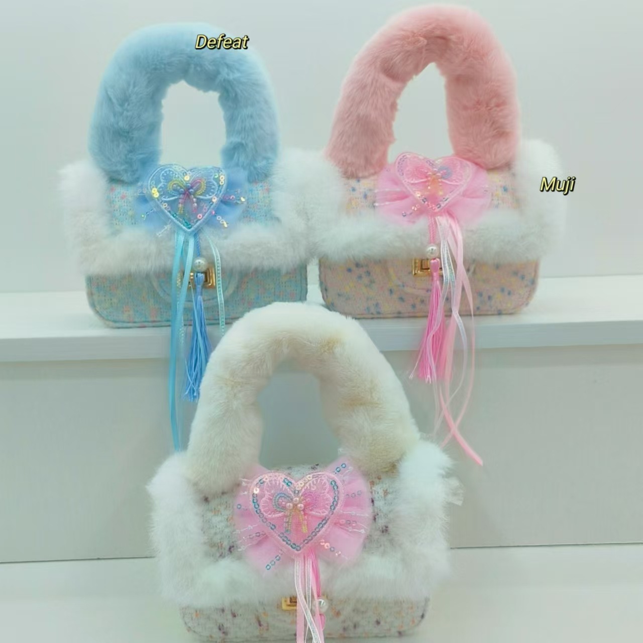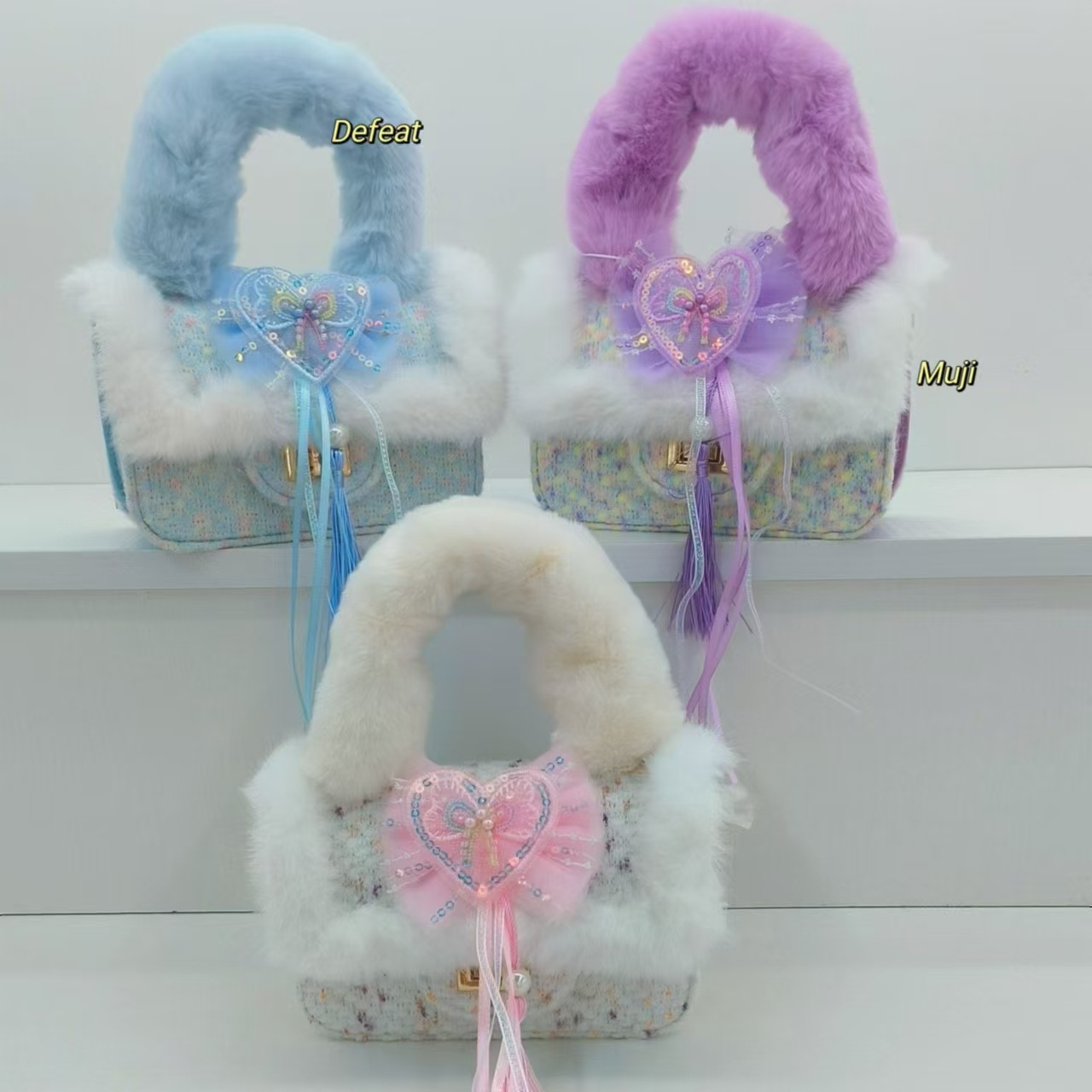 Bolsos de peluche de estilo nacional, bolsos de hombro para niños de moda extranjera, bolsos pequeños, bolsos de accesorios, bolsos de cambio