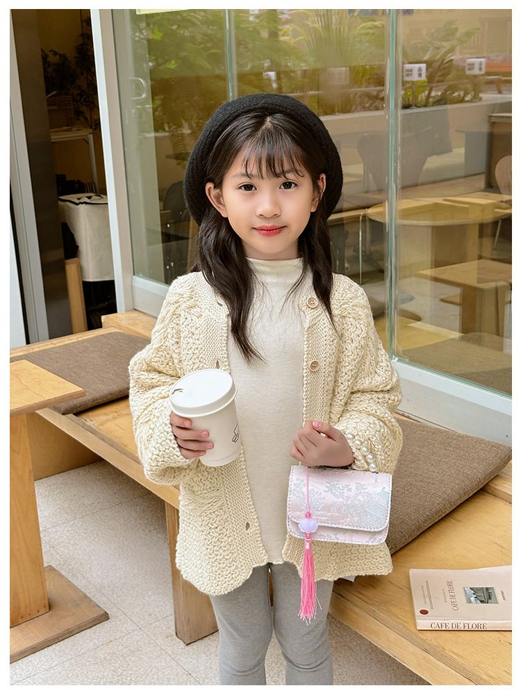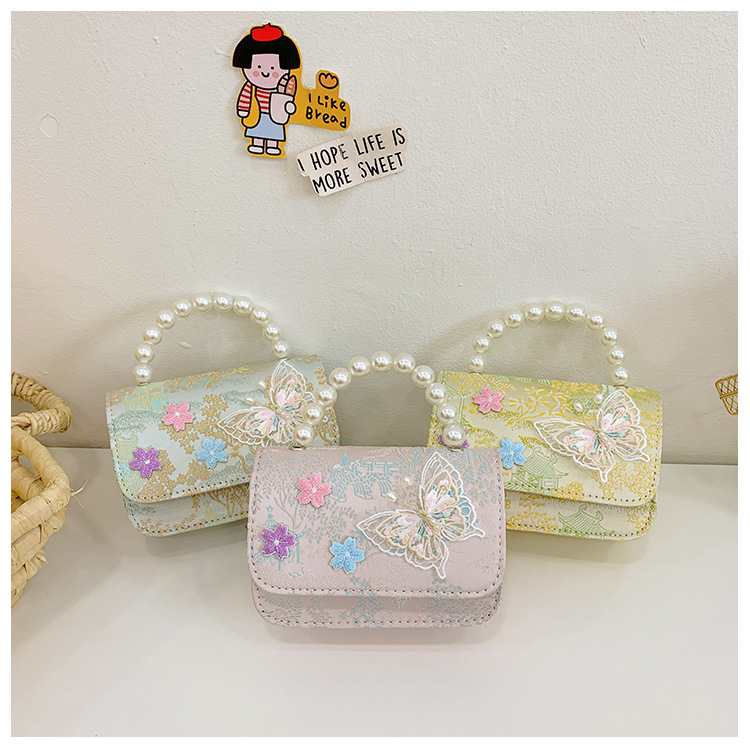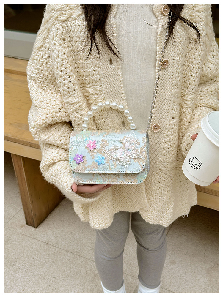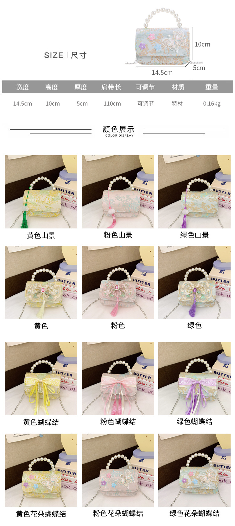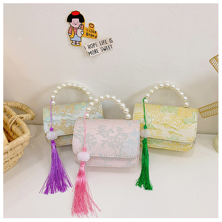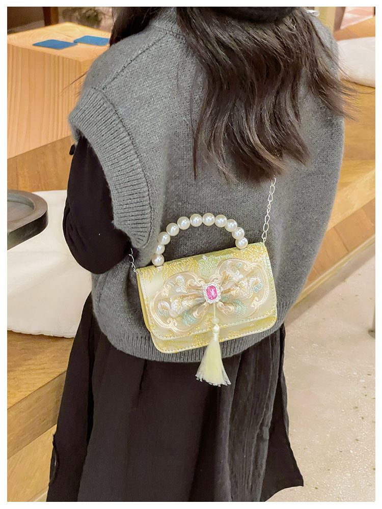 Bolsas de niños nuevas bolsas de mano de perlas de estilo nacional, bolsas de cadena de arco de bordilla princesa, bolsas de hombro de moda nacional de niñas lotes