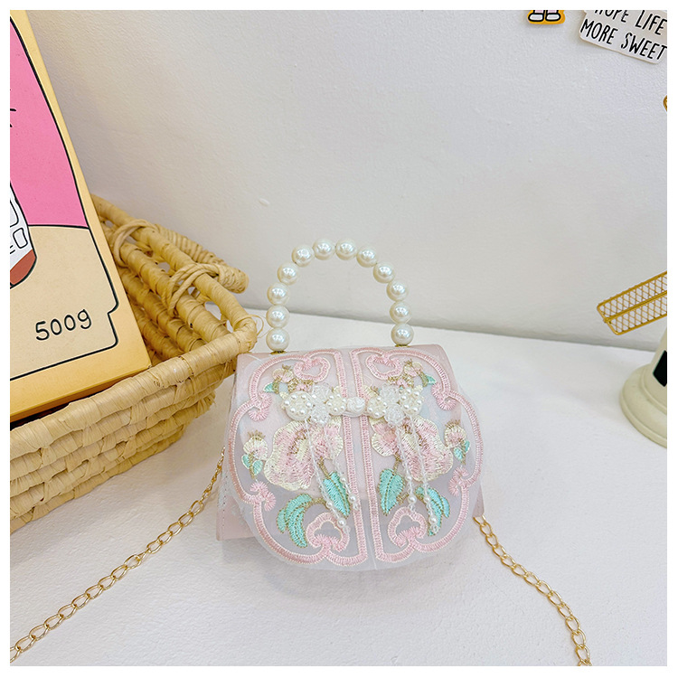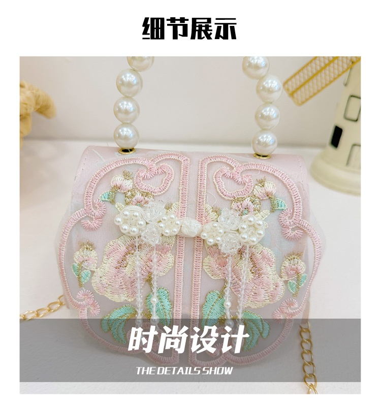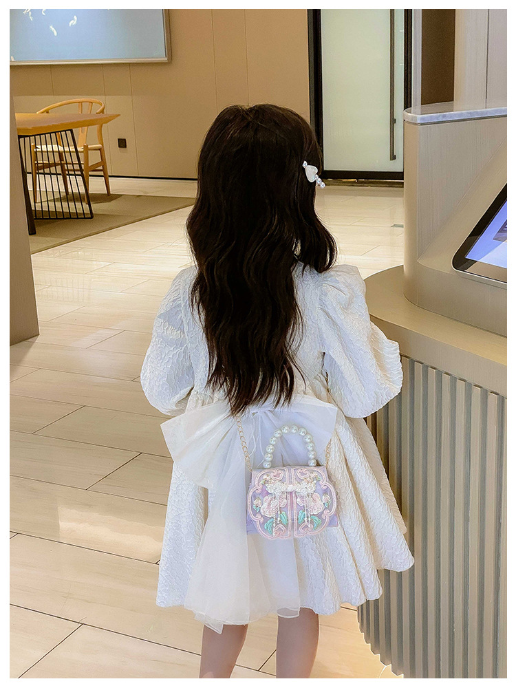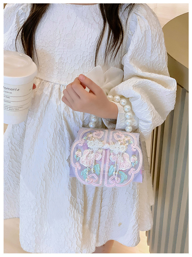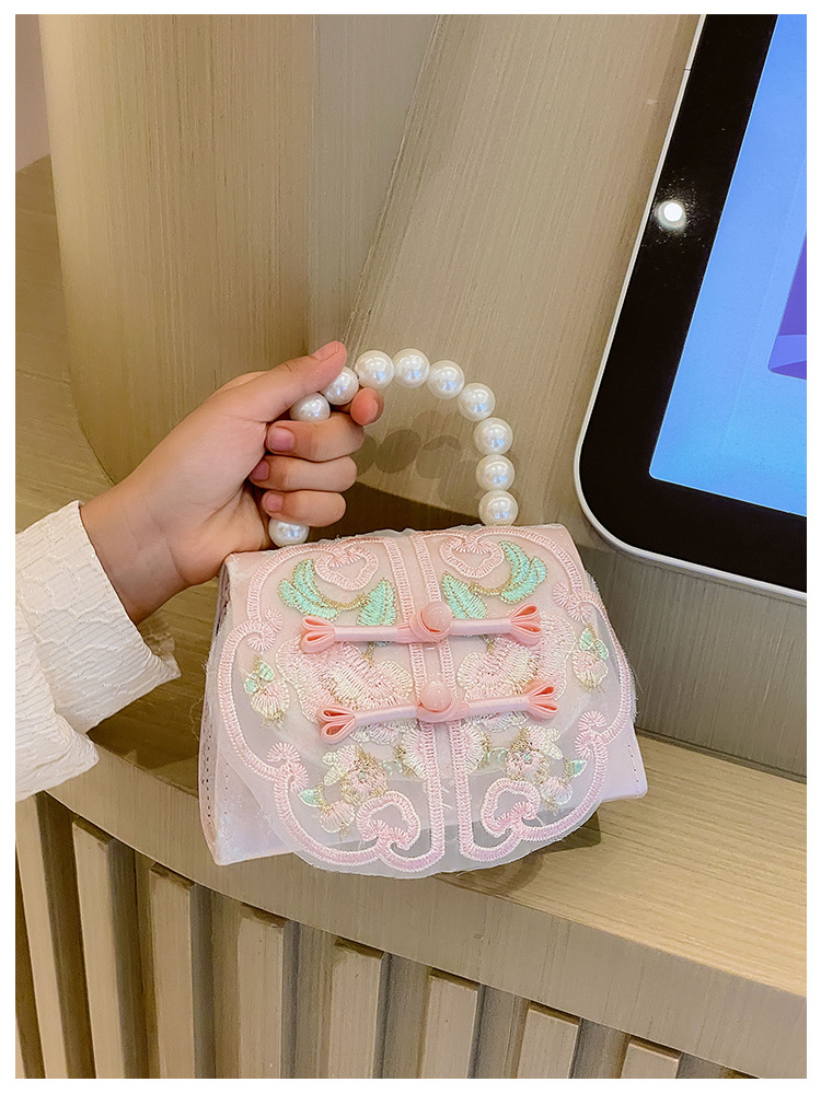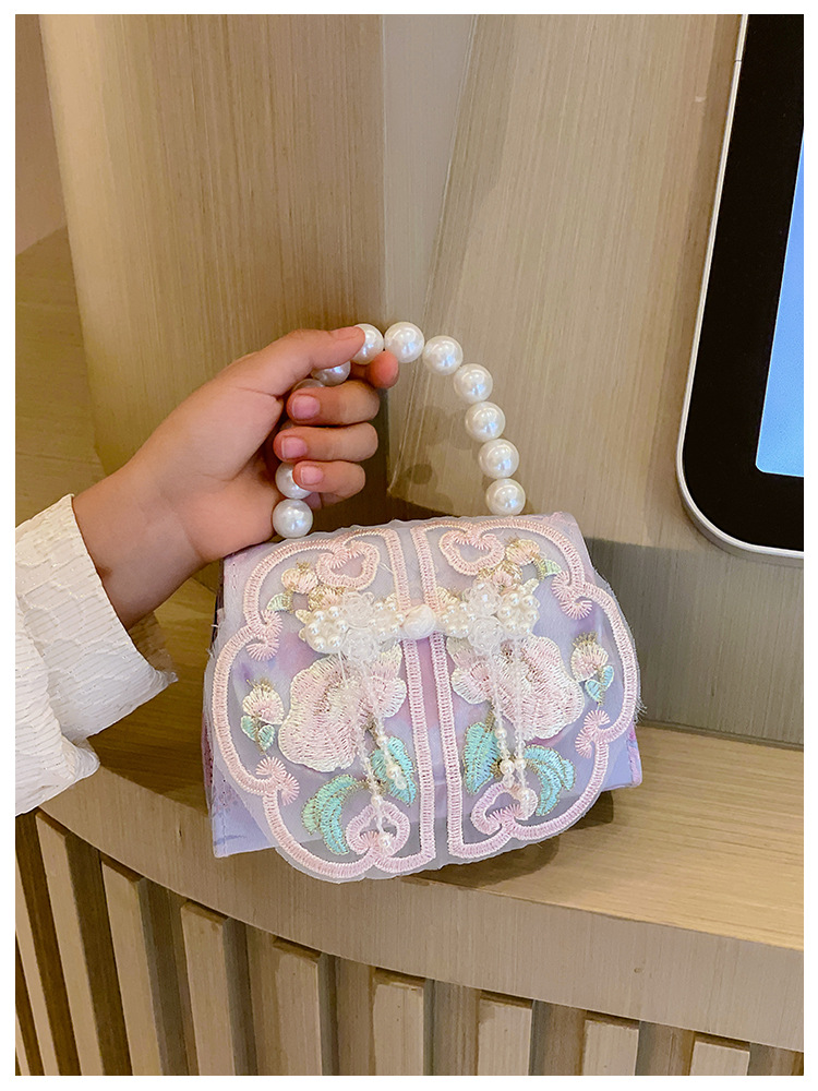 Chica linda princesa bolso de perlas encaje bordado portátil todo fósforo pequeño bolso cuadrado estilo étnico bolso de mensajero para niños