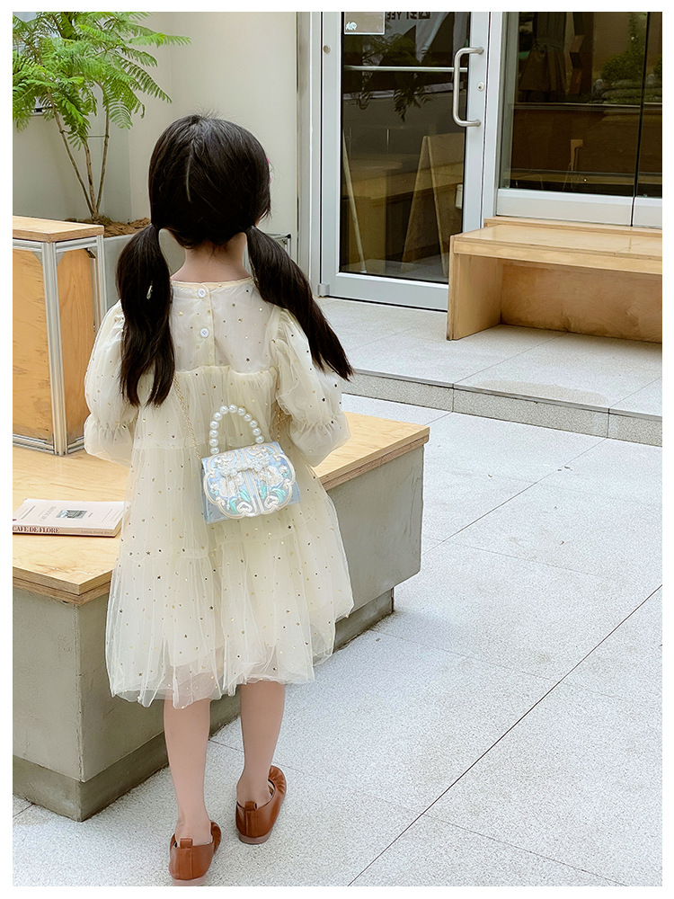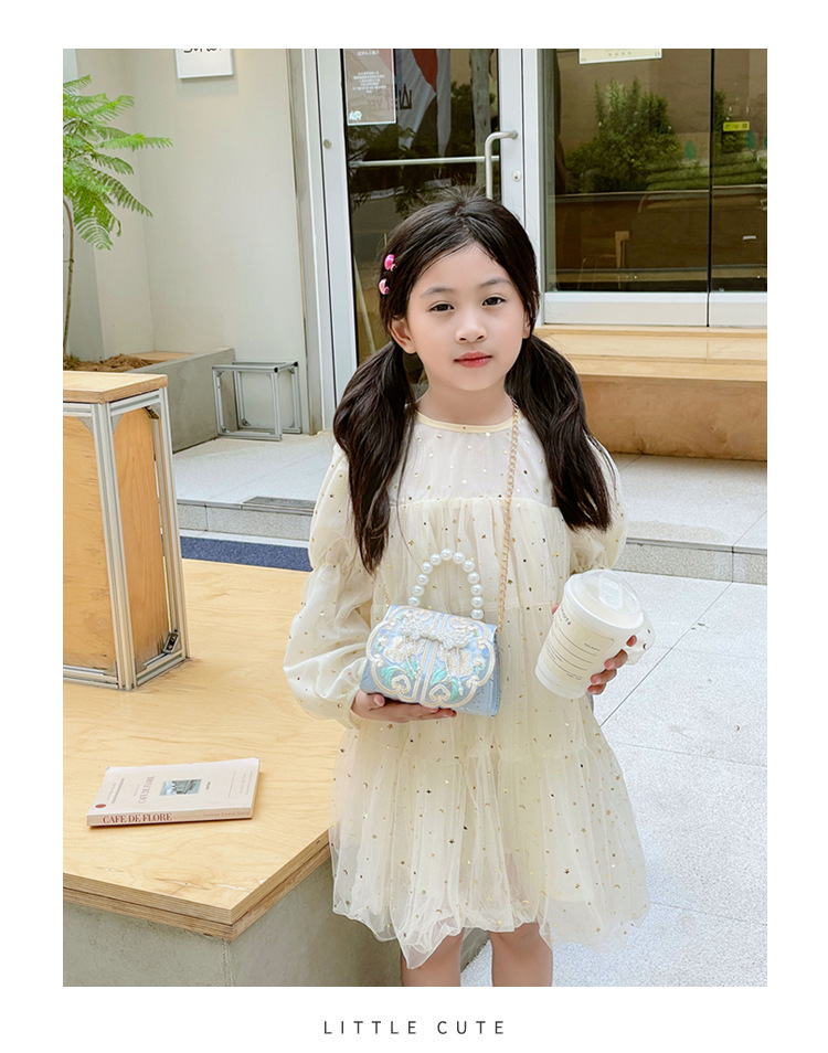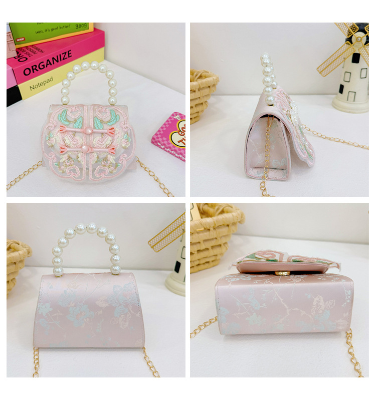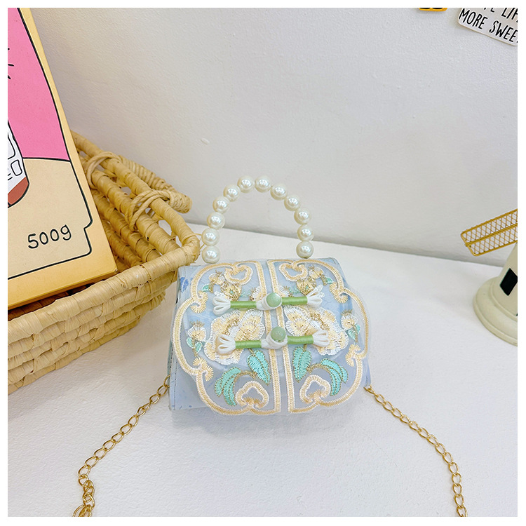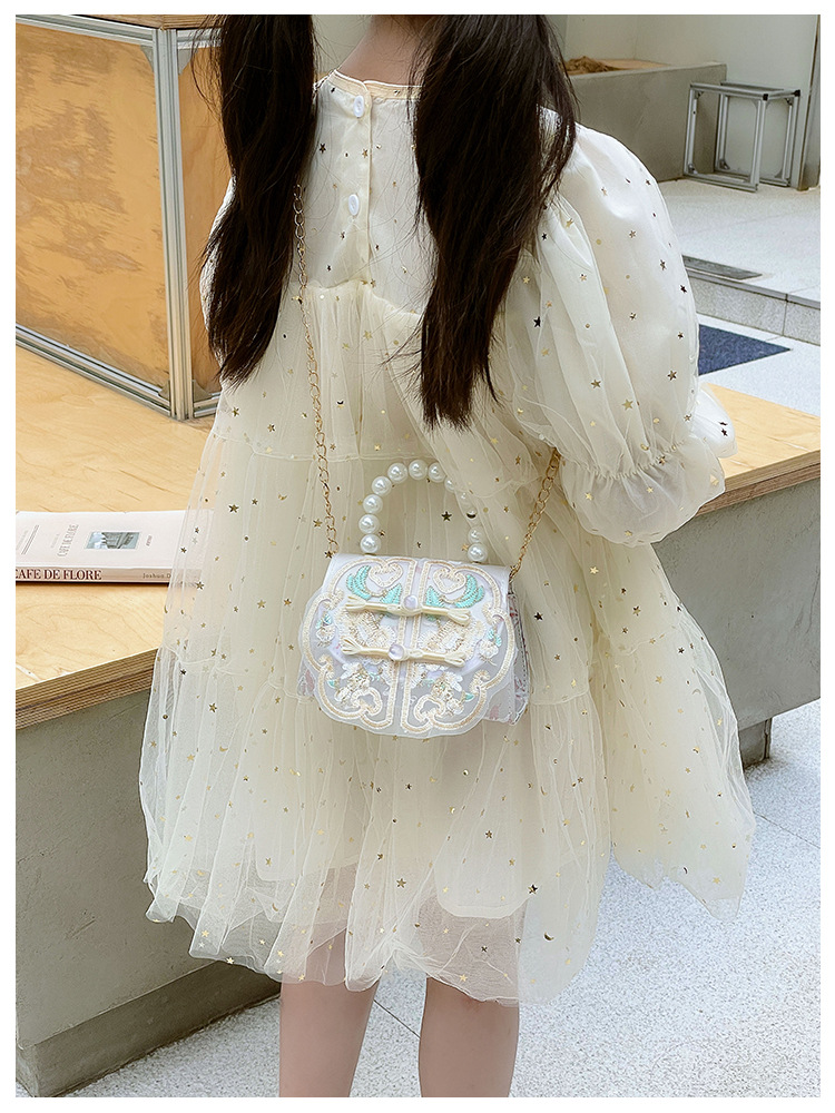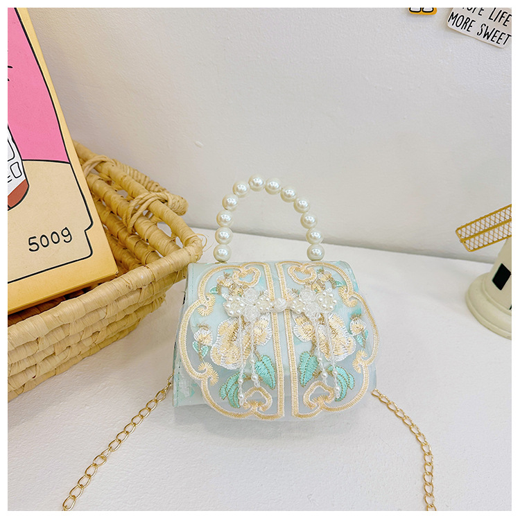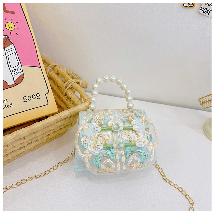 Chica linda princesa bolso de perlas encaje bordado portátil todo fósforo pequeño bolso cuadrado estilo étnico bolso de mensajero para niños
