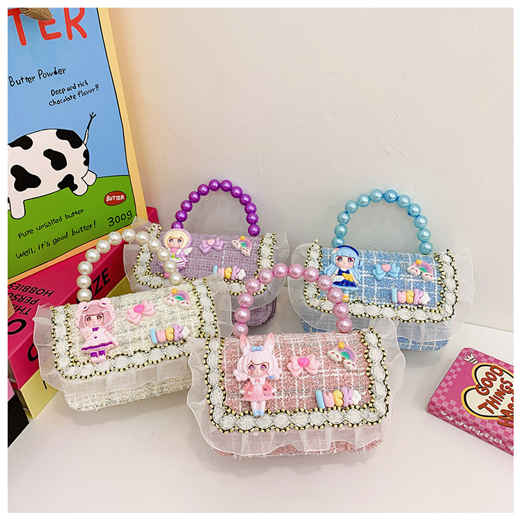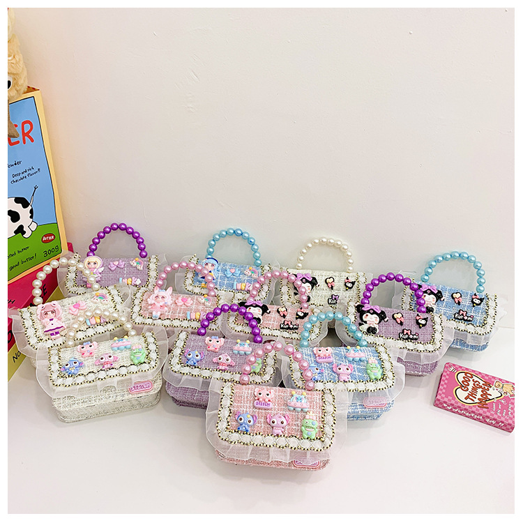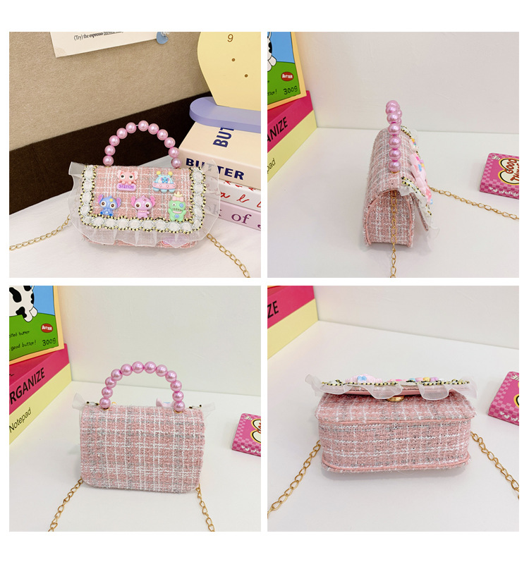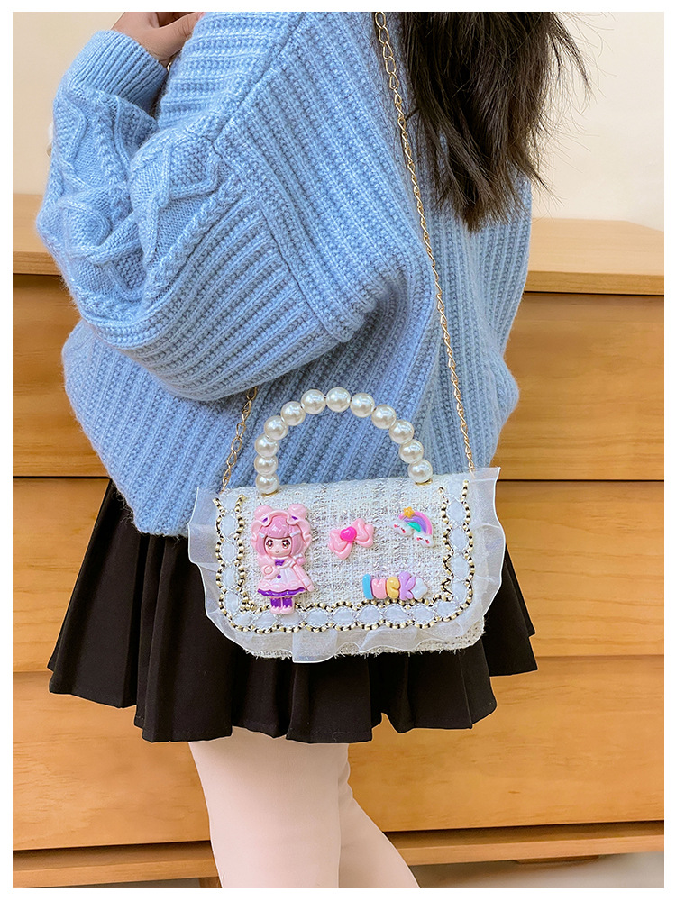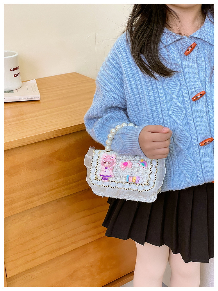 Niñas lindas bolsas de mano de perlas de princesa cadenas extranjeras bolsas de cinturón para niños bolsas de hombro de cambio de dibujos animados para niñas