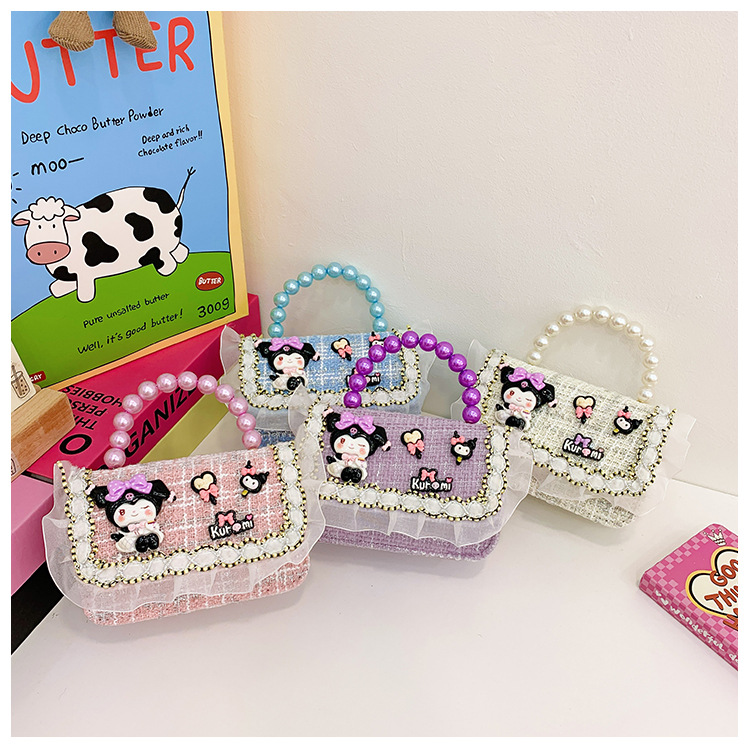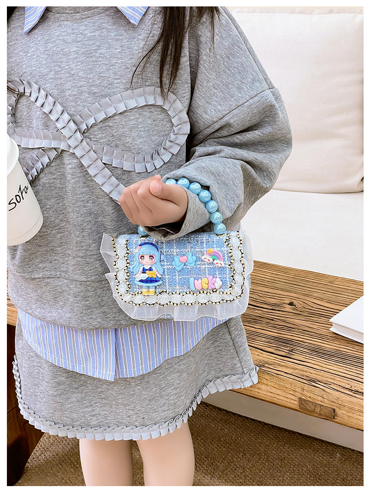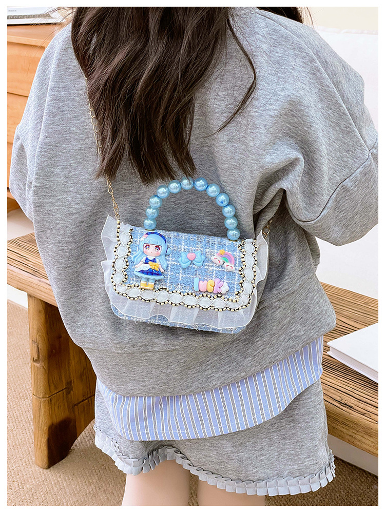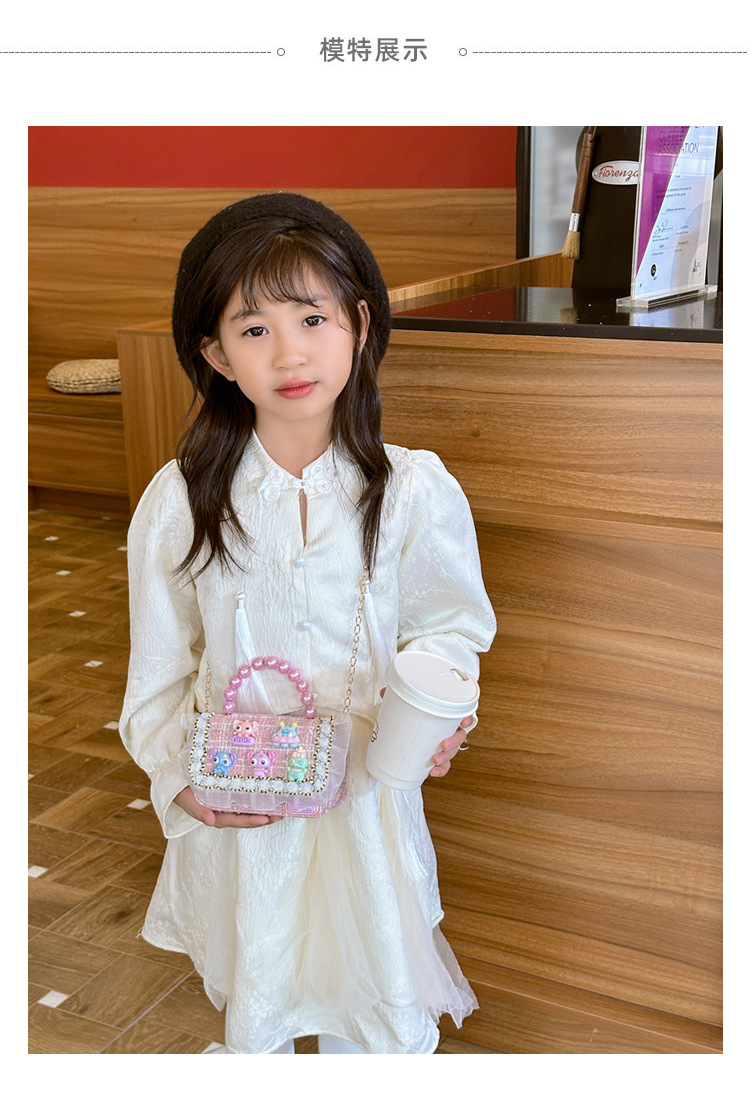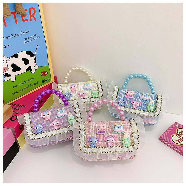 Niñas lindas bolsas de mano de perlas de princesa cadenas extranjeras bolsas de cinturón para niños bolsas de hombro de cambio de dibujos animados para niñas