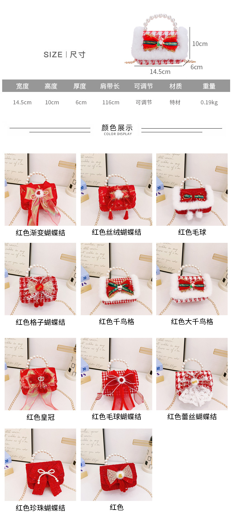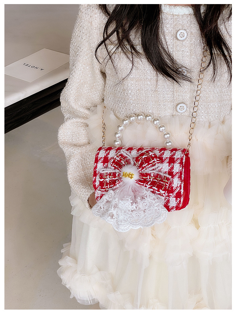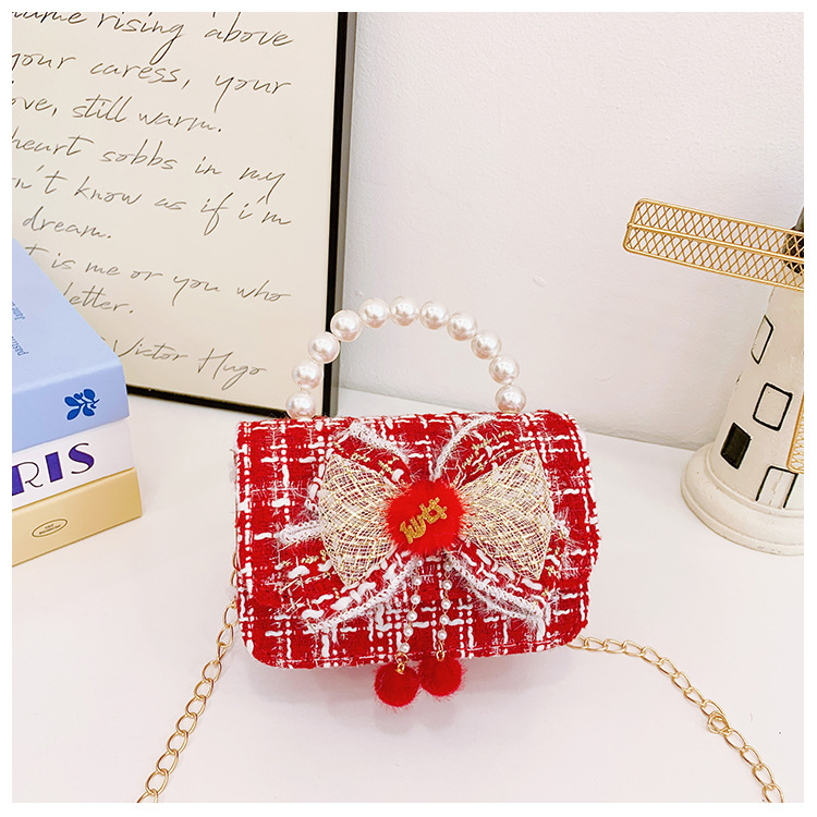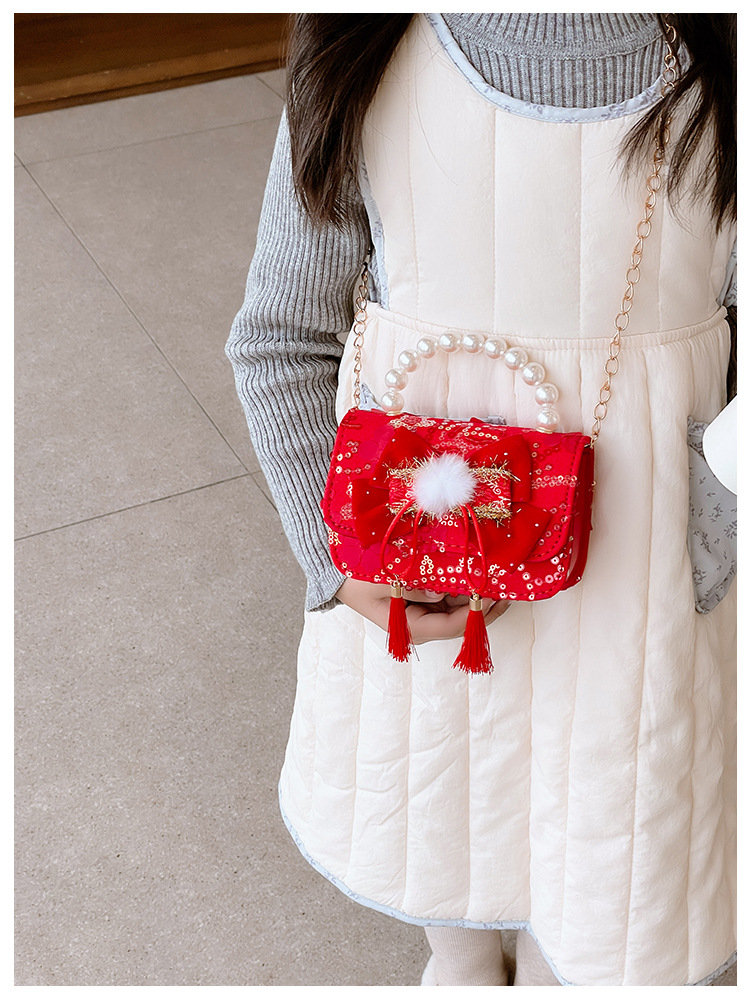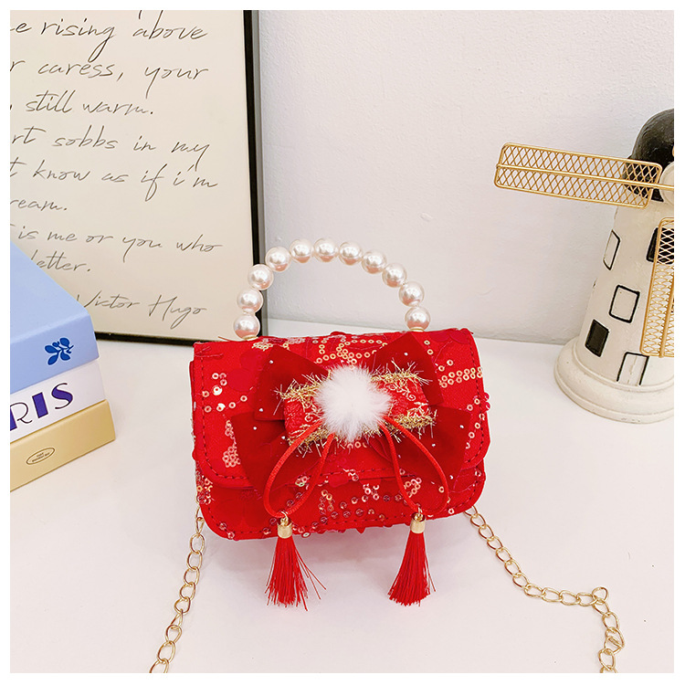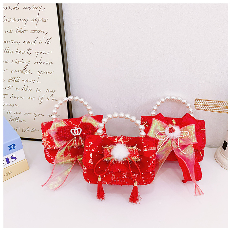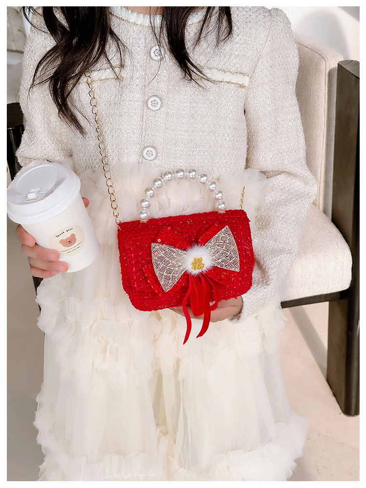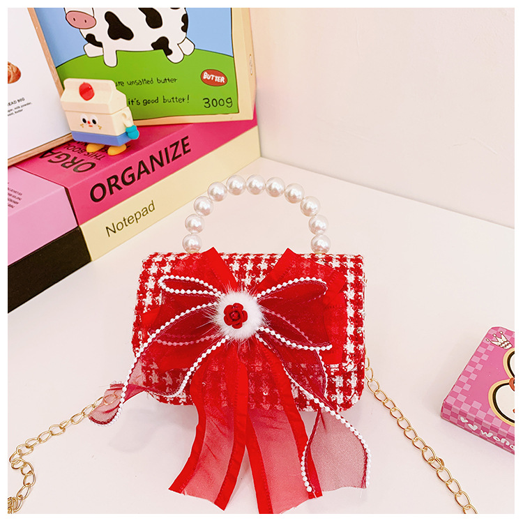 Nuevo arco flotante bolso de niños, bolso de mano de princesa red, bolso de cambio de perlas de moda fragante