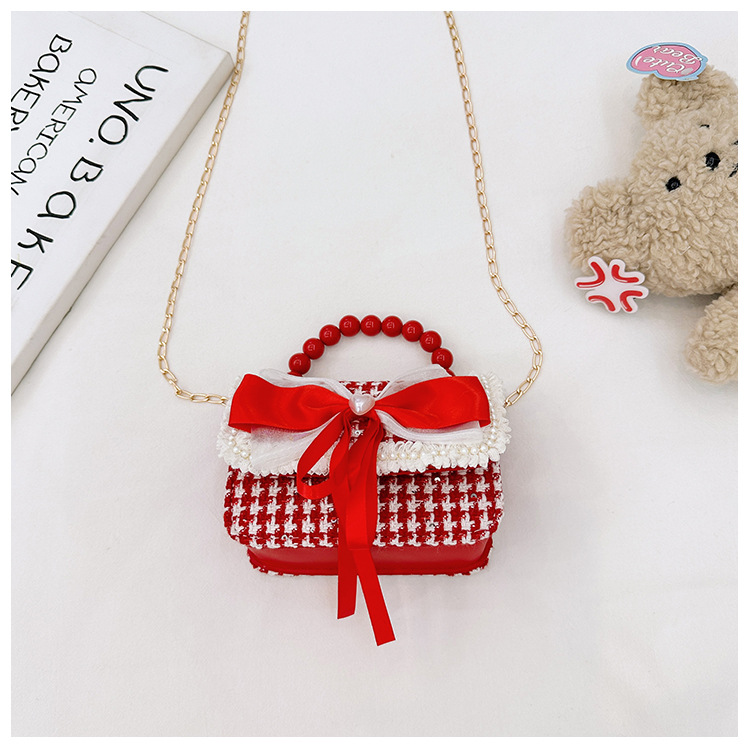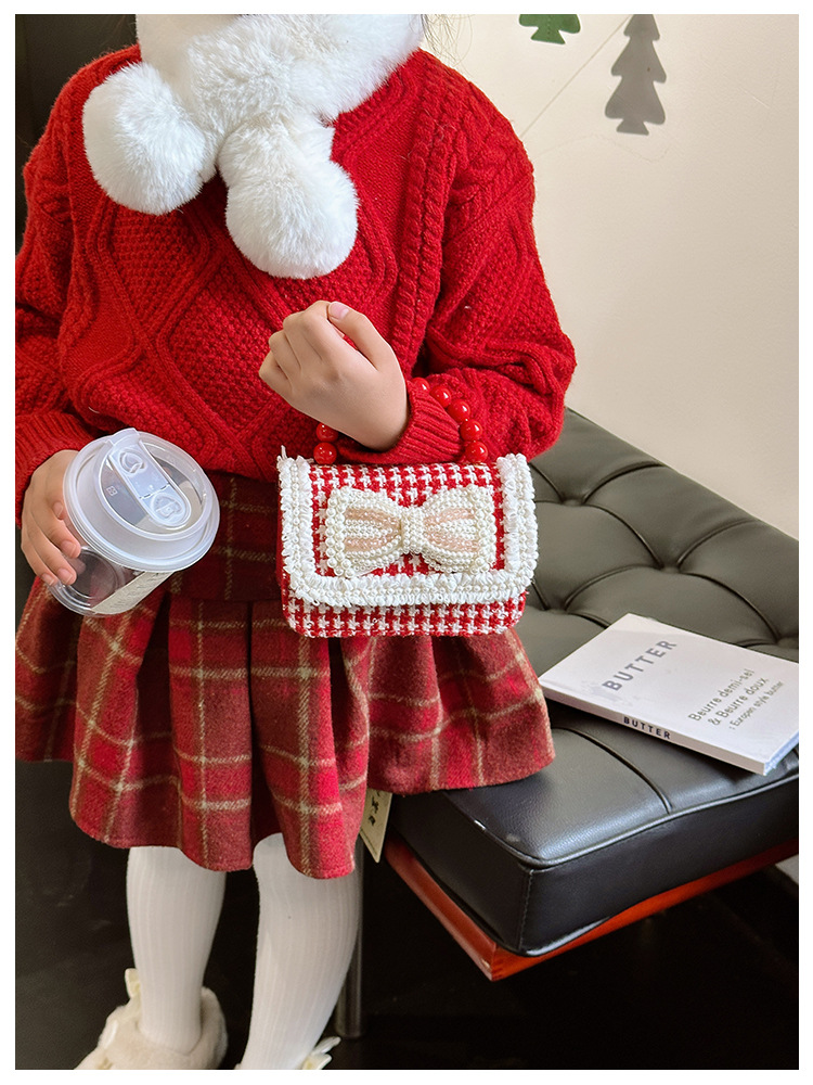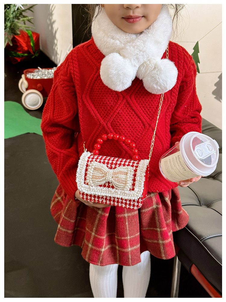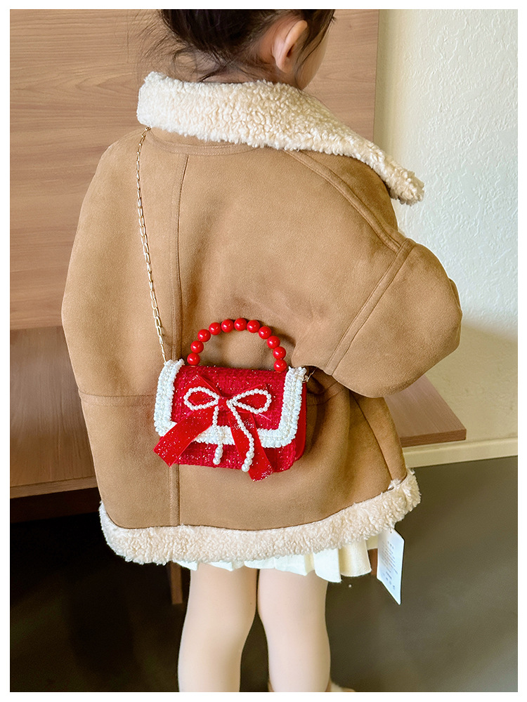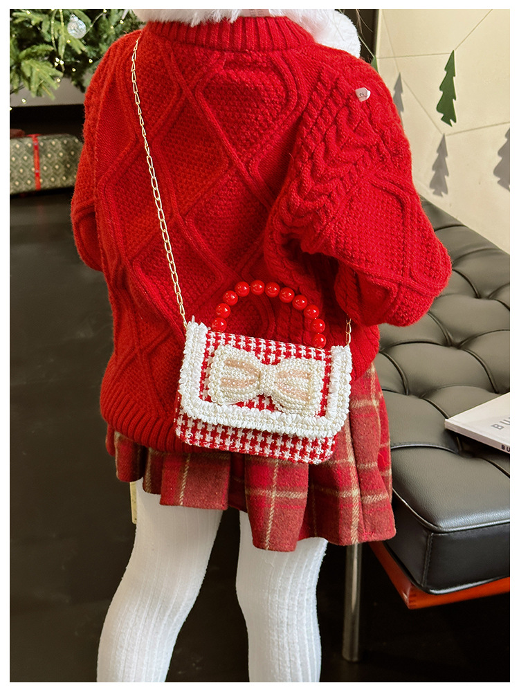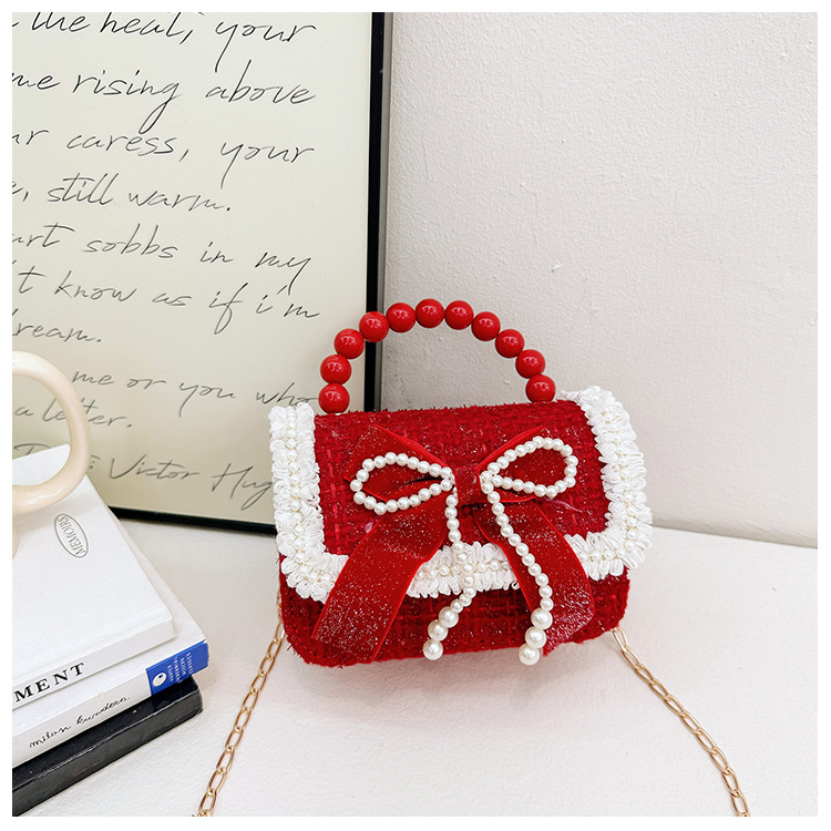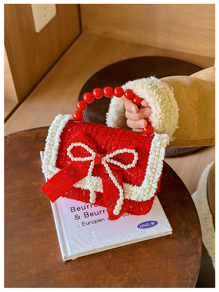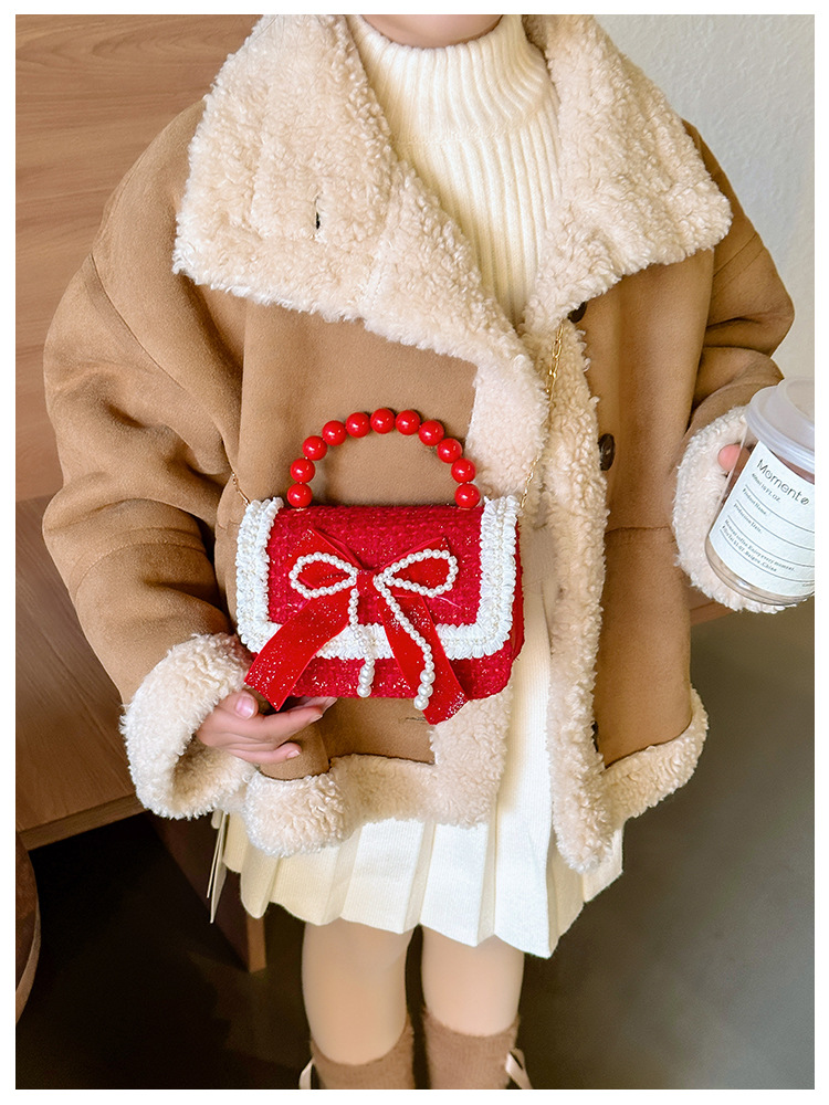 Año Nuevo gran bolso cuadrado rojo para niños bolso de perla bebé lindos bolso de cadena de arco bolso de cambio de niñas