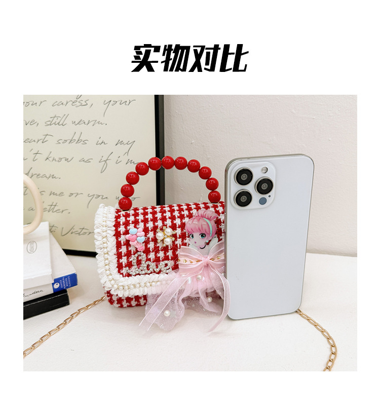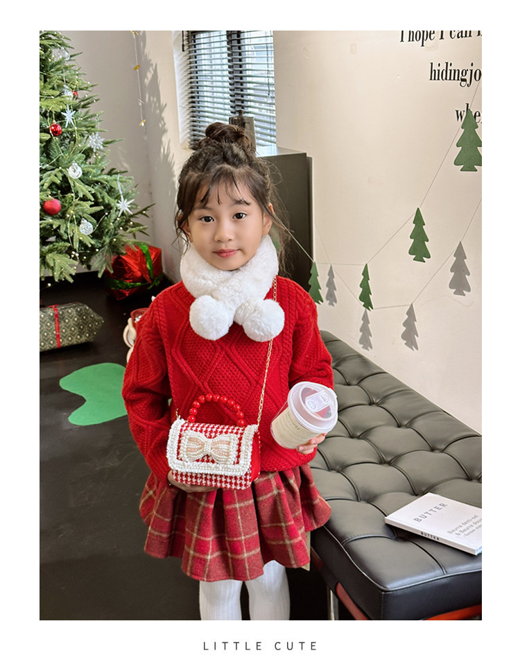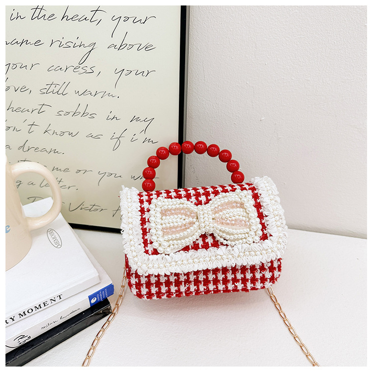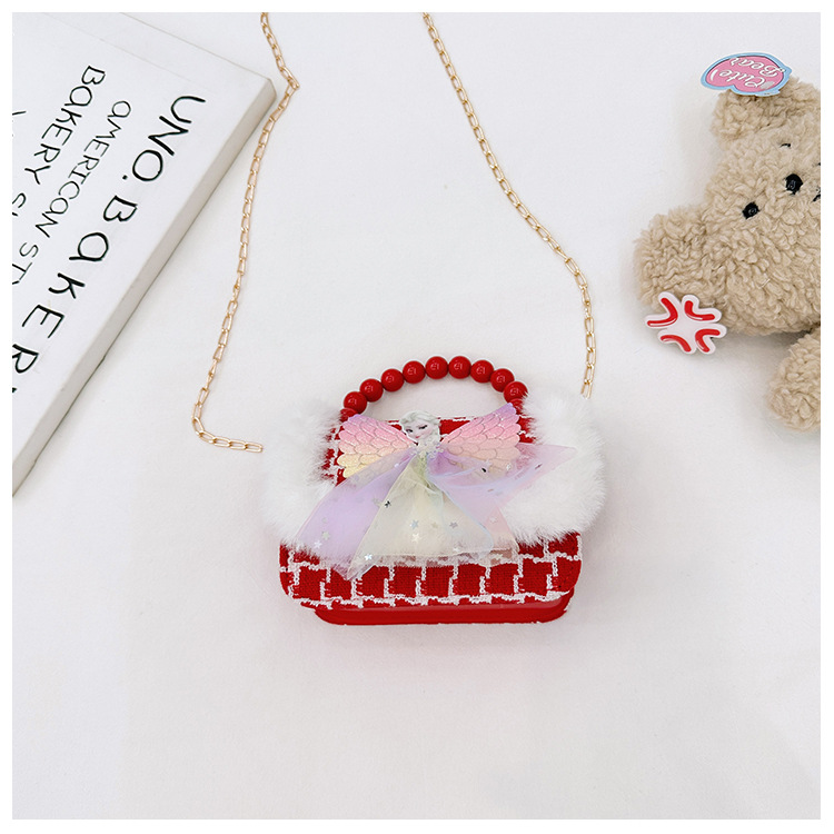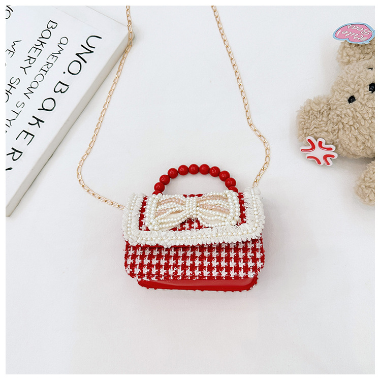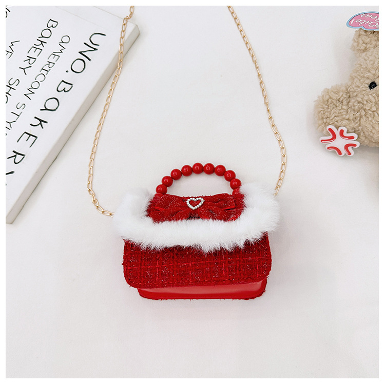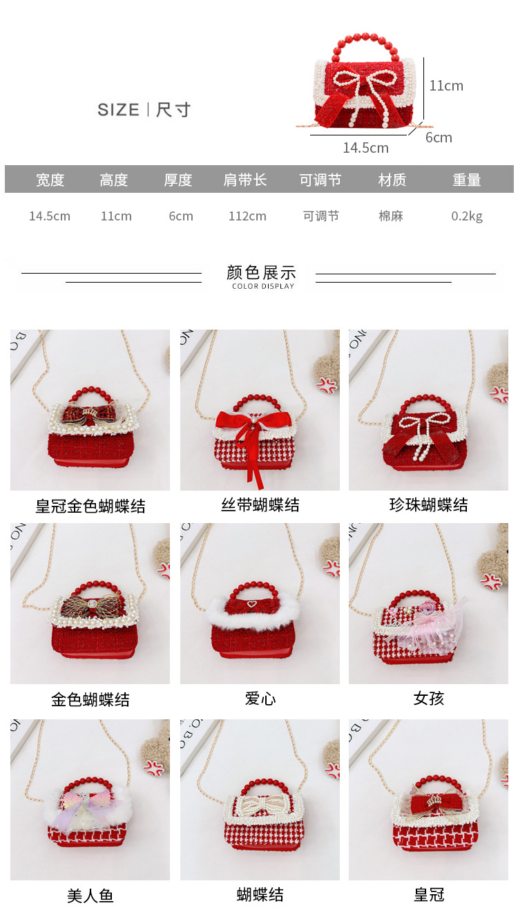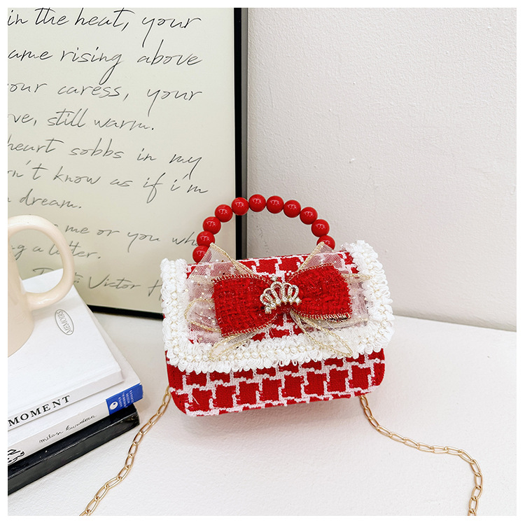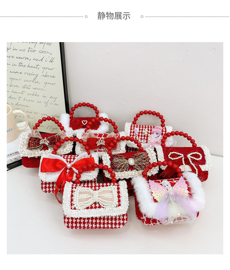 Año Nuevo gran bolso cuadrado rojo para niños bolso de perla bebé lindos bolso de cadena de arco bolso de cambio de niñas