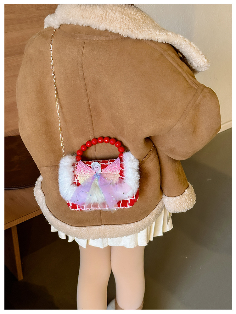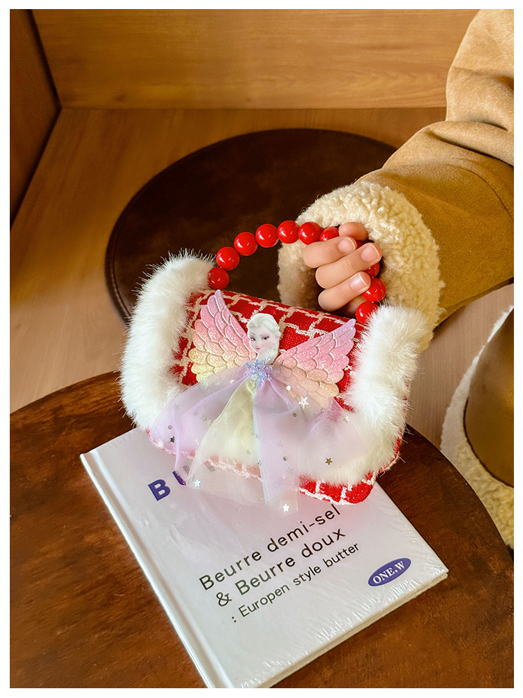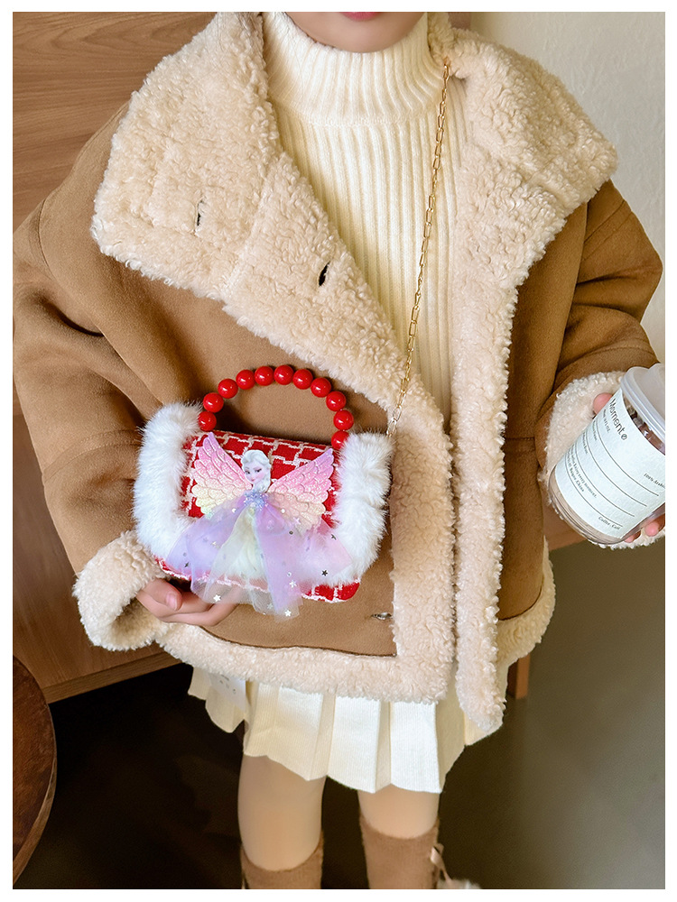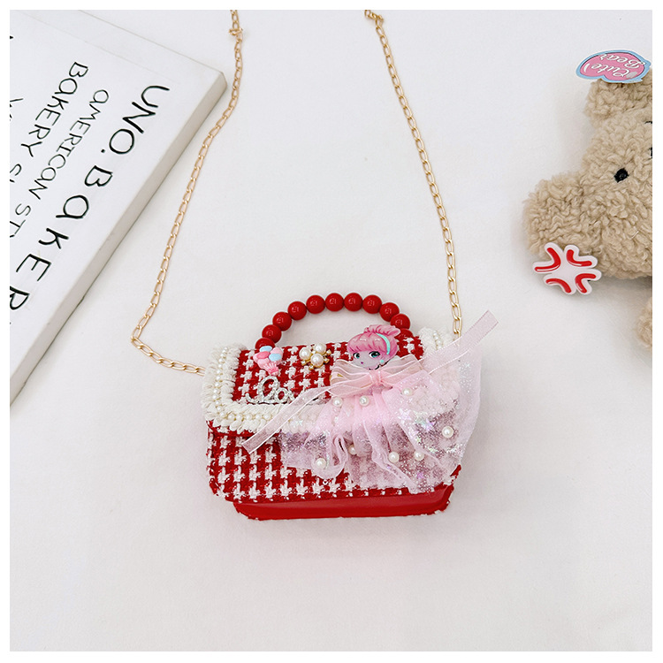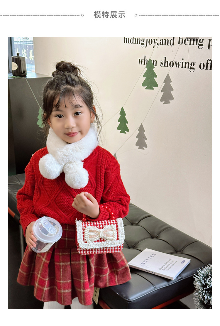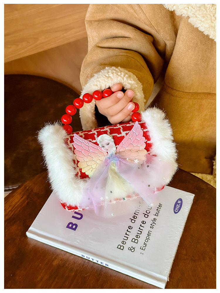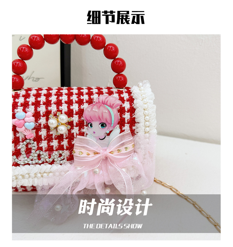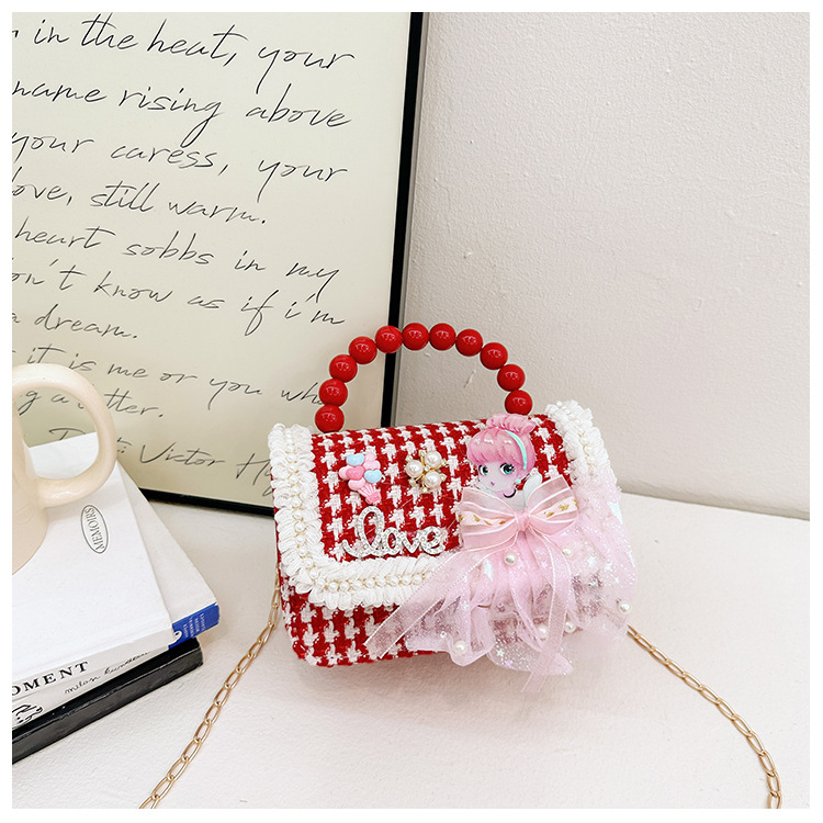 Año Nuevo gran bolso cuadrado rojo para niños bolso de perla bebé lindos bolso de cadena de arco bolso de cambio de niñas