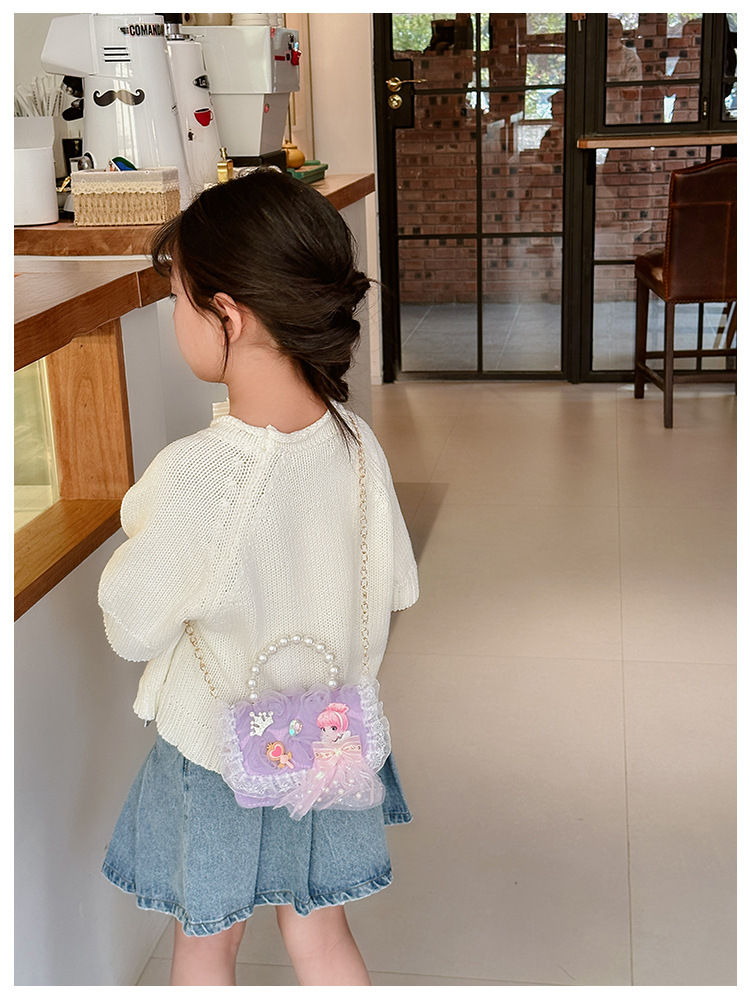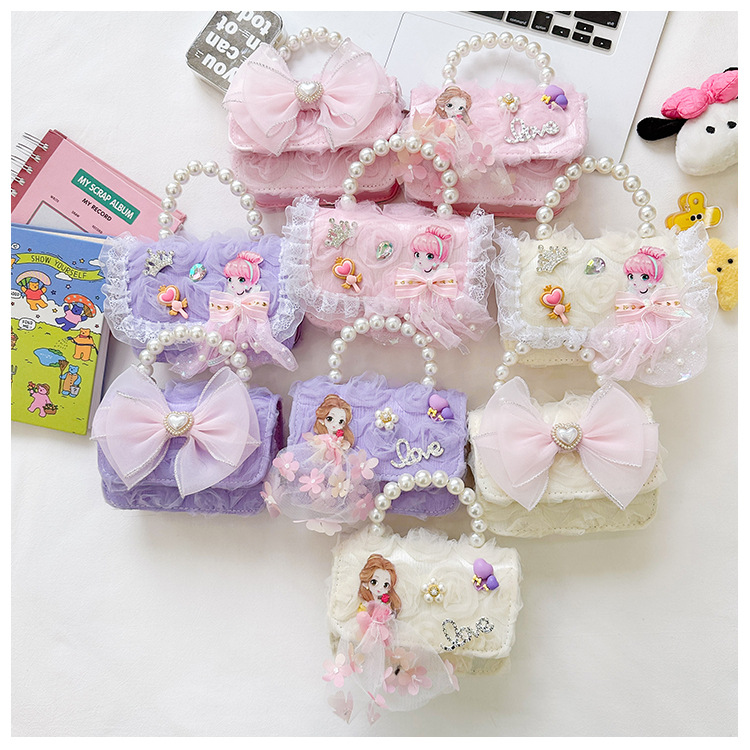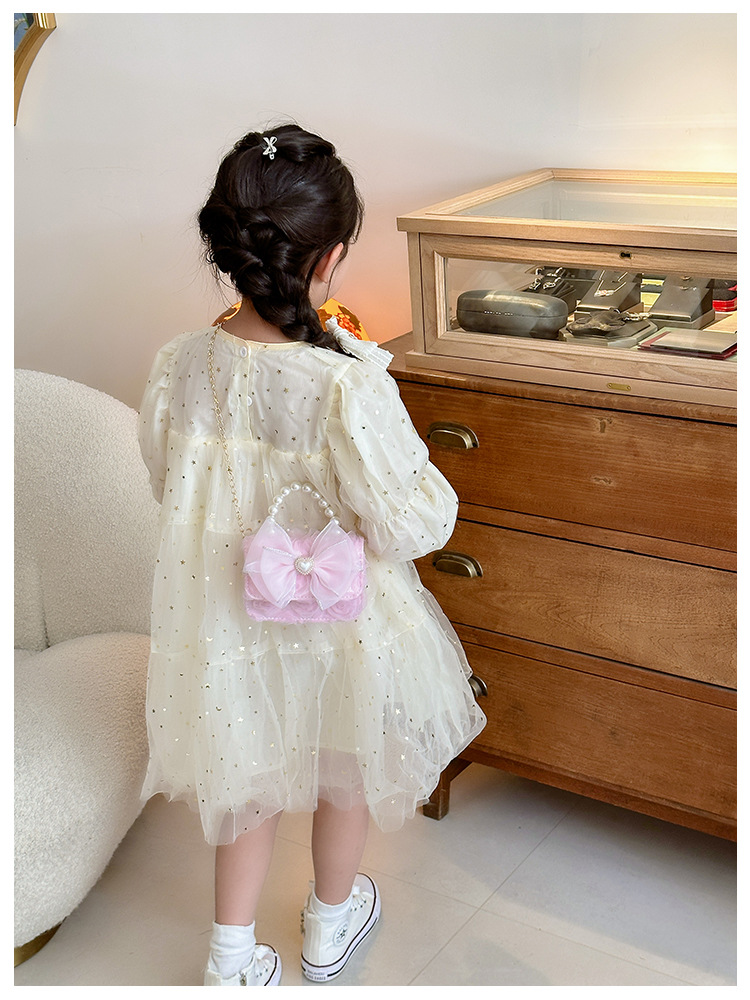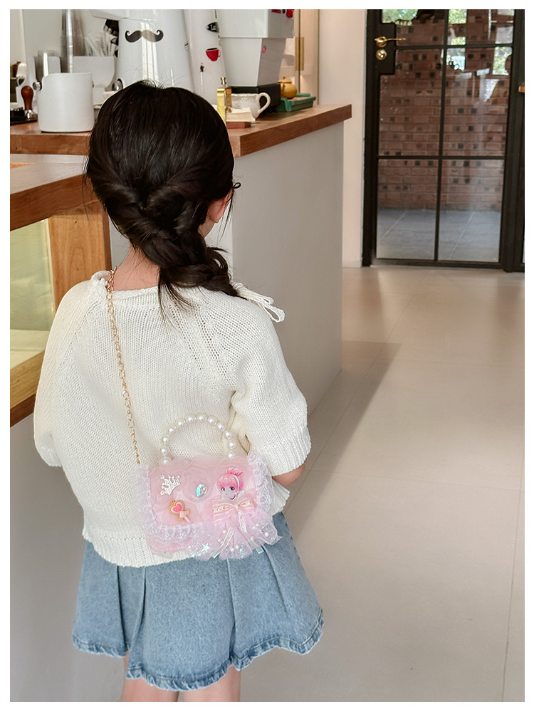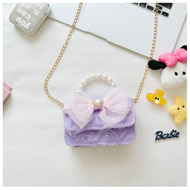 Bolsos infantiles de moda extranjera arco de perla bolsos de mano princesa bolsos de hombro cadenas de moda