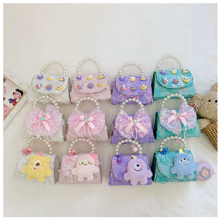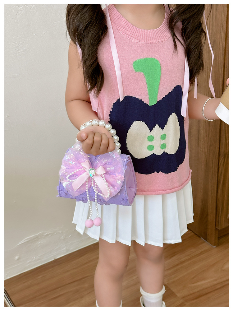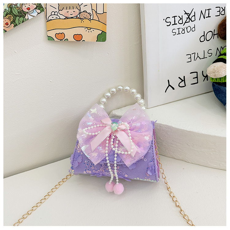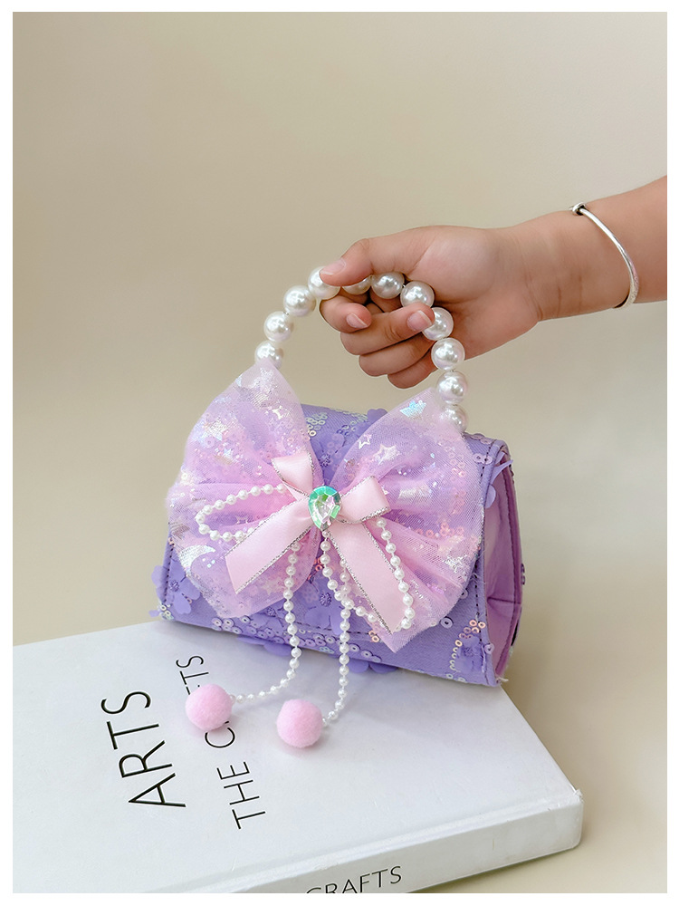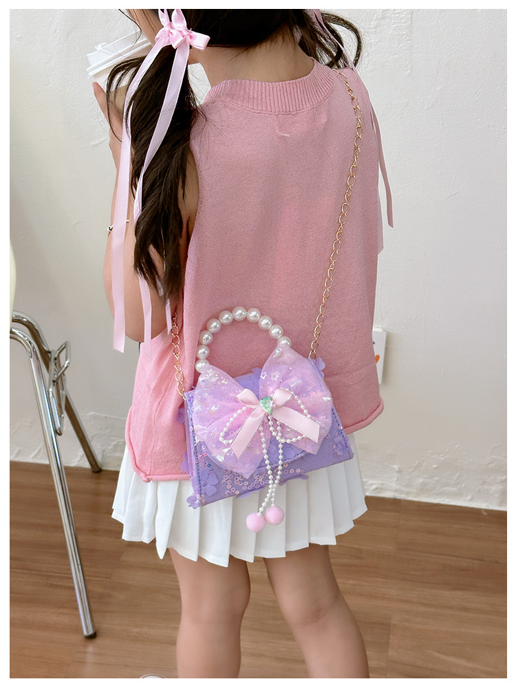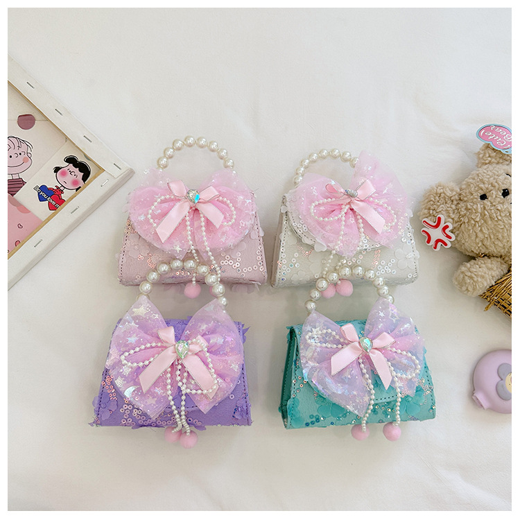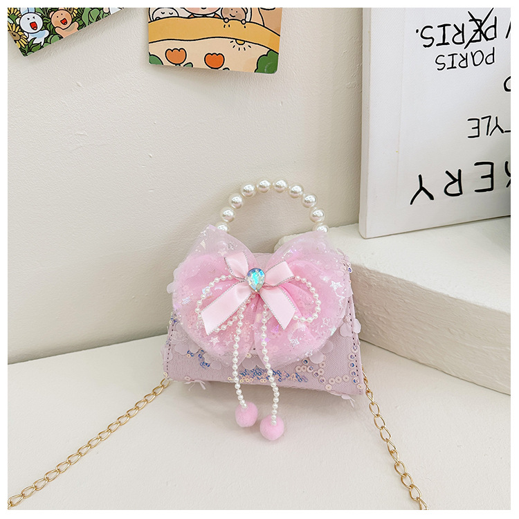 Nueva princesa de dibujos animados bolsos infantiles lindos bolsos de arco de moda chica perla bolsos de hombro