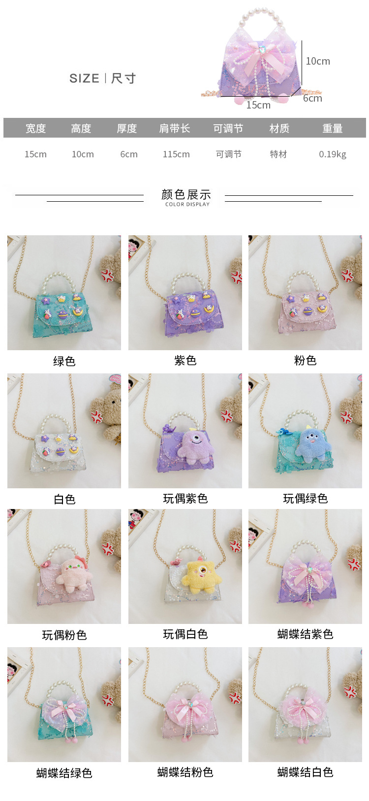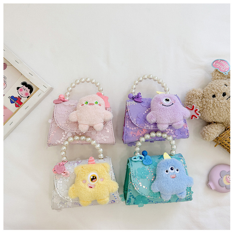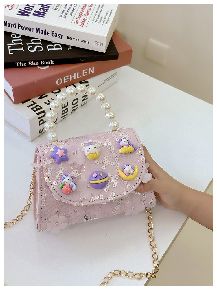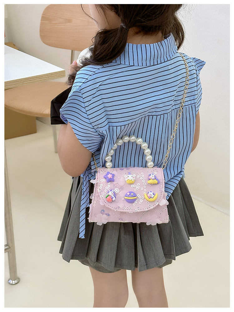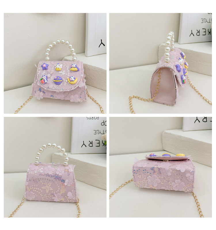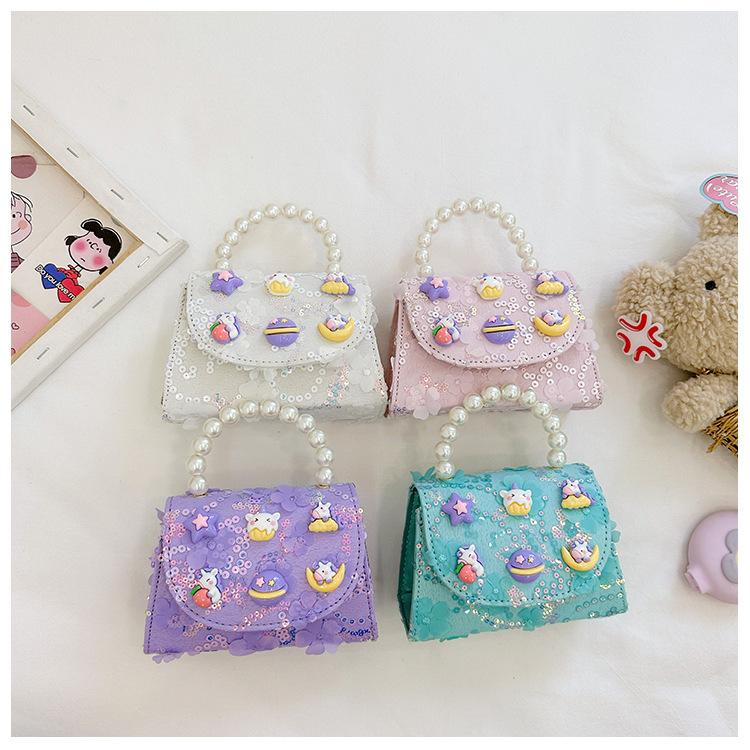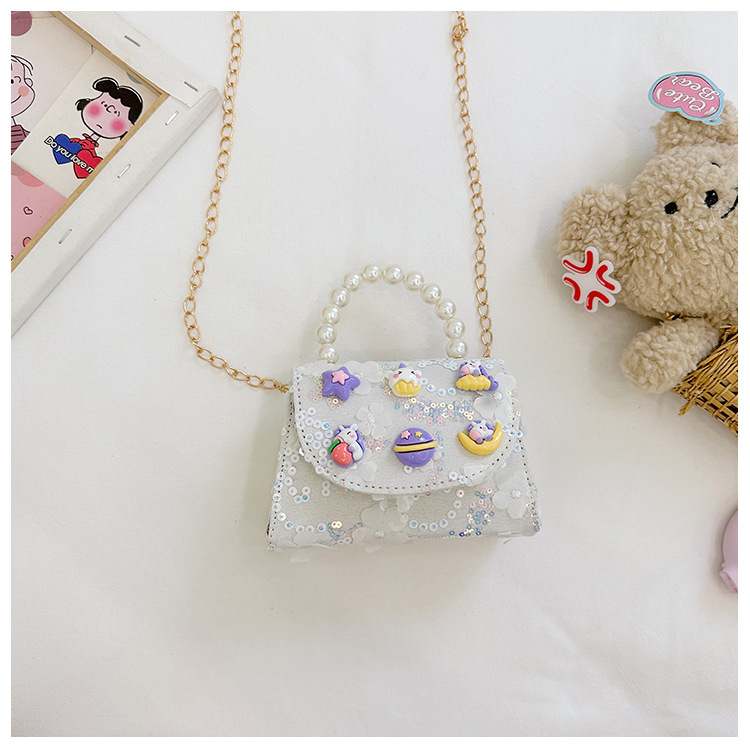 Nueva princesa de dibujos animados bolsos infantiles lindos bolsos de arco de moda chica perla bolsos de hombro