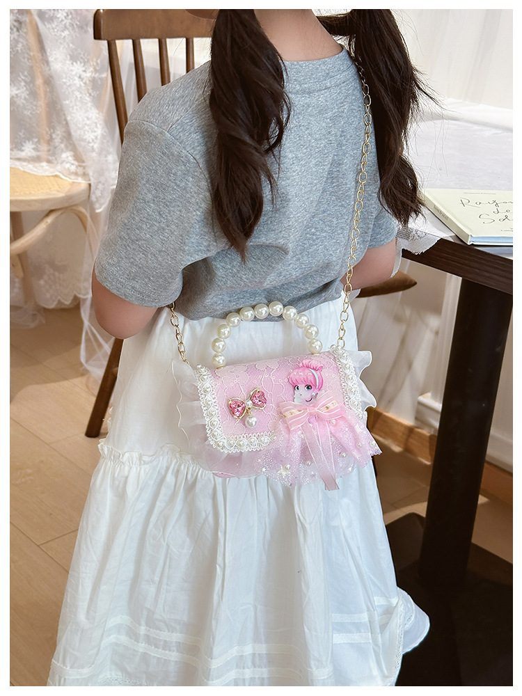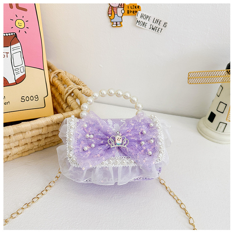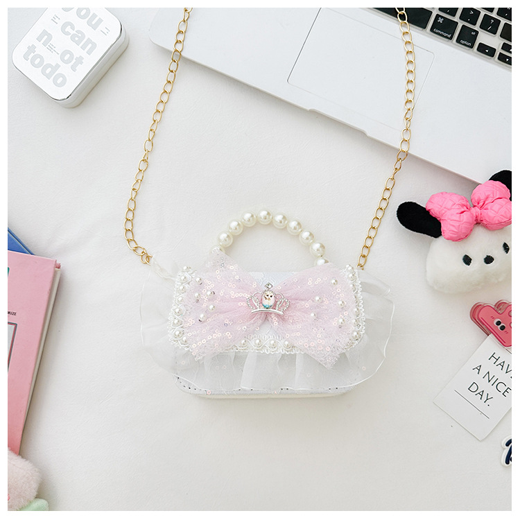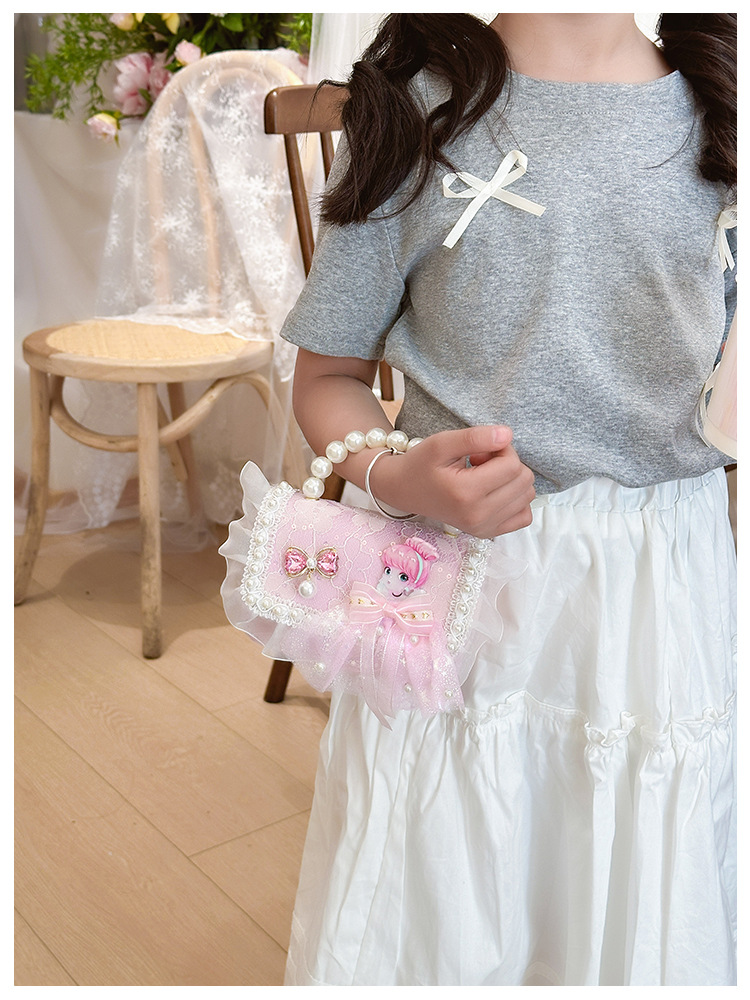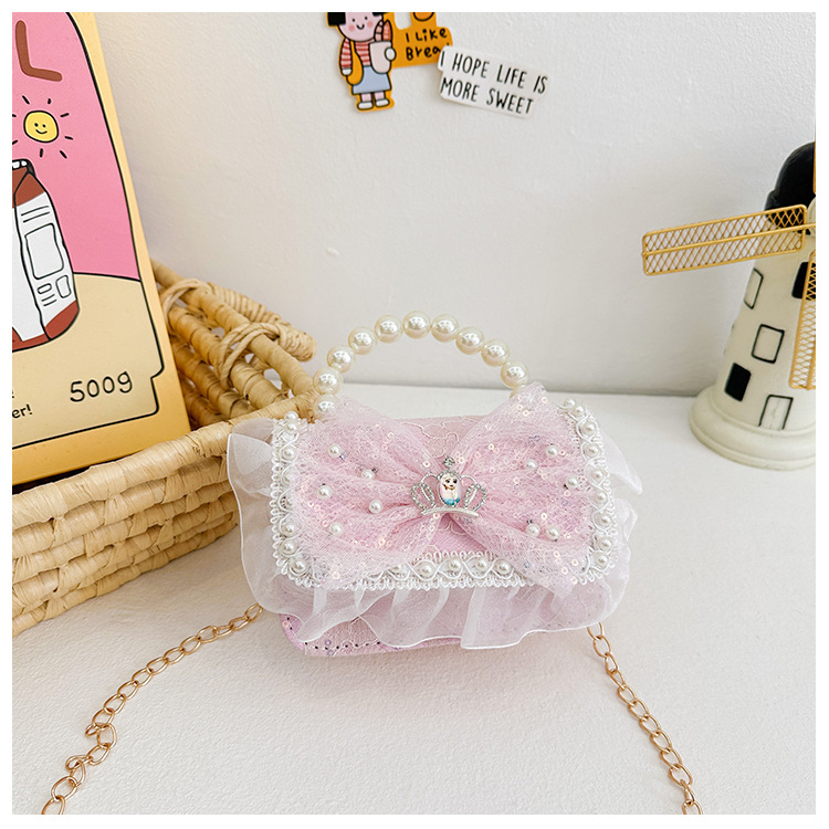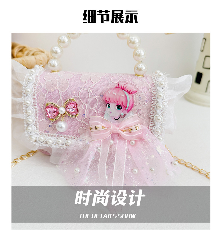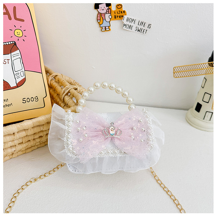 Bolso para niños 2024 nuevo lindos bolso de niña bolso accesorios de princesa de estilo extranjero bolso de cadena de perlas de fragancia