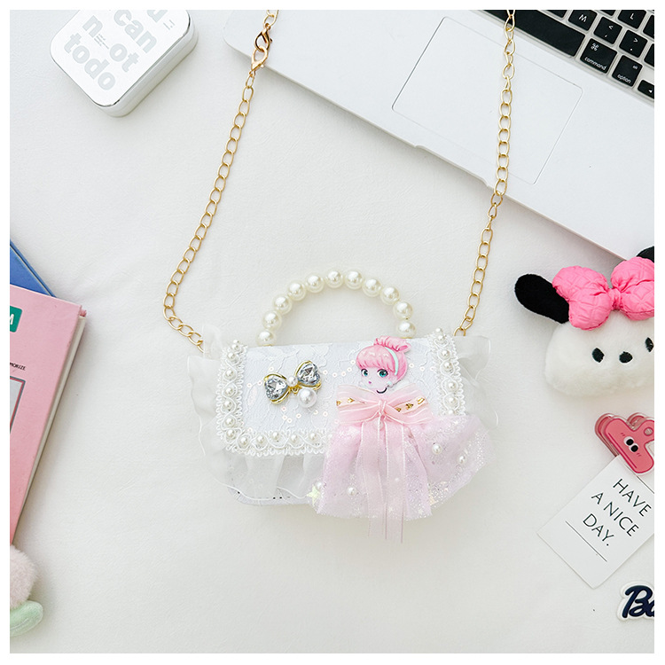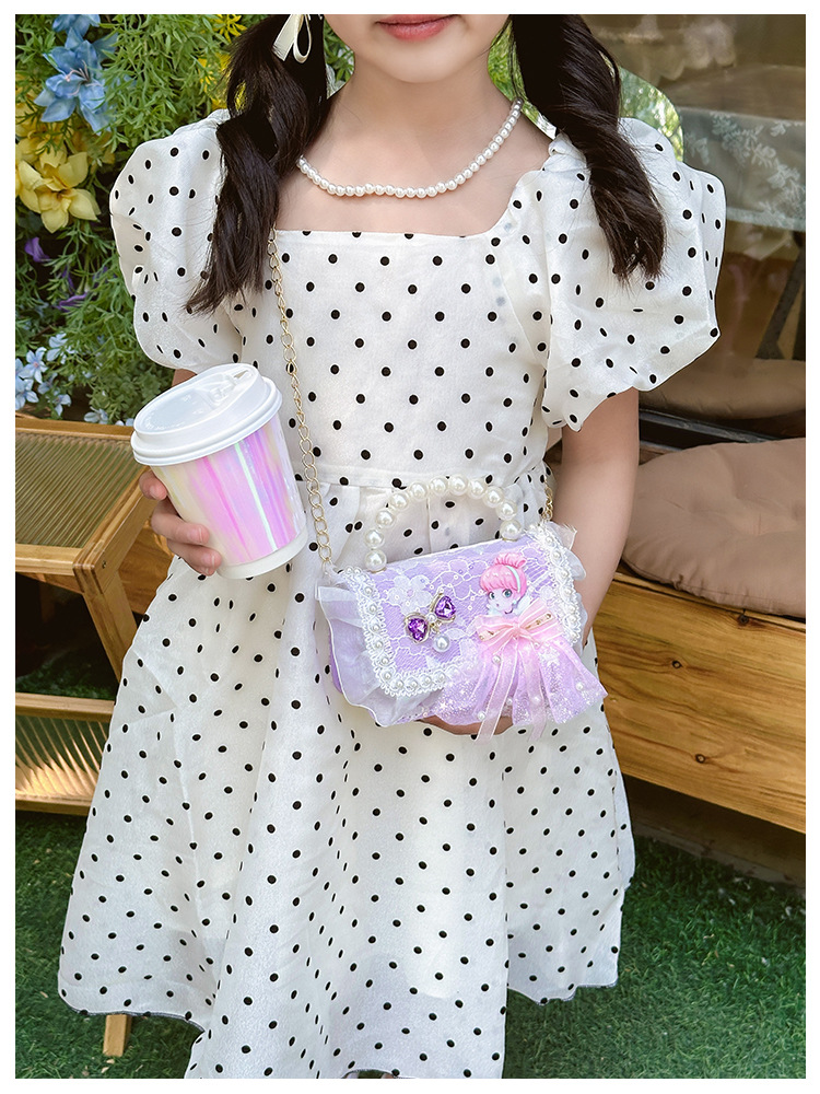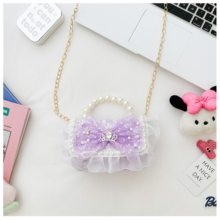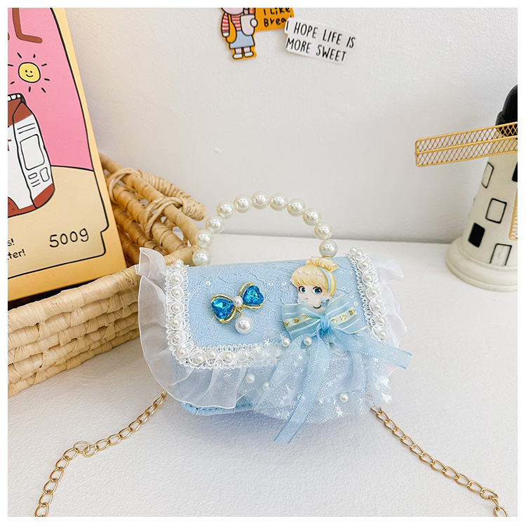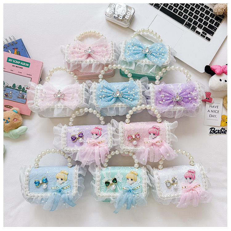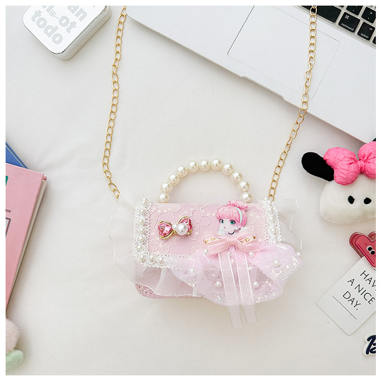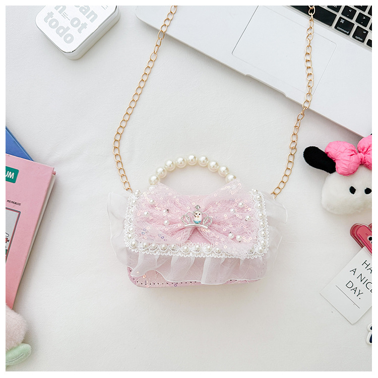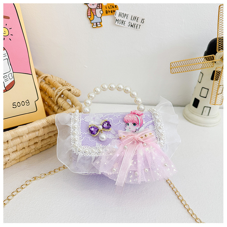 Bolso para niños 2024 nuevo lindos bolso de niña bolso accesorios de princesa de estilo extranjero bolso de cadena de perlas de fragancia