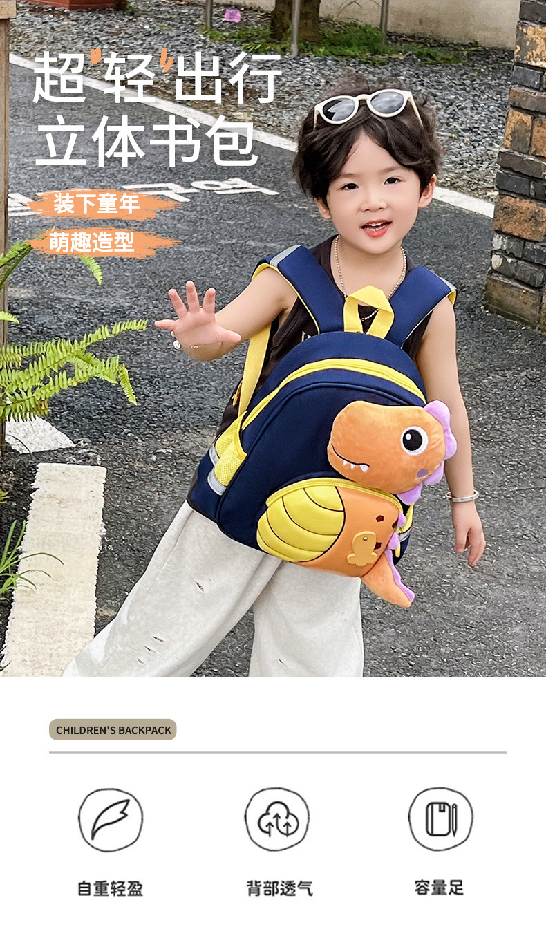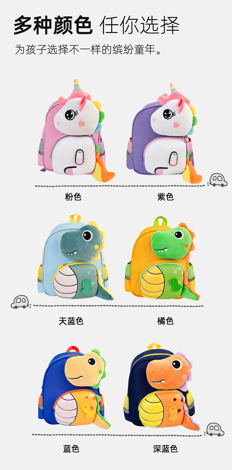 Nuevo dinosaurio niño mochila lindo muñeca de peluche bebé fuera de bocadillos mochila antideslizante niña mochila