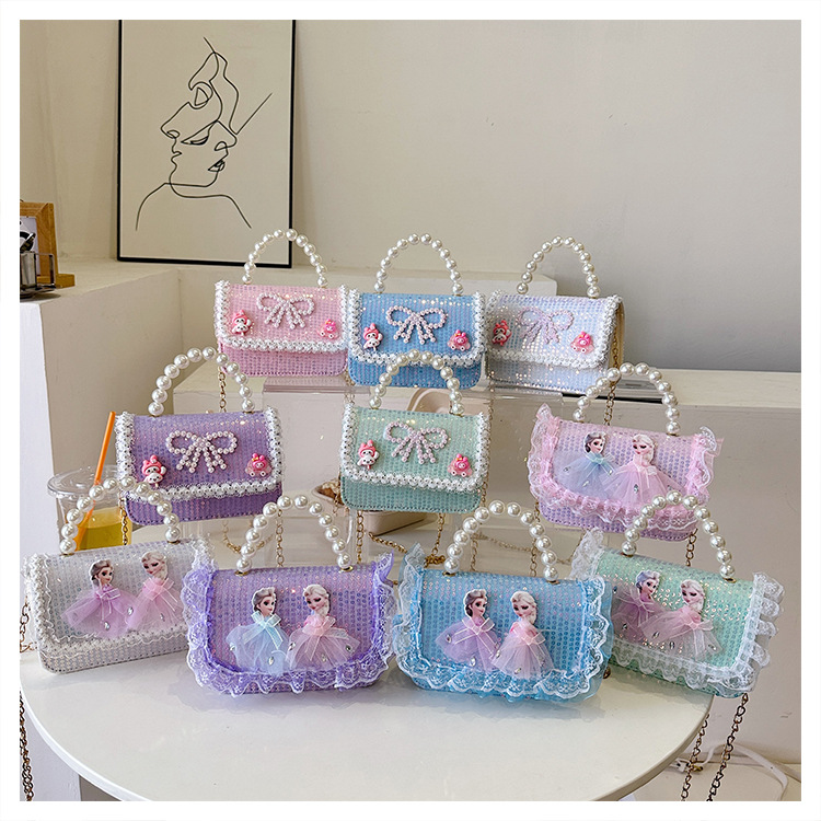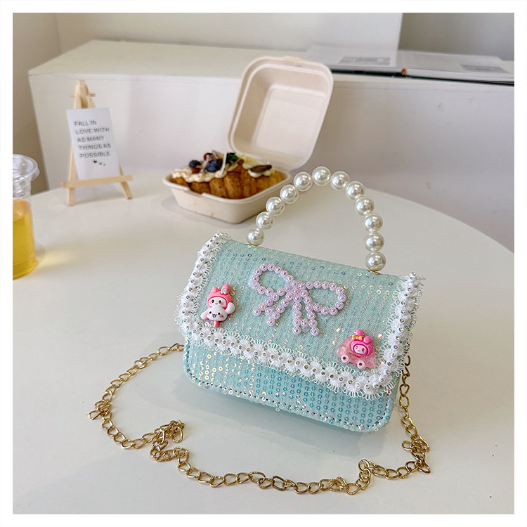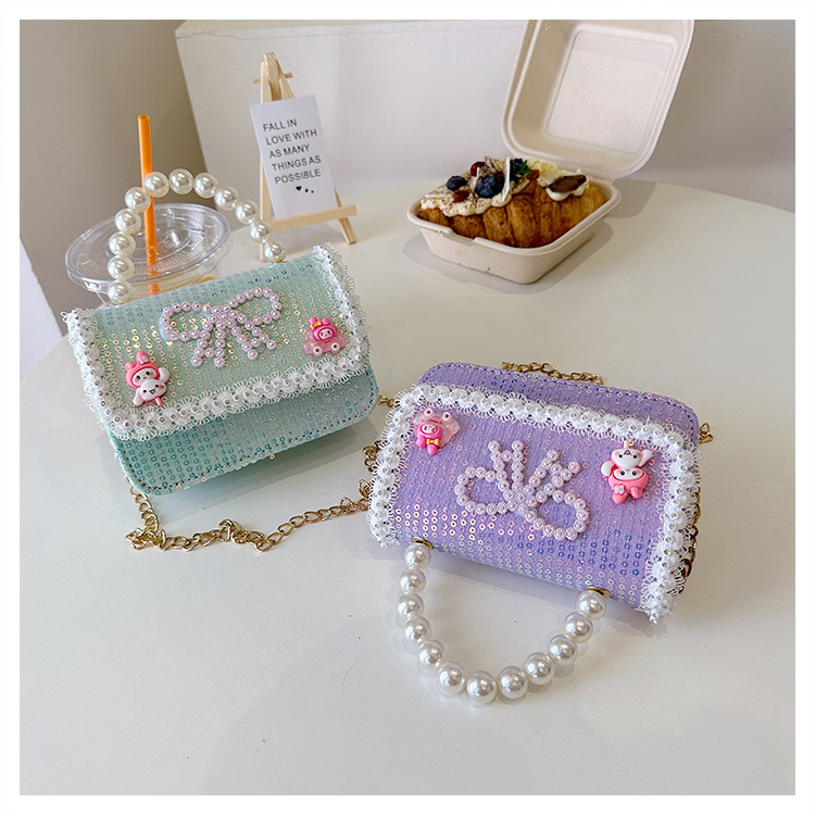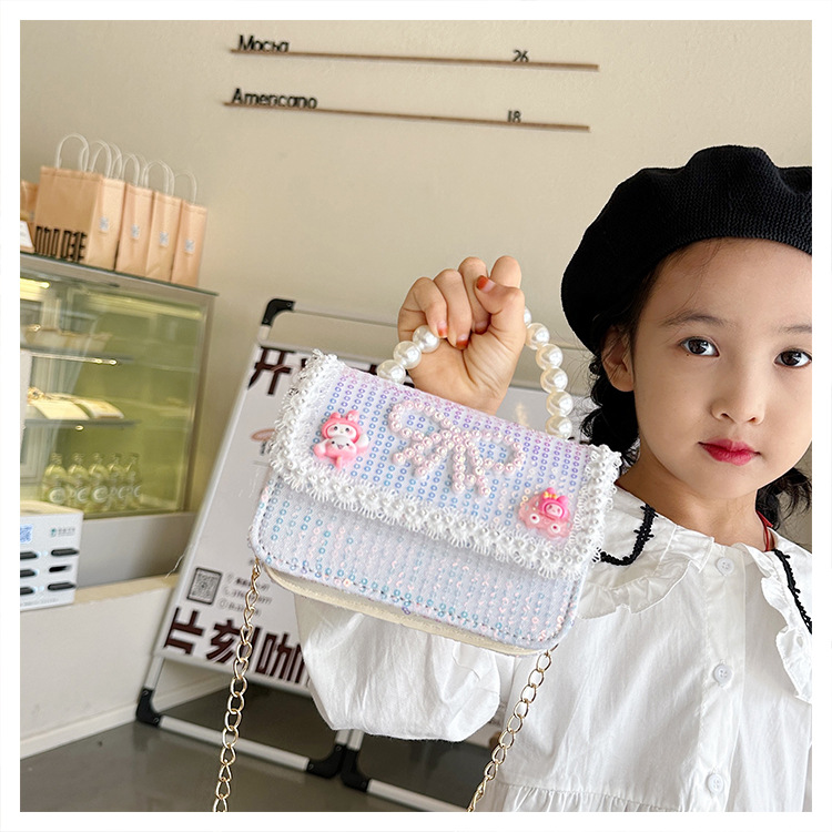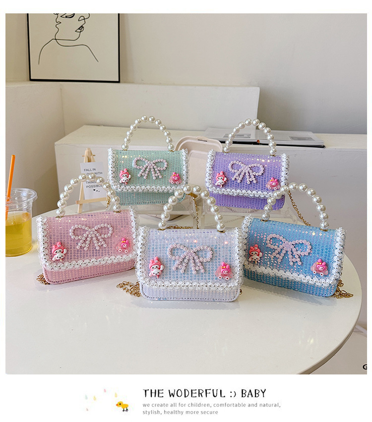 2025 nuevo lindo arco princesa bolsa de perlas portátil moda versátil mochila de hombro bolso de cambio coreano