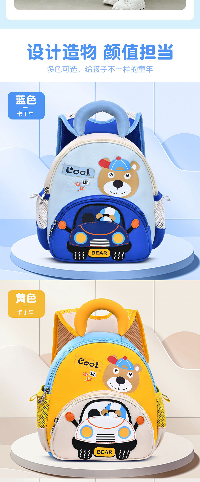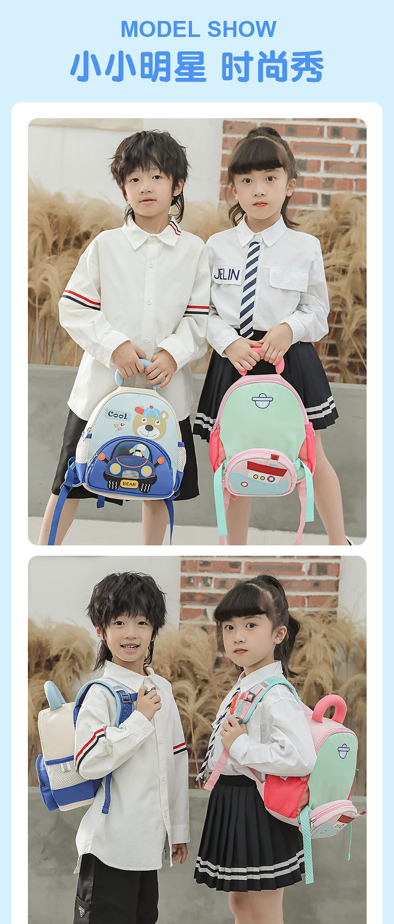 Nuevas mochilas de jardín de infantes para niños y niñas de 3 - 6 años de caricatura encantadora ultraligera gran capacidad mochila de tela de twill casual