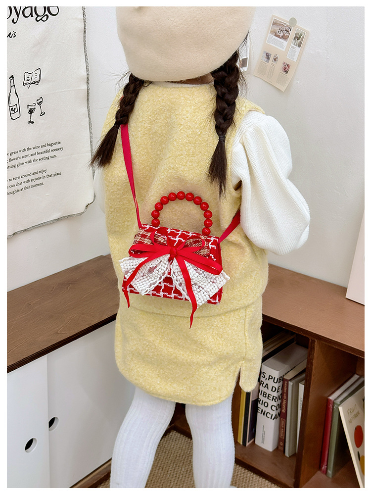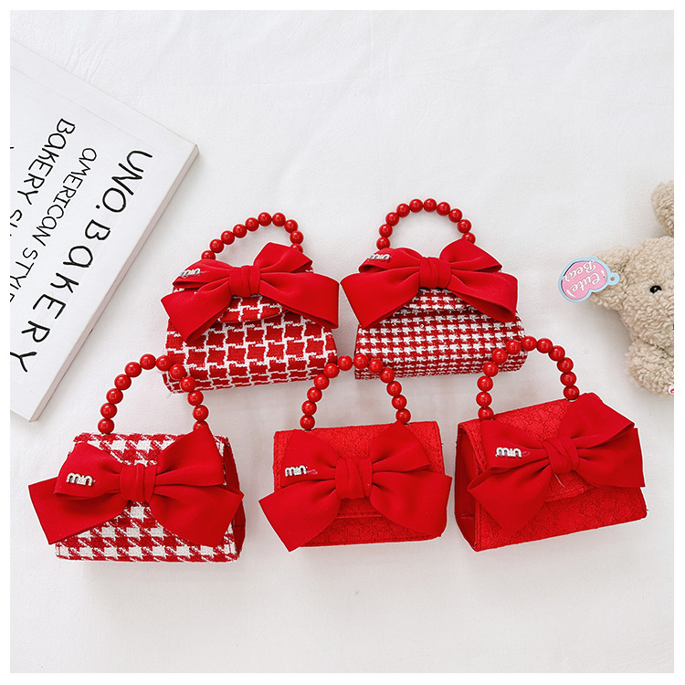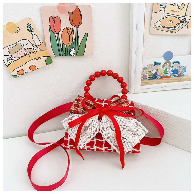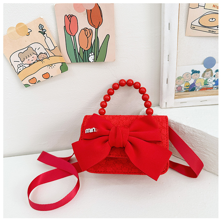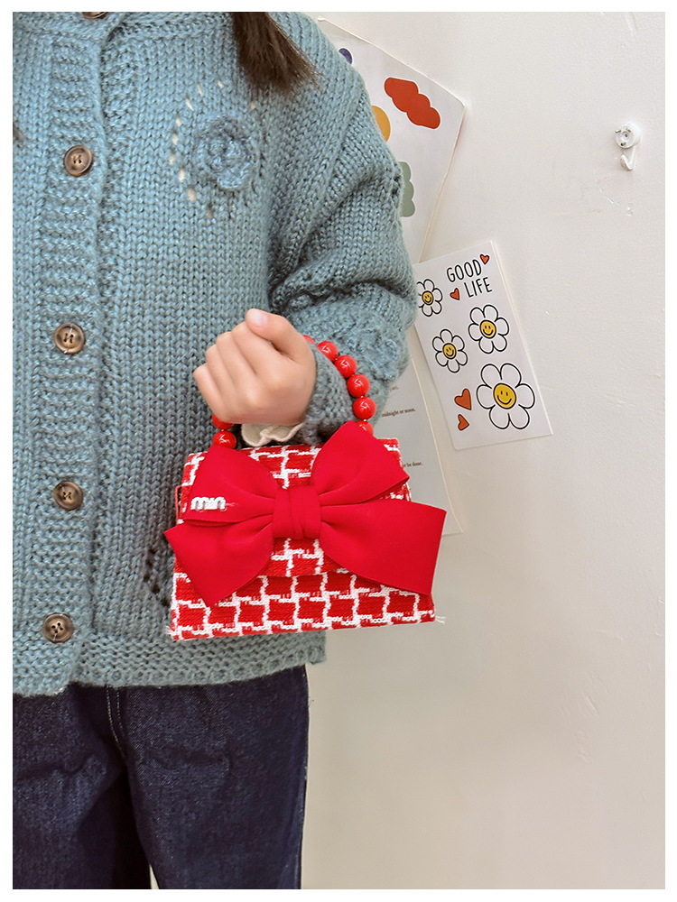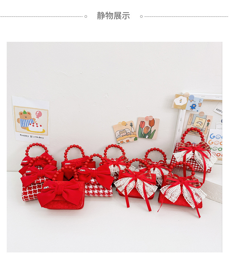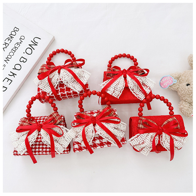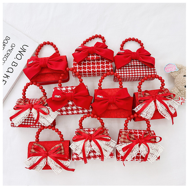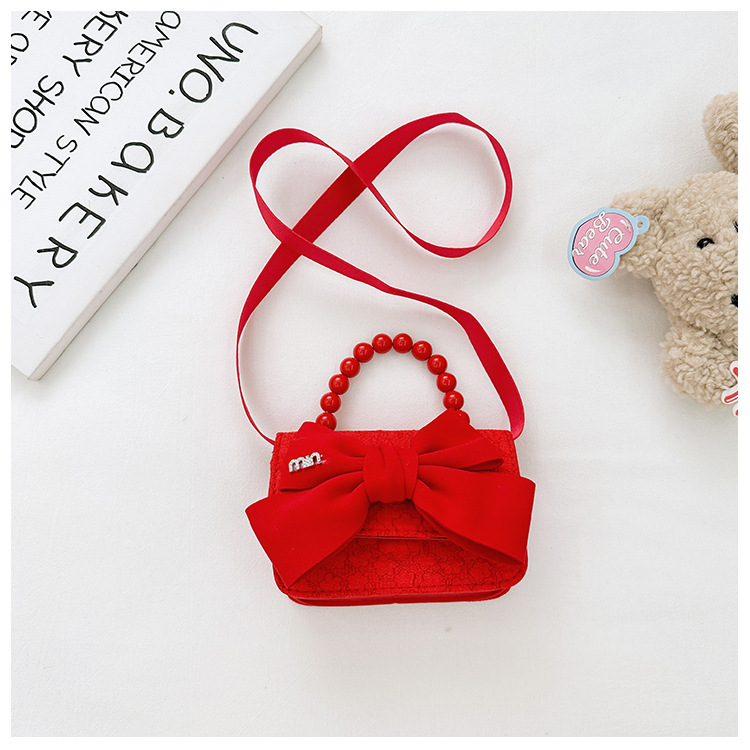 Año nuevo rojo Chanel estilo de los niños perla bolso del bebé lindo arco cadena niñas monedero