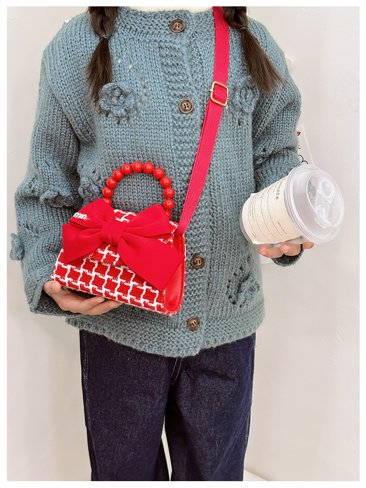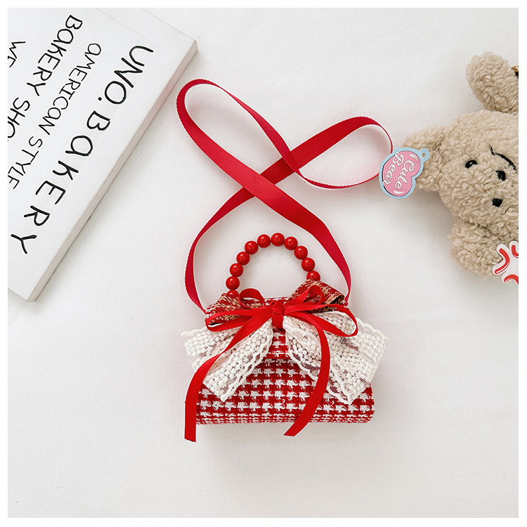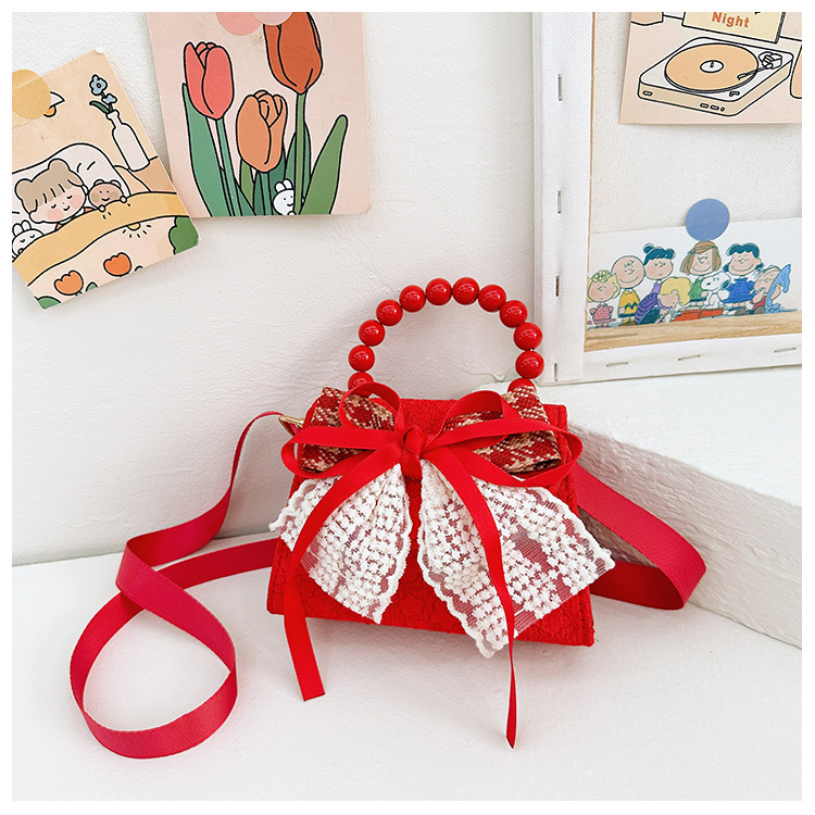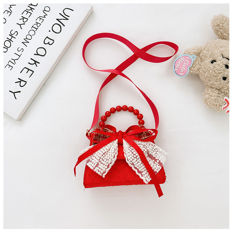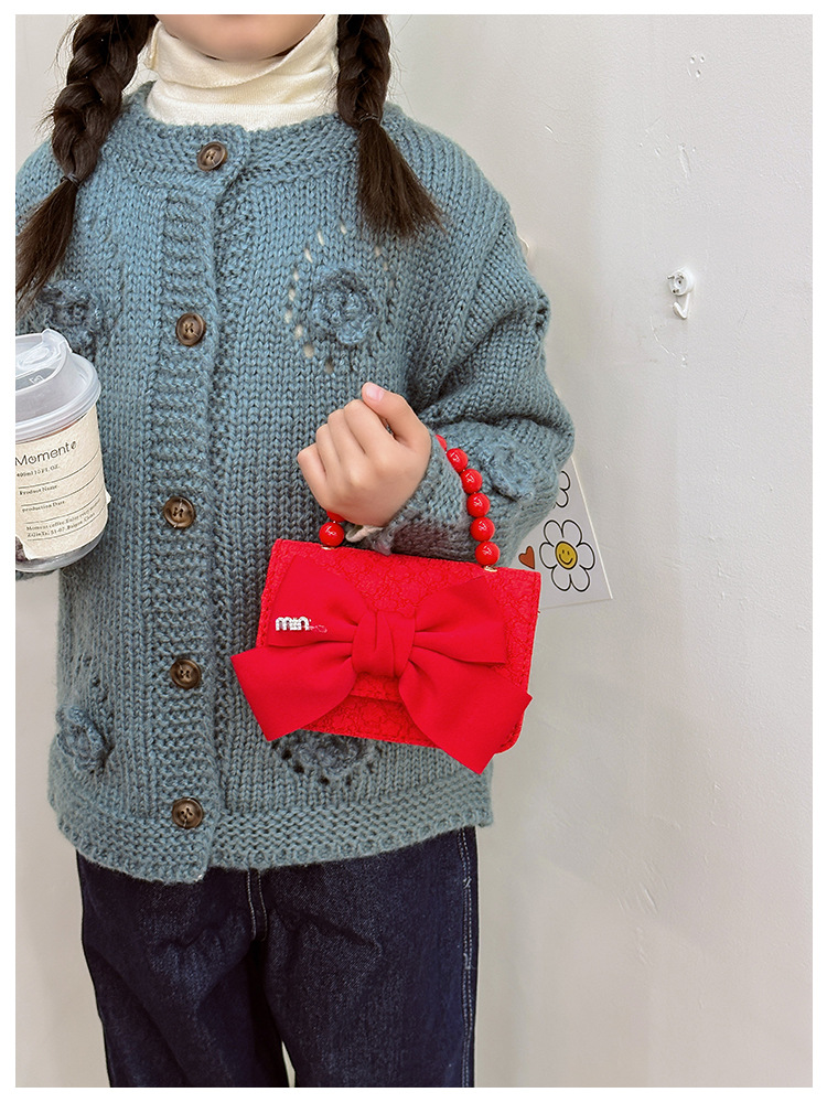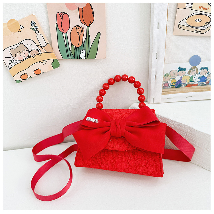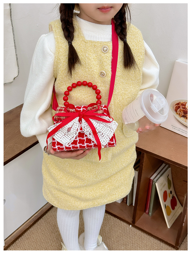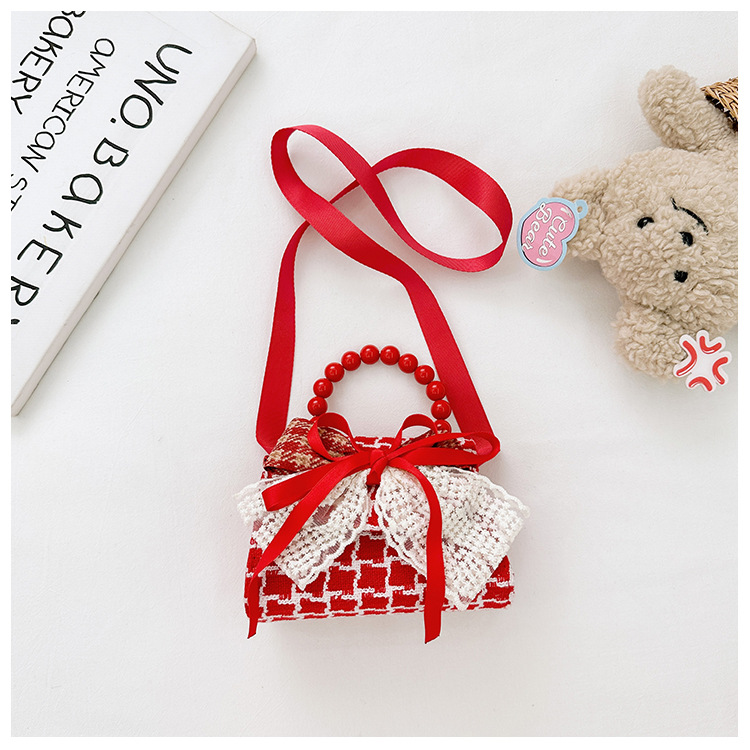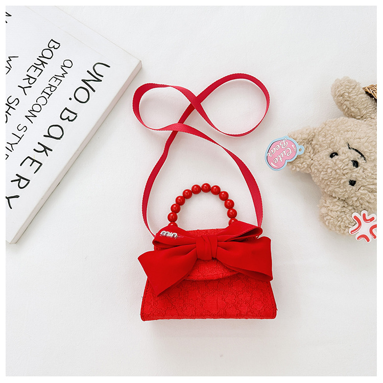 Año nuevo rojo Chanel estilo de los niños perla bolso del bebé lindo arco cadena niñas monedero
