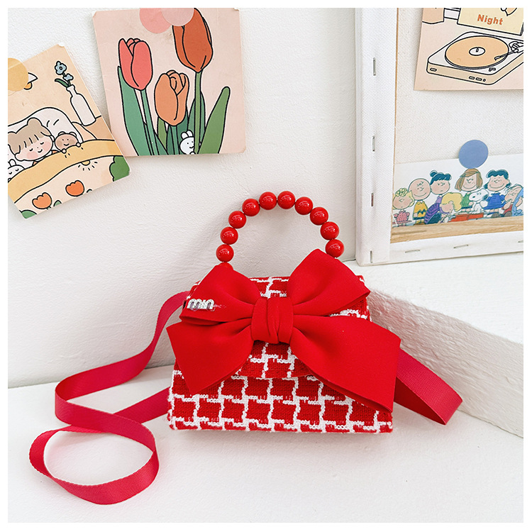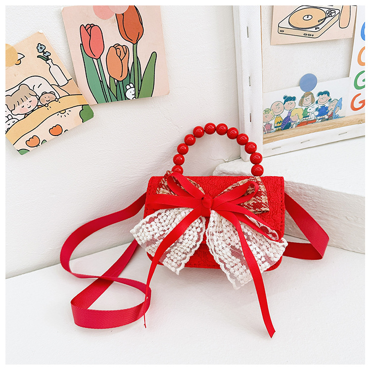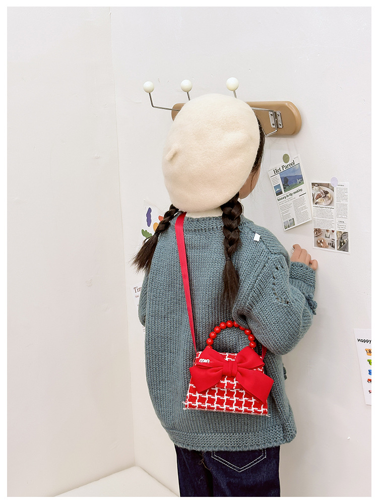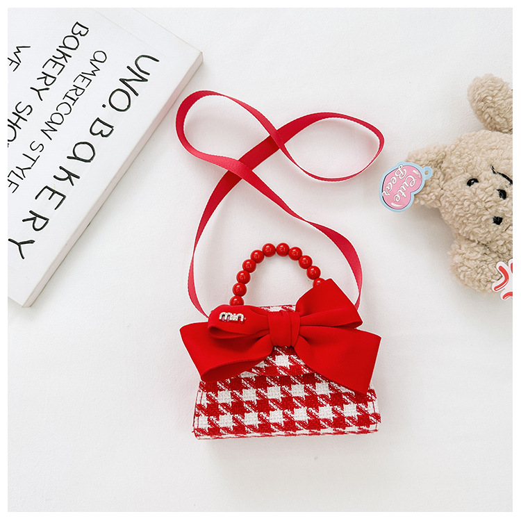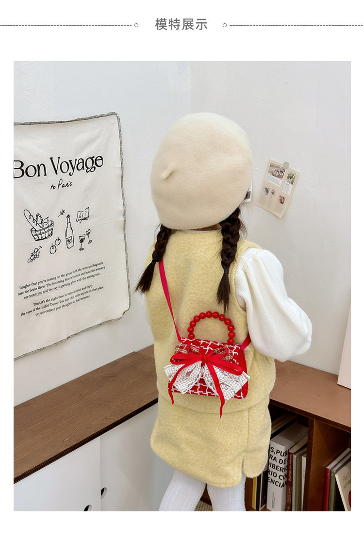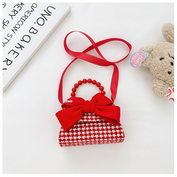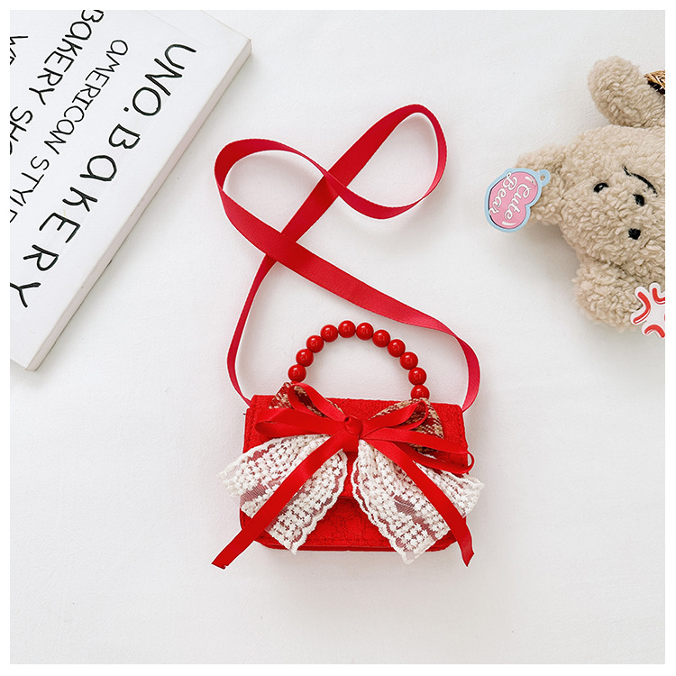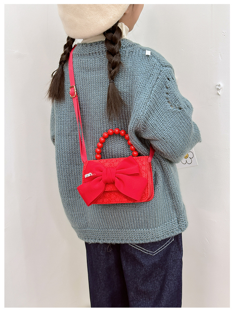 Año nuevo rojo Chanel estilo de los niños perla bolso del bebé lindo arco cadena niñas monedero