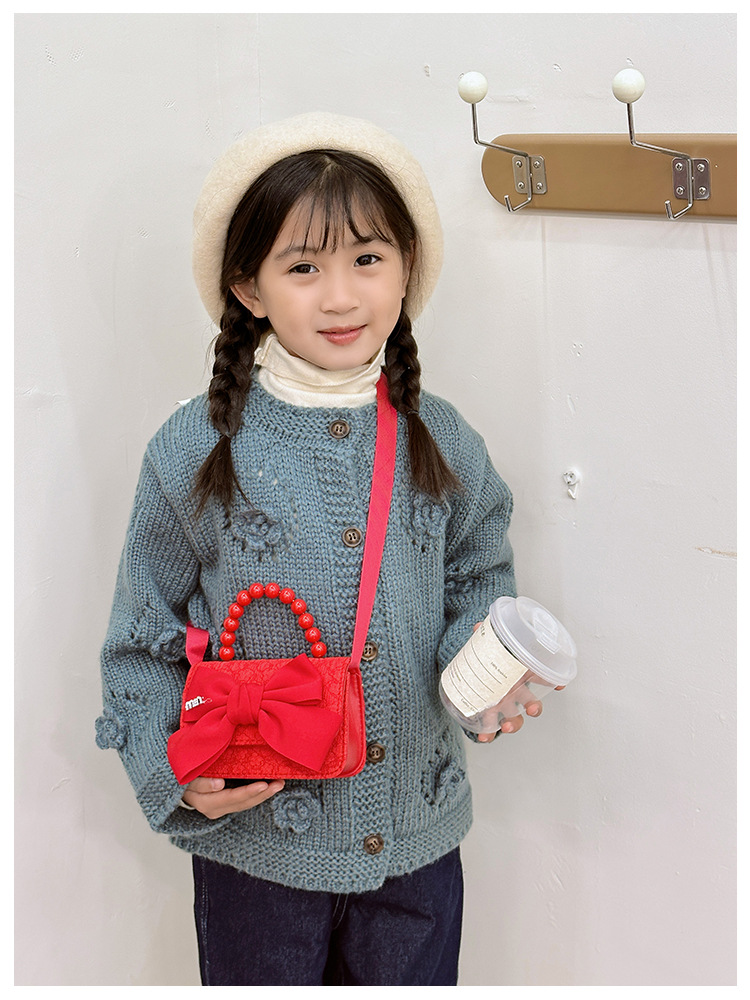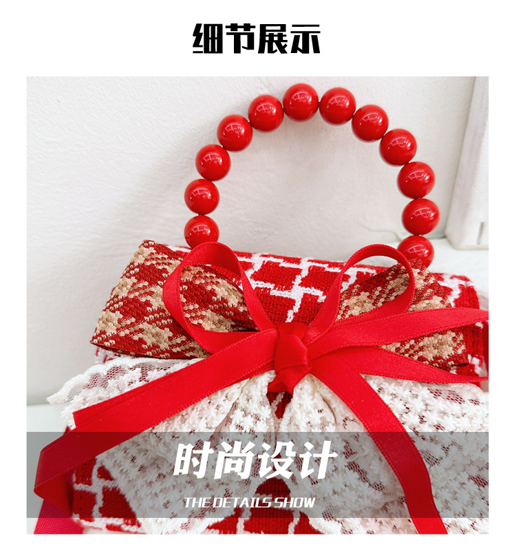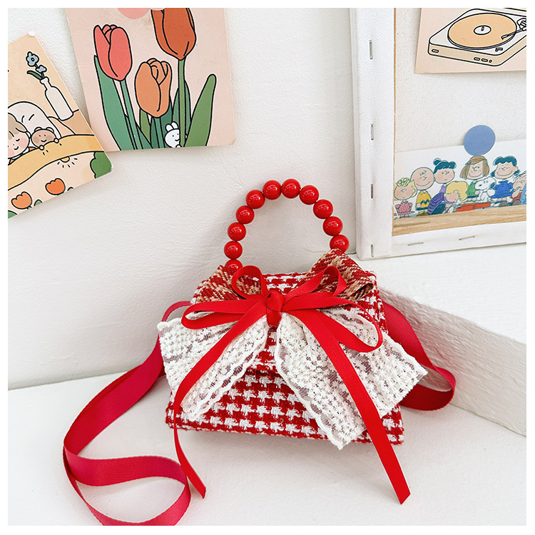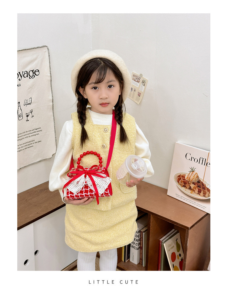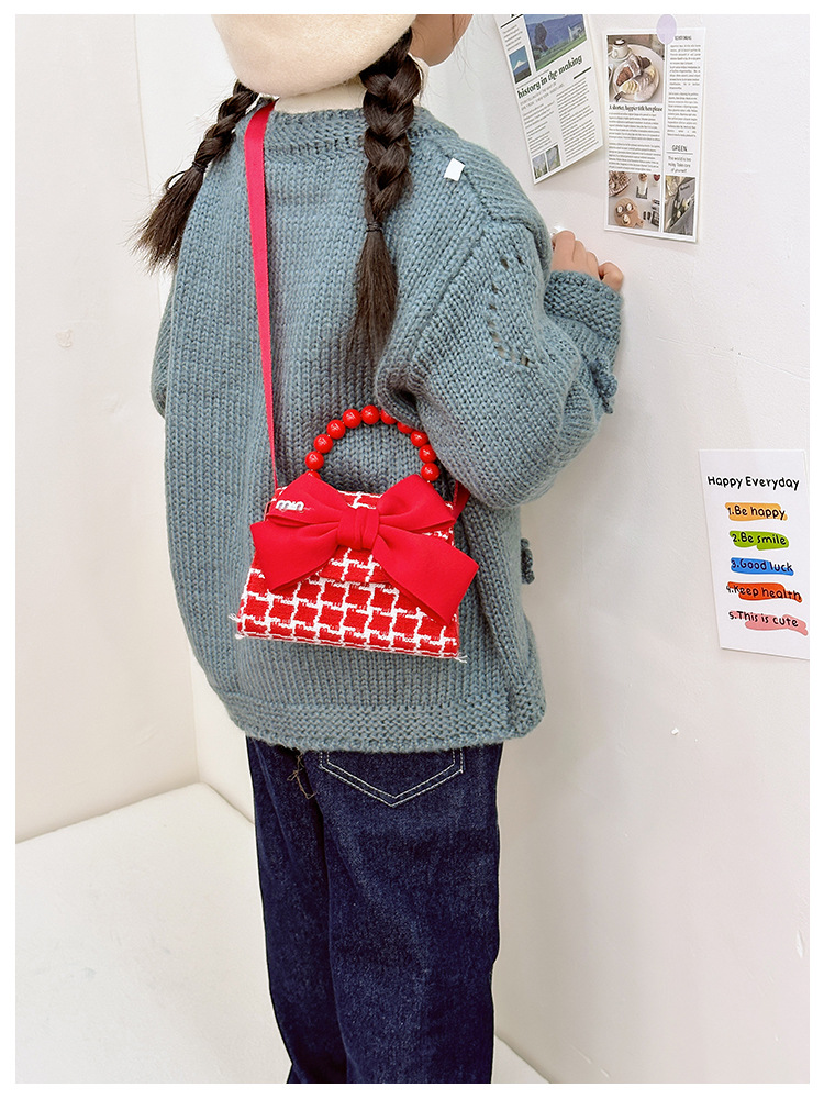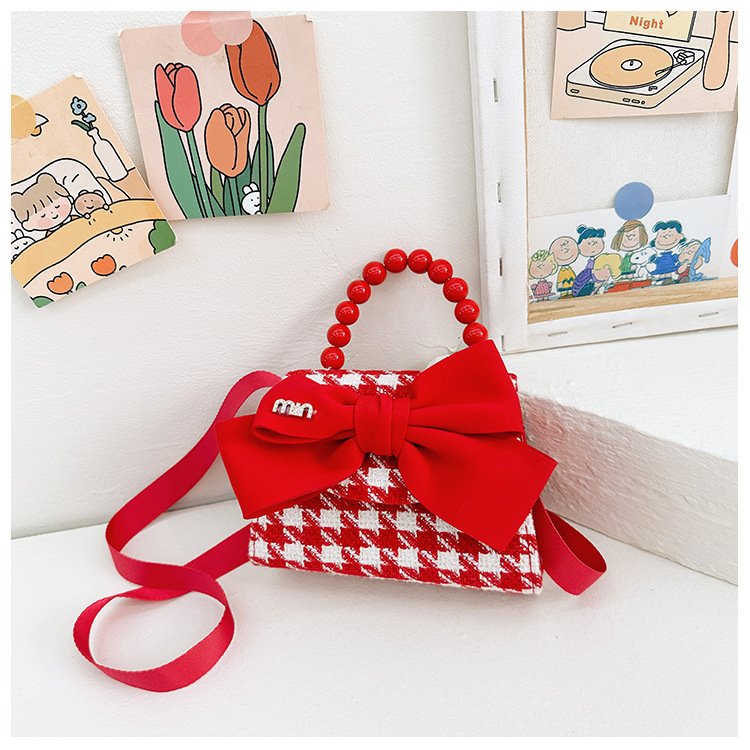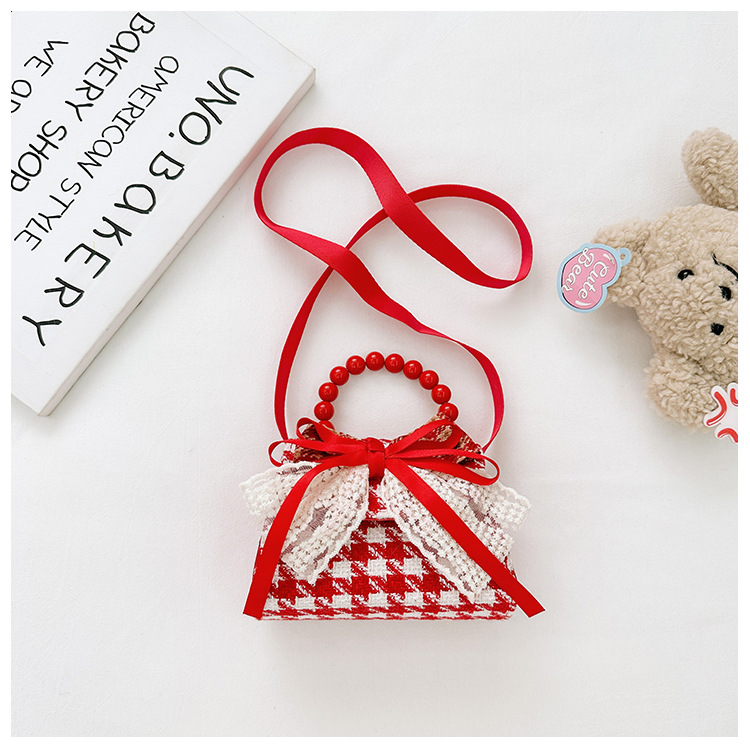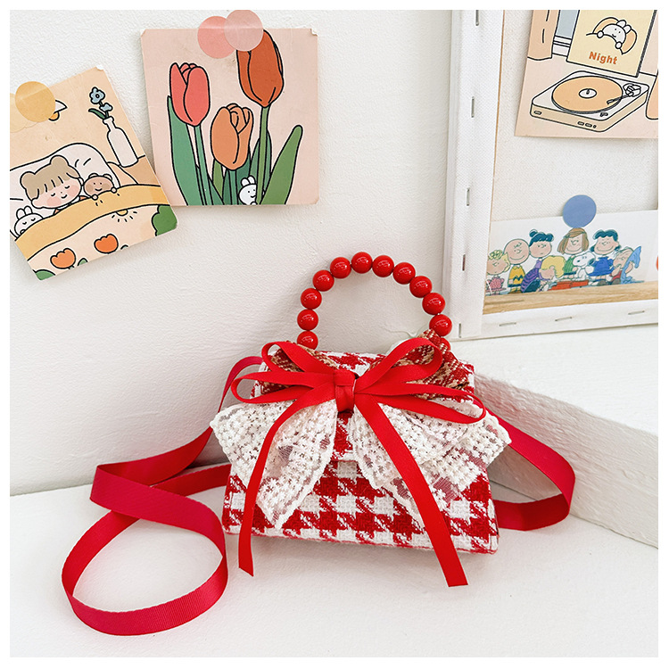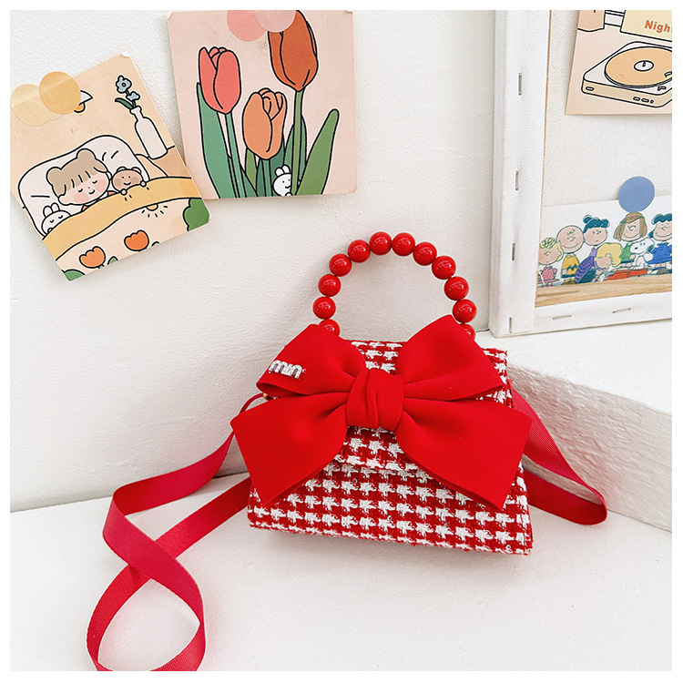 Año nuevo rojo Chanel estilo de los niños perla bolso del bebé lindo arco cadena niñas monedero