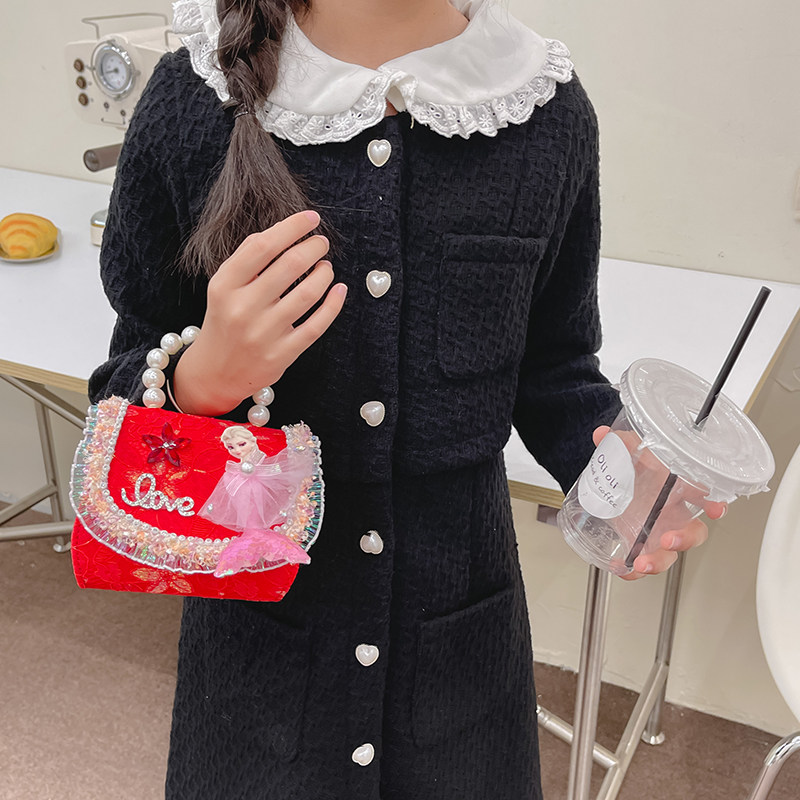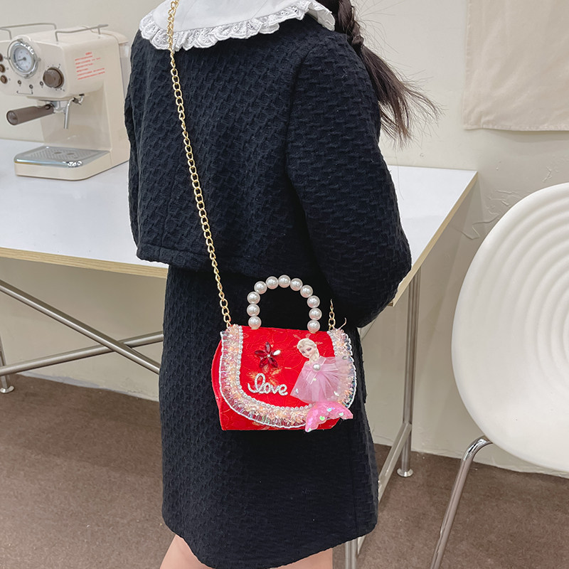 Bolsos de la princesa Aisha, bolsos de Año Nuevo bebé, bolsos de perlas de niña, bolsos rojos de hombro