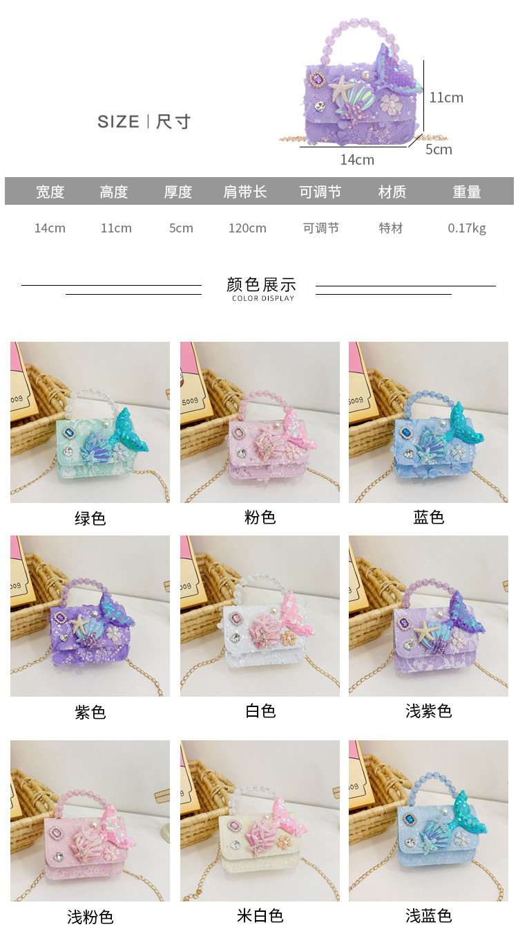 2024 nuevo niño hombro mochila princesa bolsa sirena bolsa de moda bolsa de perlas
