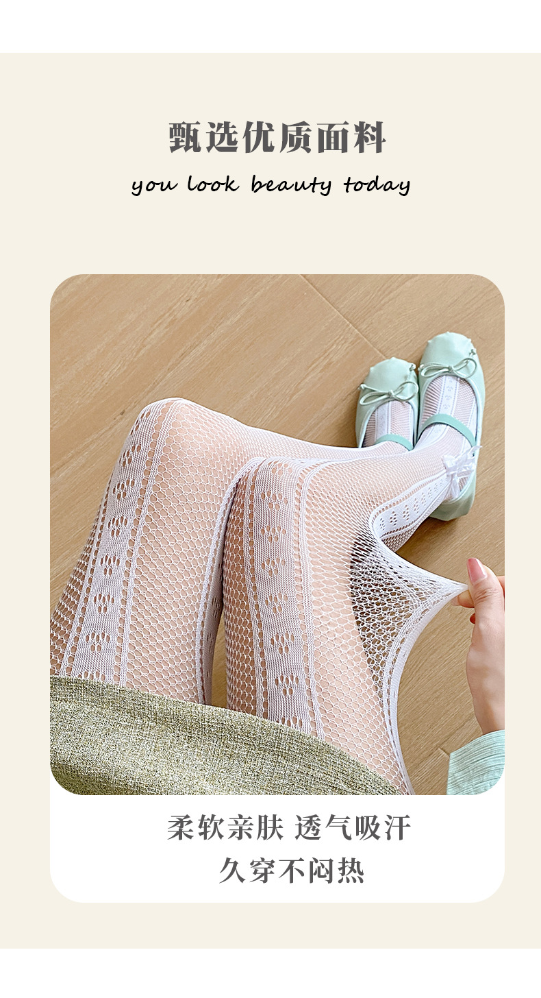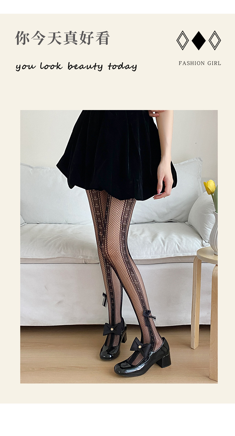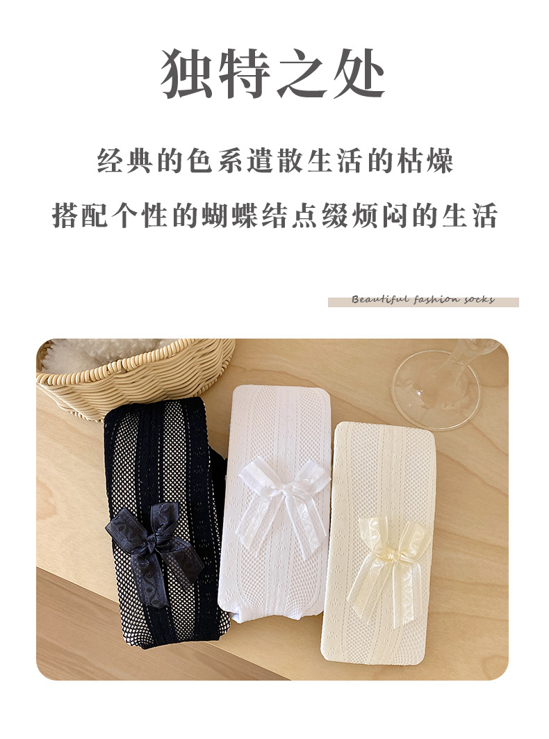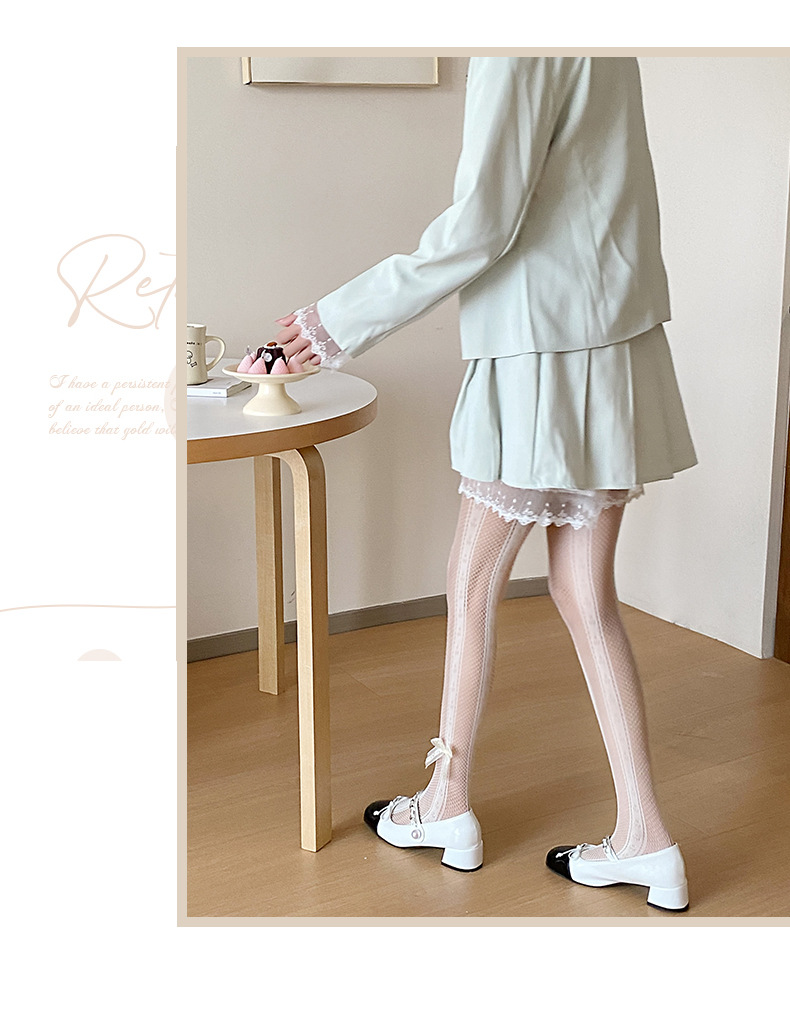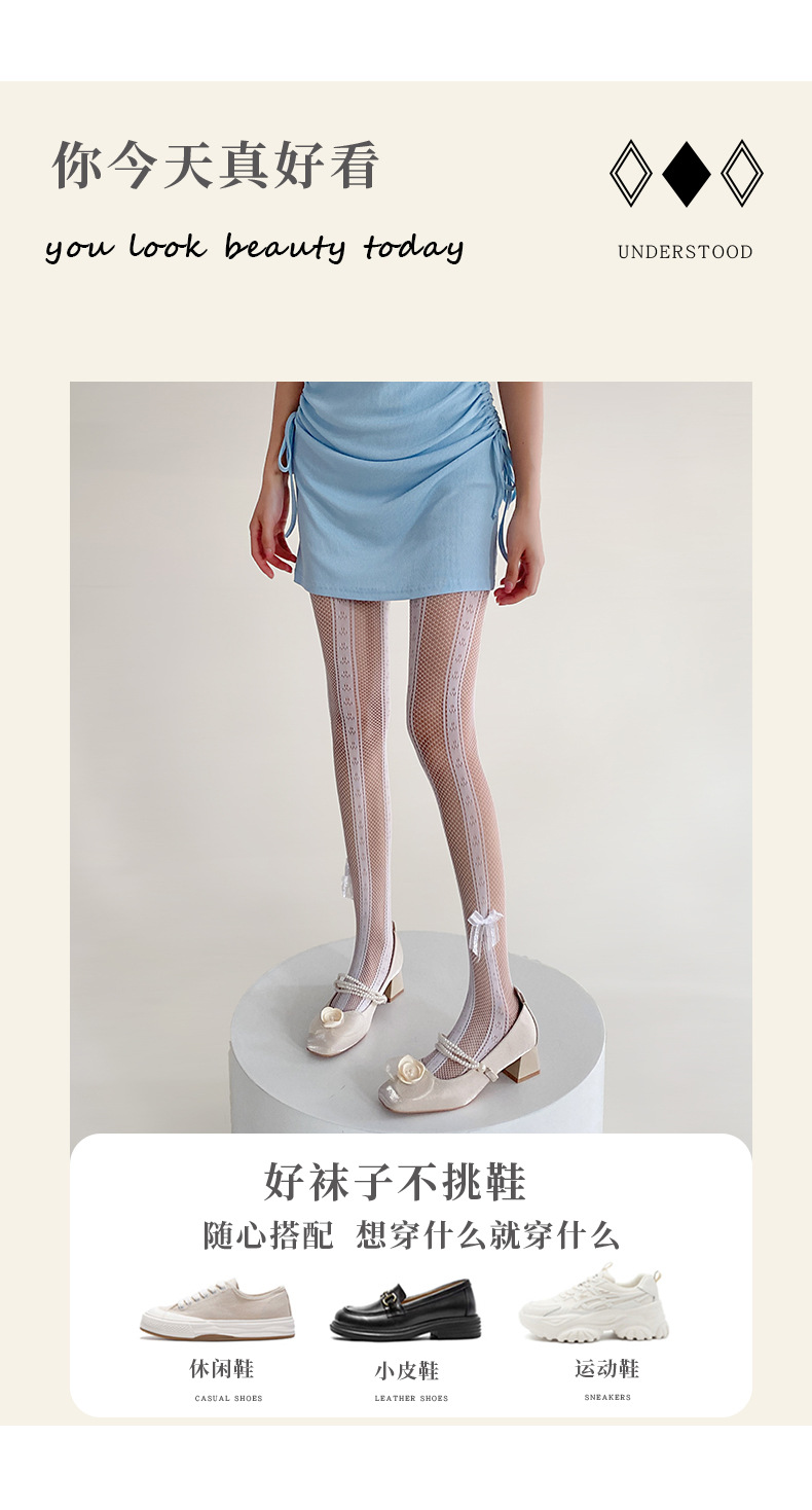 Medias de malla delgadas de verano blanco encaje vertical arco JK Lolita largo dulce encantador red de pesca hueca