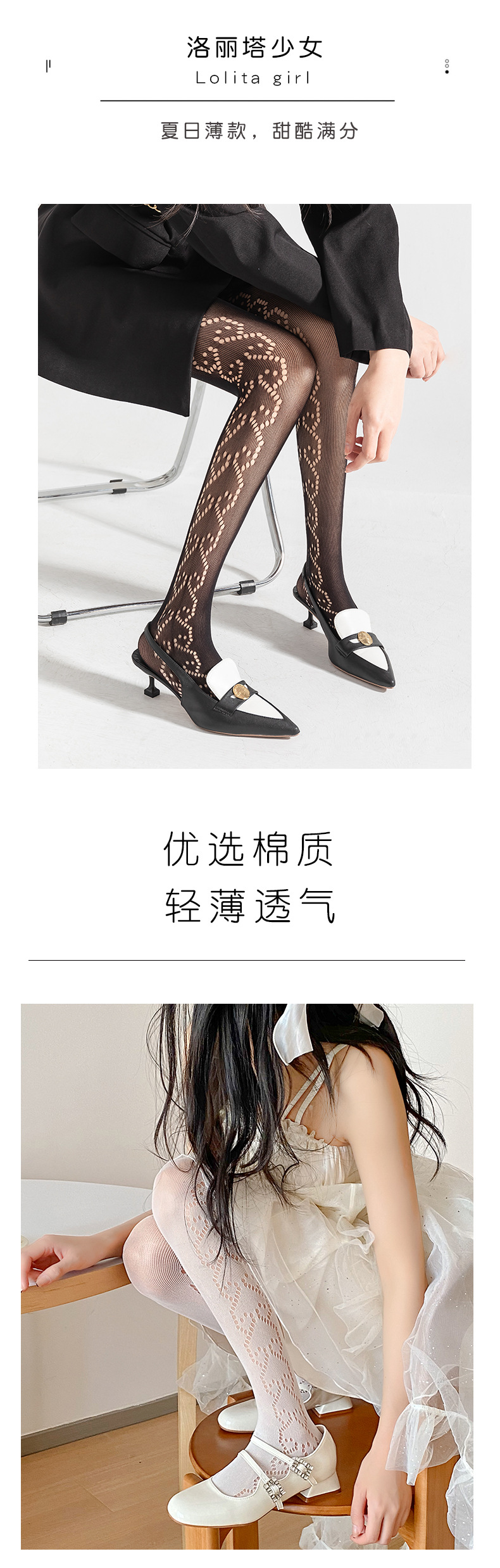Medias negras hollow-out lado amor jacquard pantimedias de verano de las mujeres delgadas sexy puro deseo estilo Lolita calcetines de malla