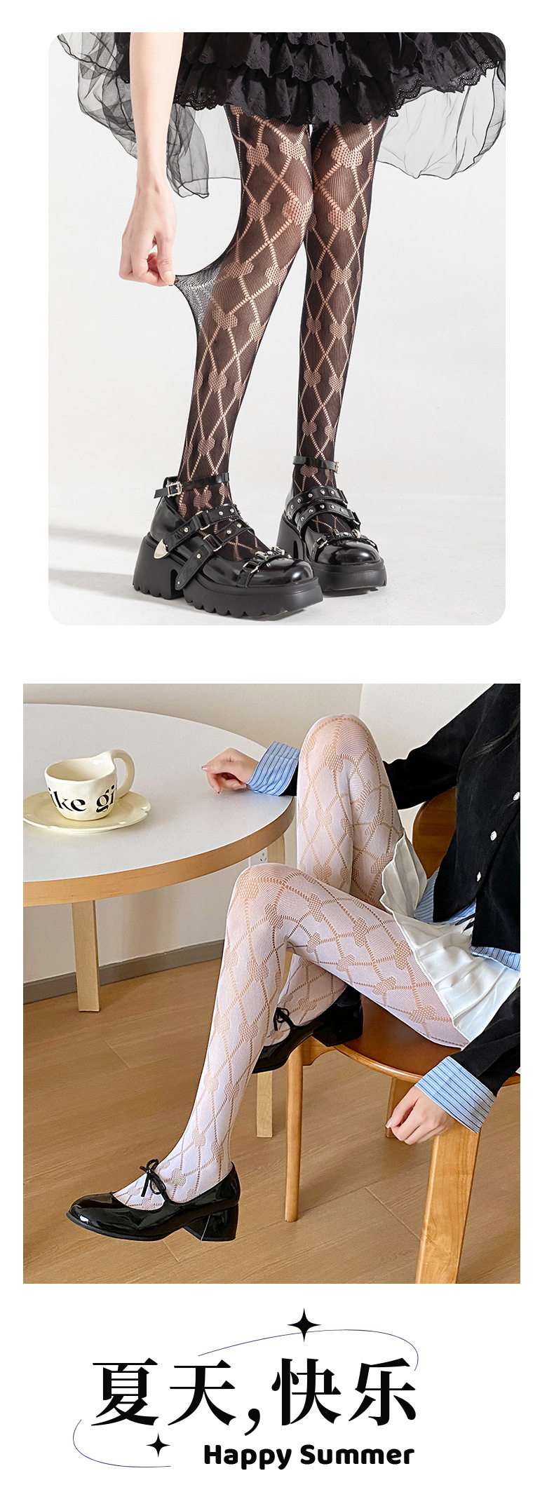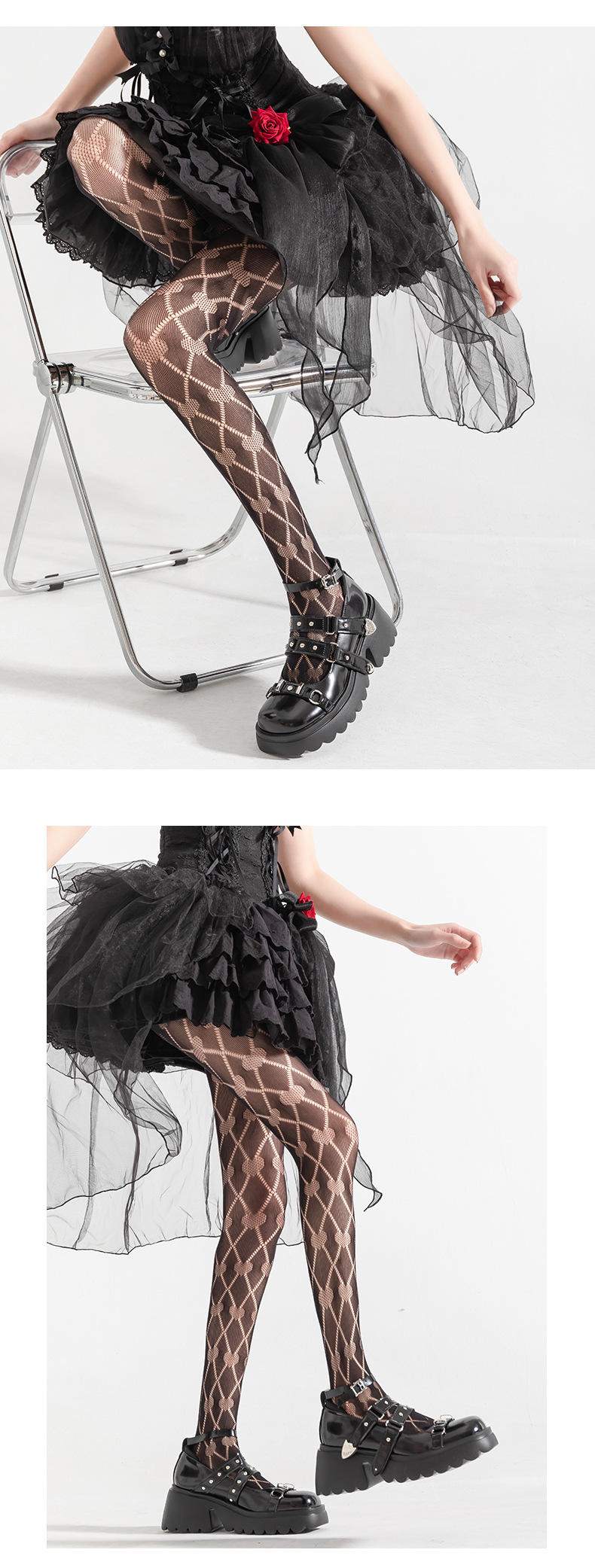 Y2g calcetines de red amor hueco rombo rasgado sub-cultura negro seda Lolita chica caliente bottoming ins marea pantimedias