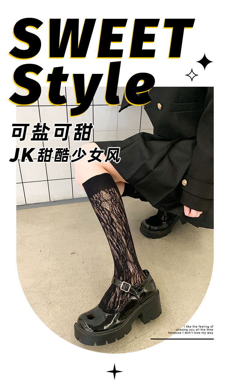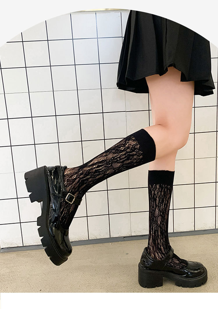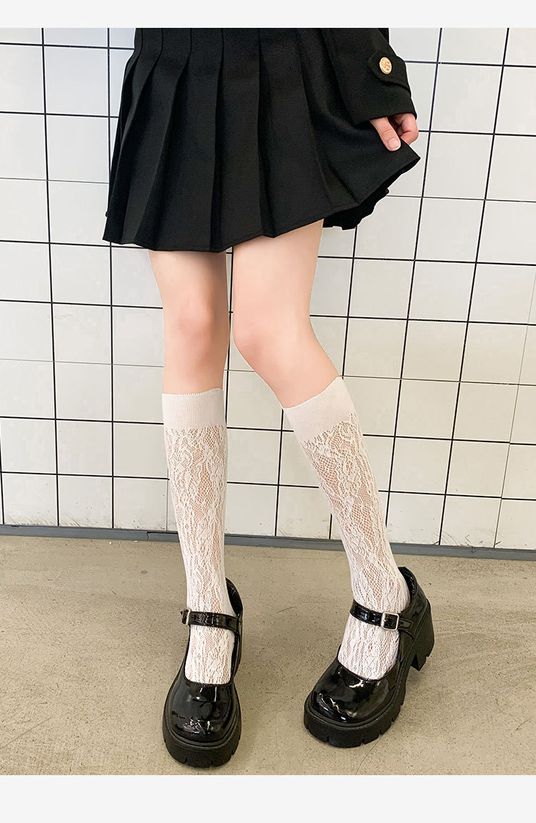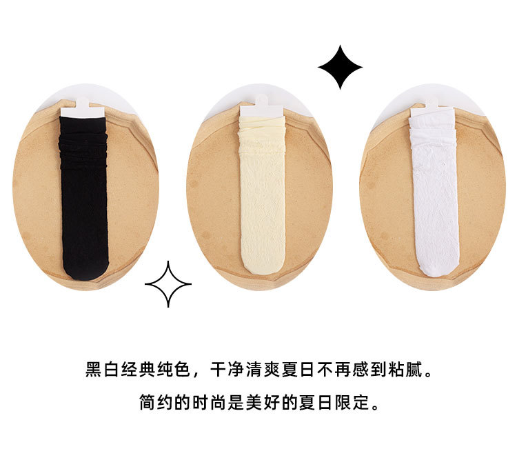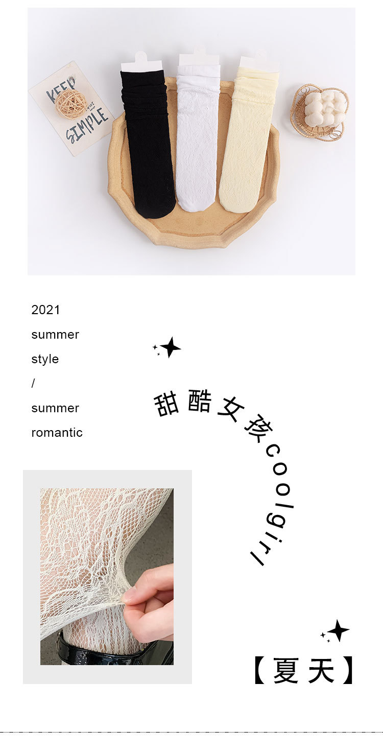 Calcetines de mujer de verano Delgado transpirable color sólido Lolita ratán flor pila calcetines negro y blanco calcetines de pantorrilla