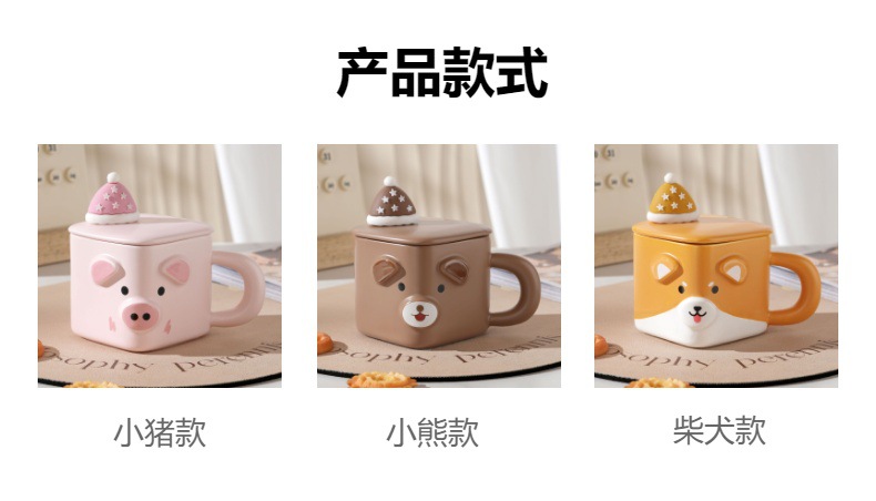 Taza de cerámica animal con forma de mascota linda de dibujos animados creativos con tapa Taza de agua de oficina doméstica de alto valor Taza de pareja