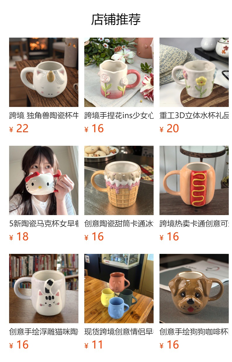 | Color | Taza de cerámica tipo A, taza de cerámica tipo B, taza de cerámica tipo C, taza de cerámica tipo D, taza de cerámica tipo E, taza de cerámica tipo F |