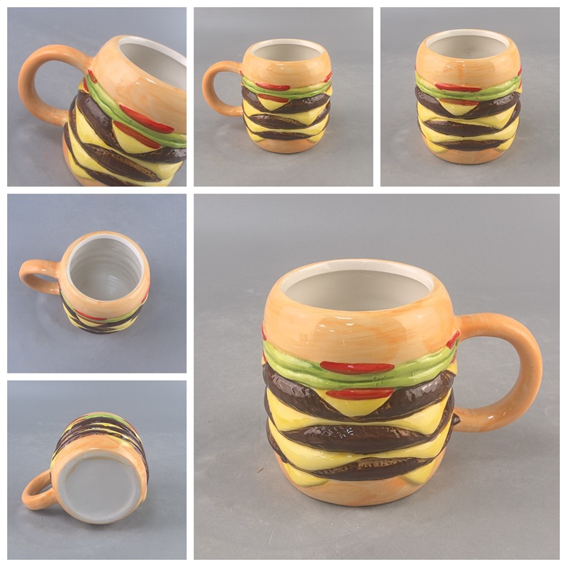 Taza de agua de hamburguesas creativas sin tapa encantadora taza de desayuno de cerámica de gran capacidad taza de hamburguesas