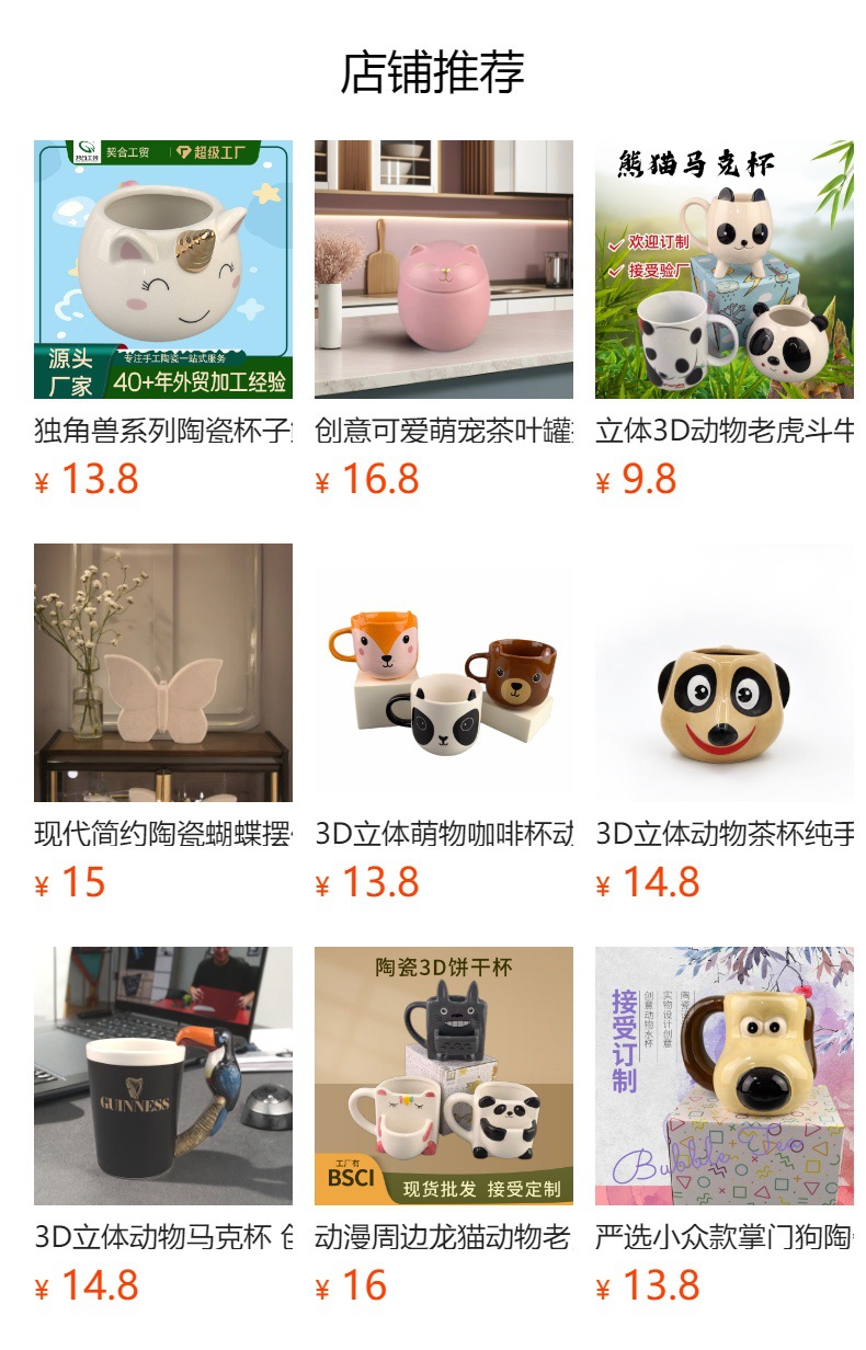 | Color | Cerámica tigre mango taza, cerámica perezosa mango taza, cerámica cebra mango taza |