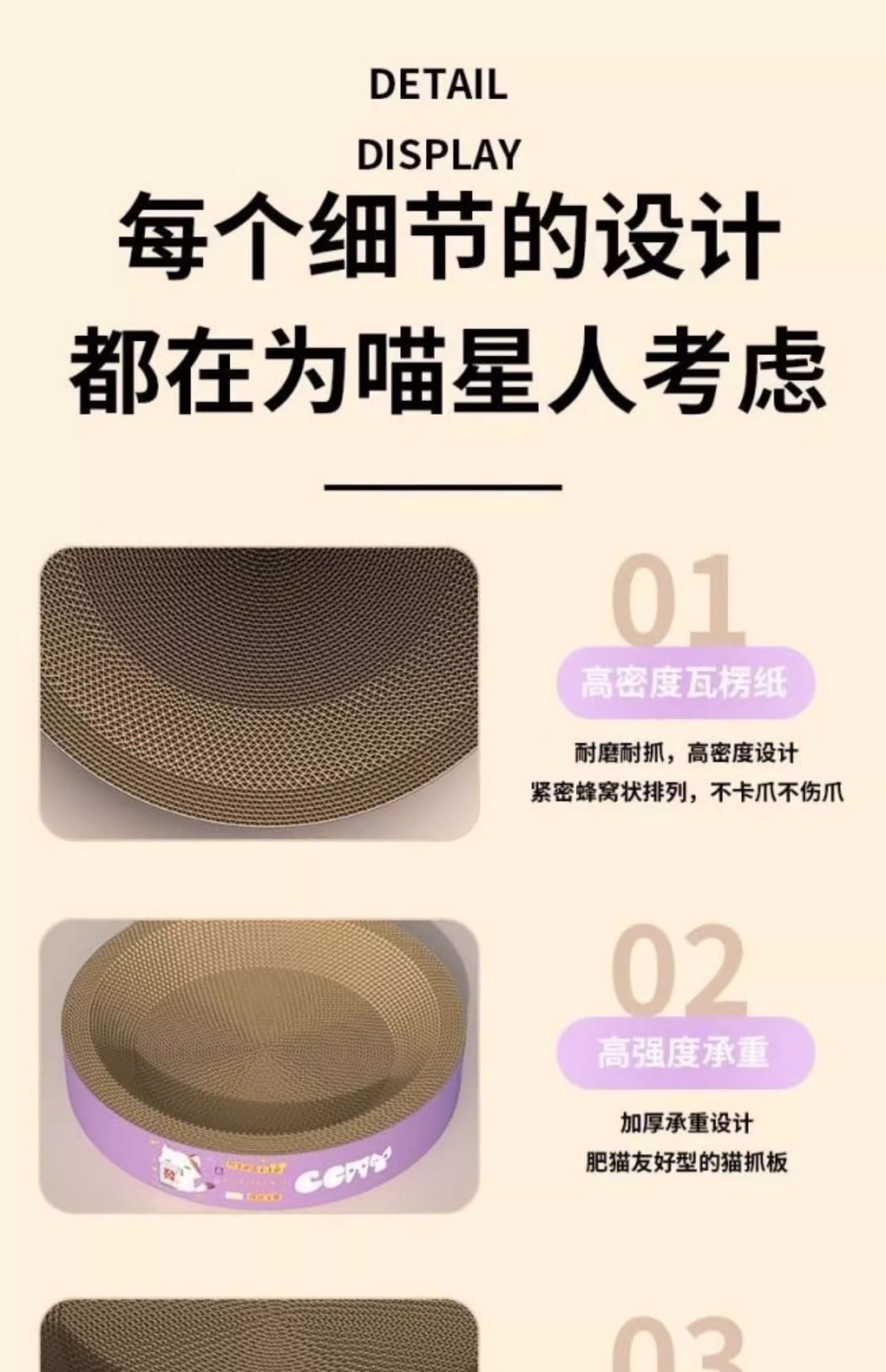 Tablero de agarre de gato redondo/pequeño