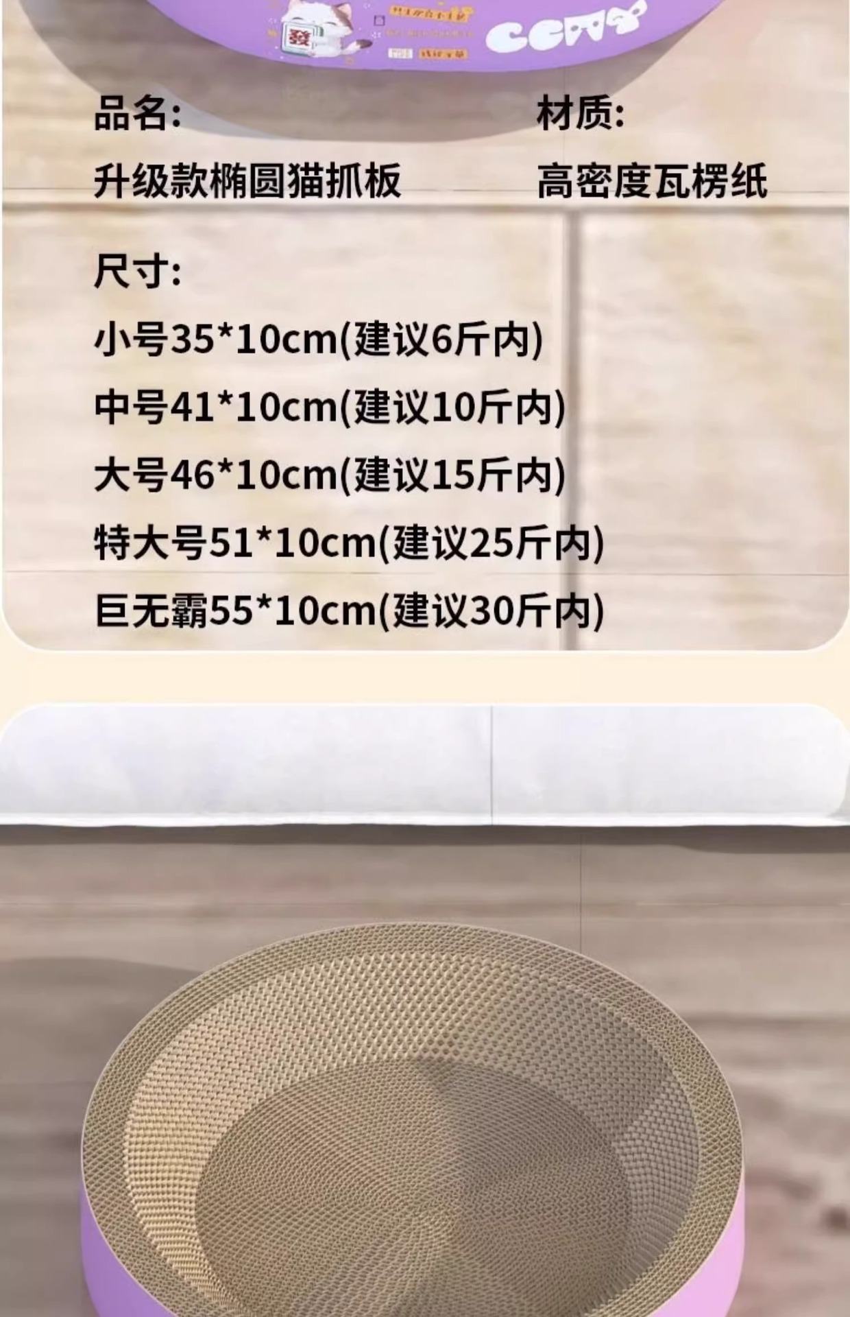 Tablero de agarre de gato ovalado/pequeño