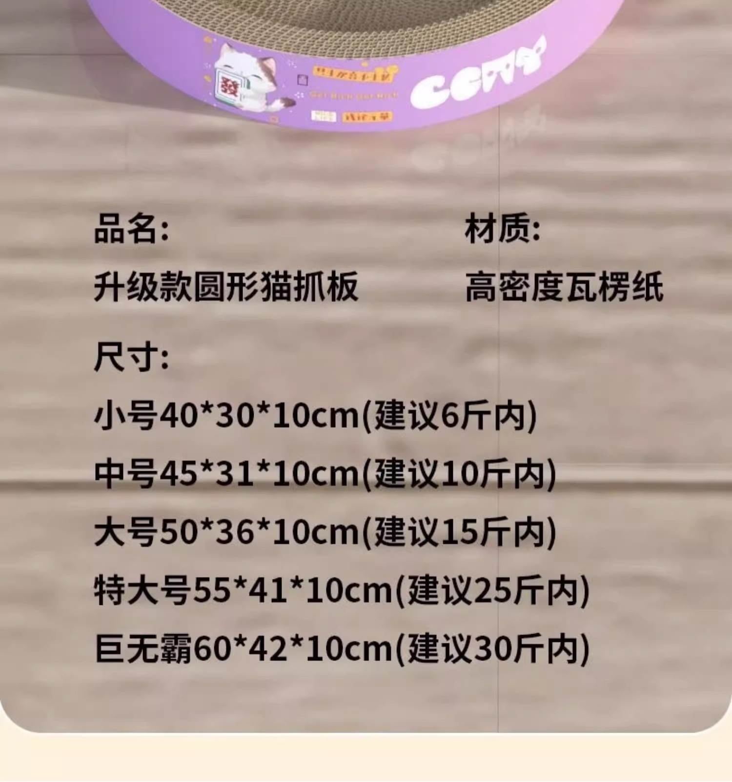 | Colores | Tablero de agarre de gato redondo/pequeño,Tablero de agarre de gato redondo/mediano,Placa de agarre de gato redonda/grande,Placa de agarre de gato redonda/de gran tamaño,Tablero de agarre de gato redondo/Big Mac,Tablero de agarre de gato ovalado/pequeño,Placa de agarre de gato ovalada/mediana,Placa de agarre de gato ovalada/grande,Placa de agarre de gato ovalada/de gran tamaño,Placa de agarre de gato ovalada/Big Mac |