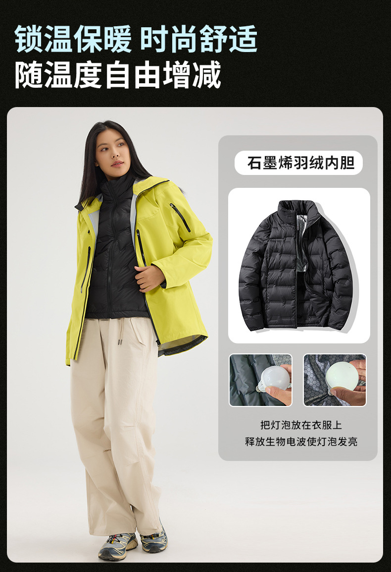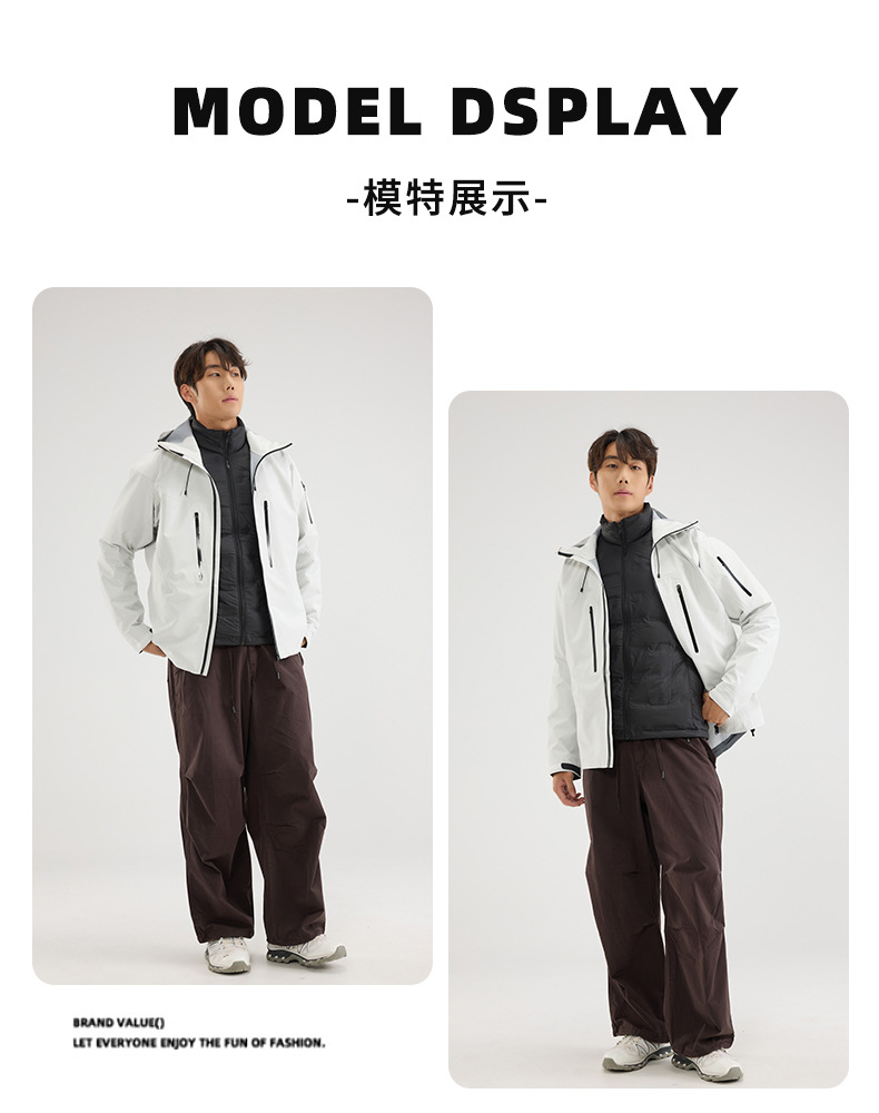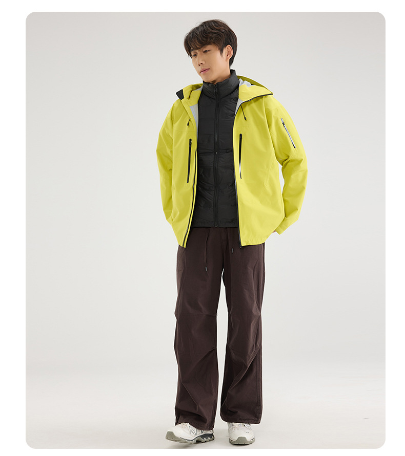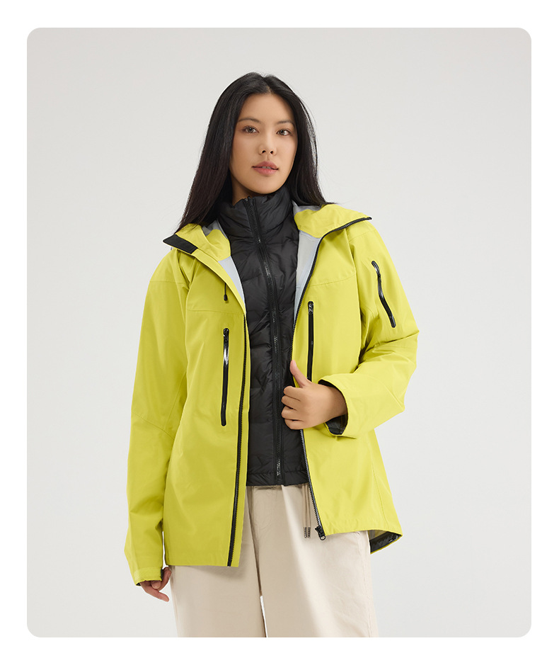 Bird Family Mismo estilo completamente sellado en caliente para hombres y mujeres ropa de montañismo al aire libre Chaqueta de plumón de tres a prueba de explosiones Chaqueta de caparazón duro con capucha