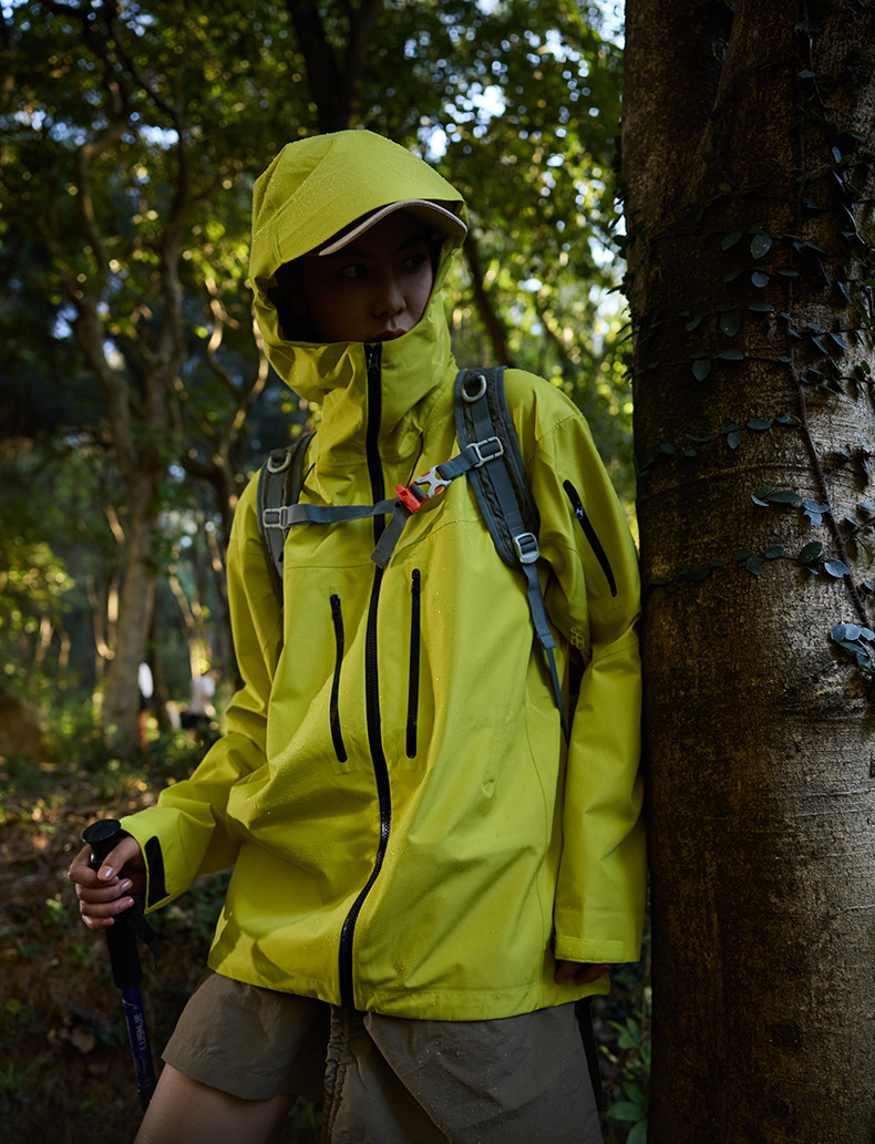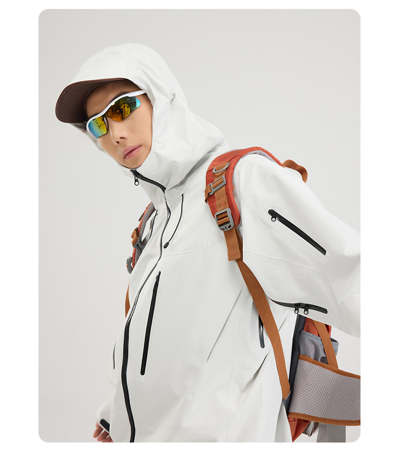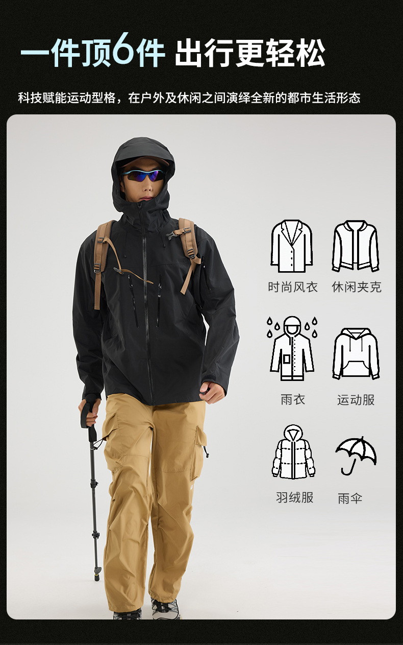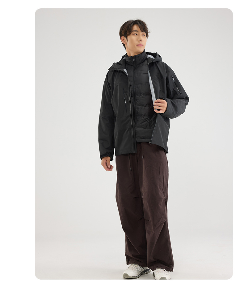 Bird Family Mismo estilo completamente sellado en caliente para hombres y mujeres ropa de montañismo al aire libre Chaqueta de plumón de tres a prueba de explosiones Chaqueta de caparazón duro con capucha