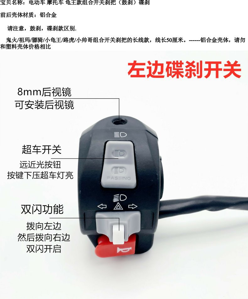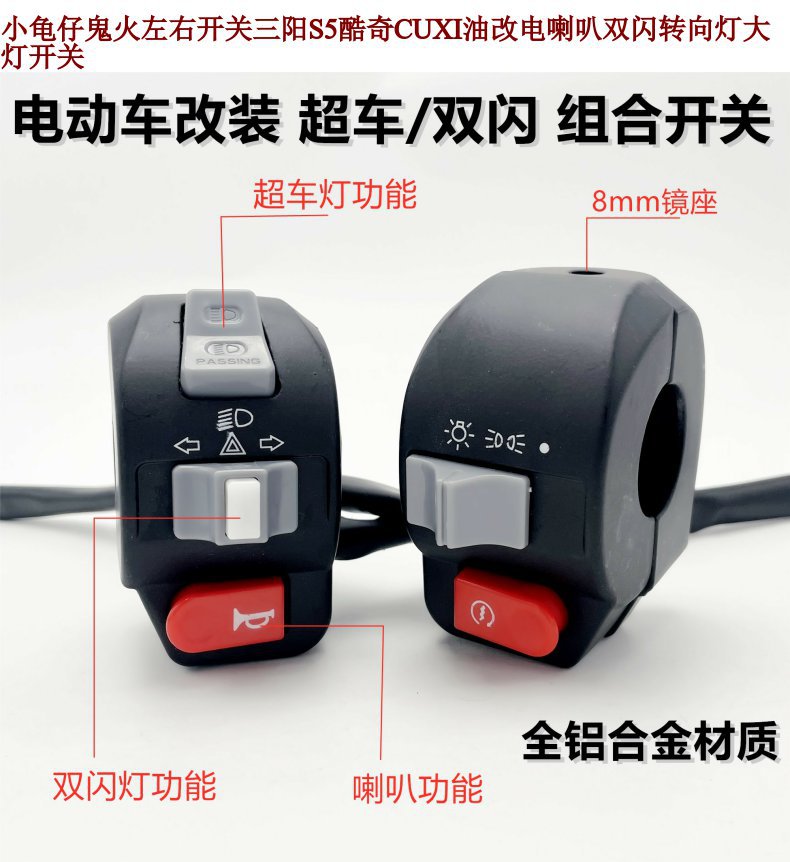 Interruptor izquierdo y derecho de Little Turtle Ghost Fire Sanyang S5 Cool Qi DJI Aceite a altavoz eléctrico Interruptor de combinación de faros