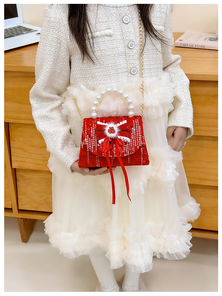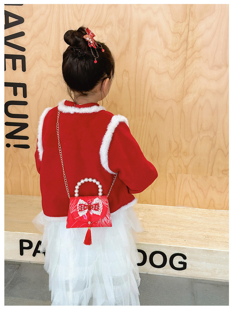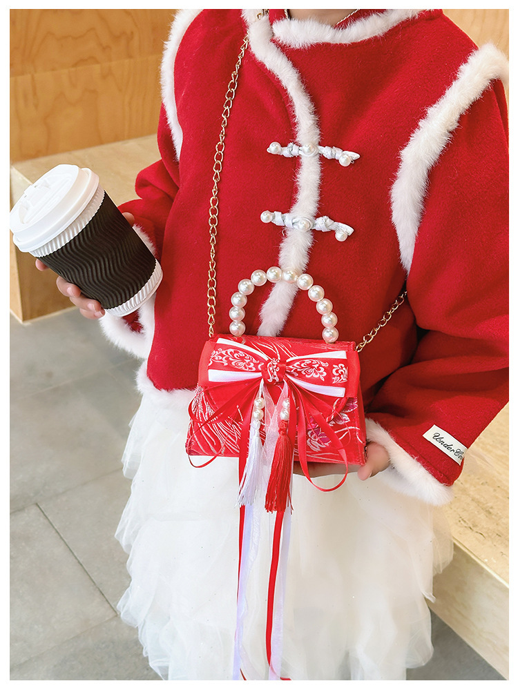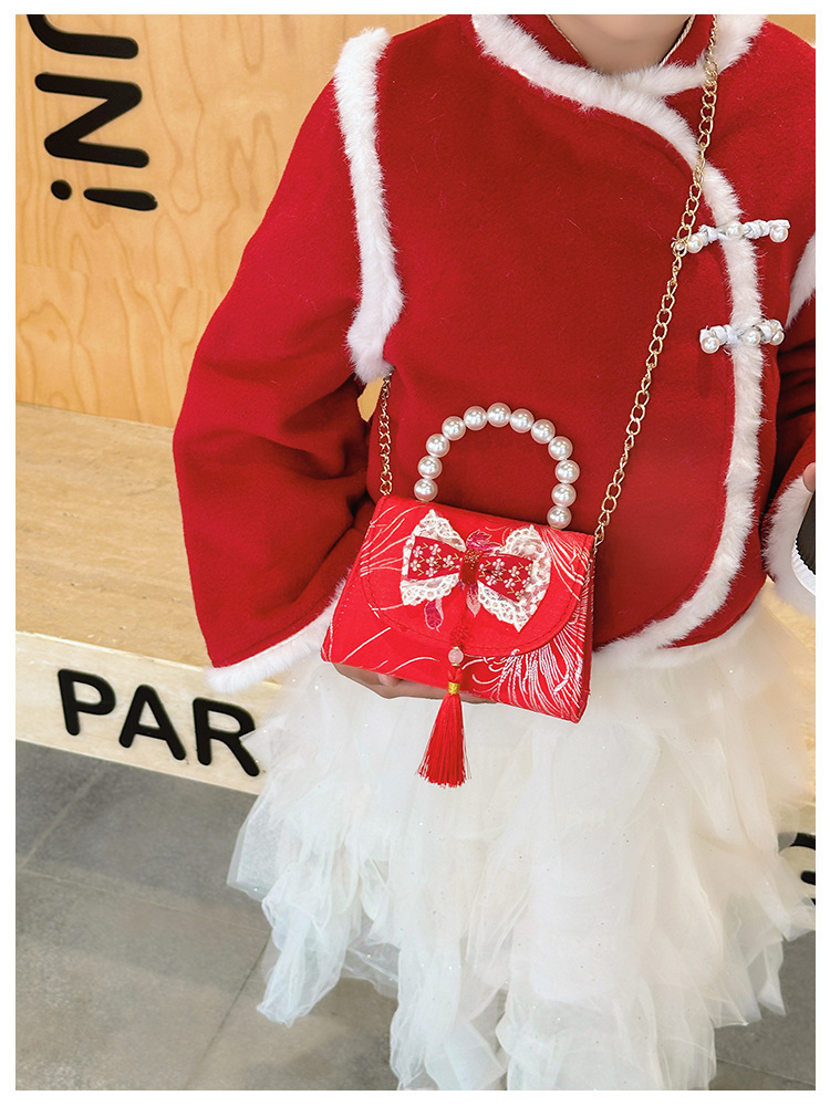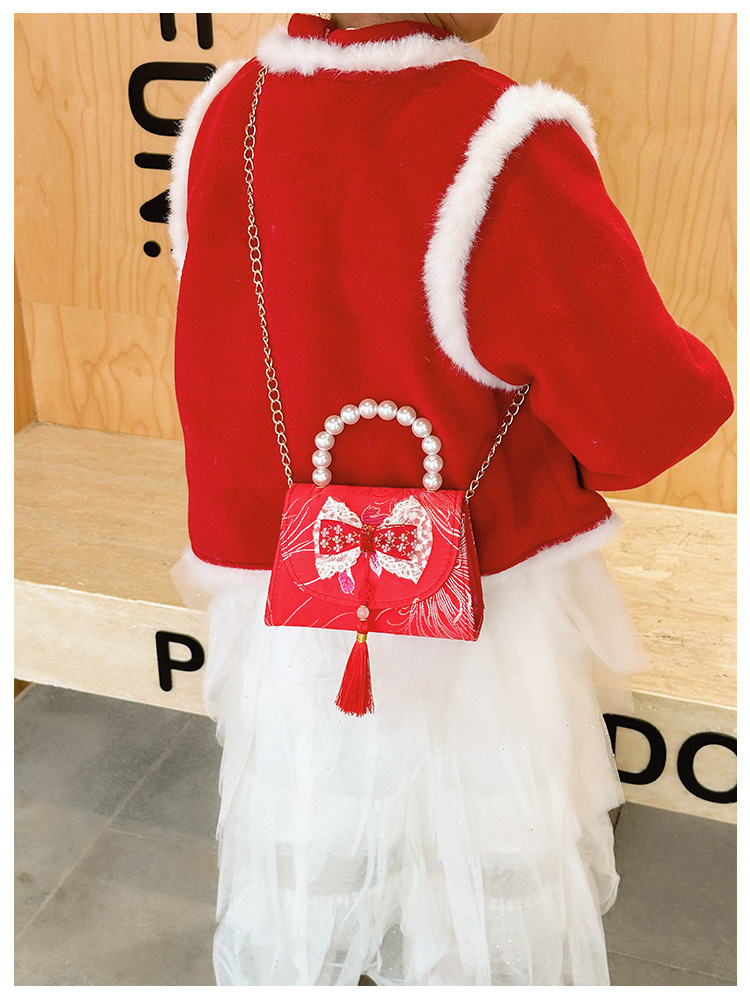 Nueva princesa bolso de perlas de Año Nuevo bolso rojo de la niña de Año Nuevo pequeño diseño de viento fragante bolso especial