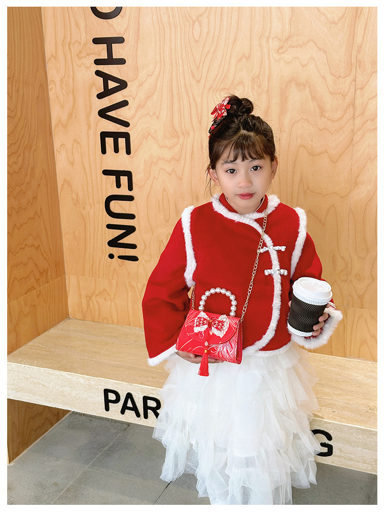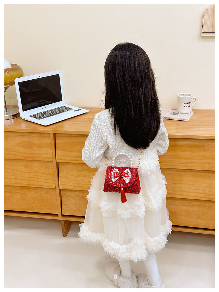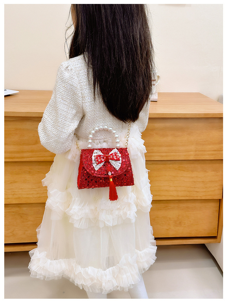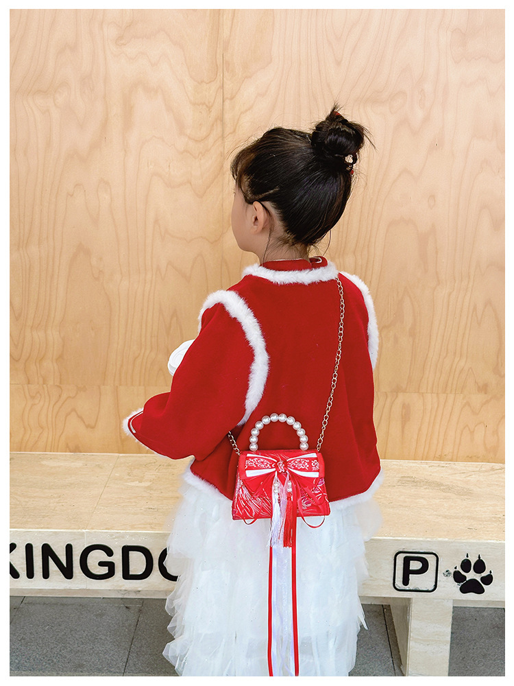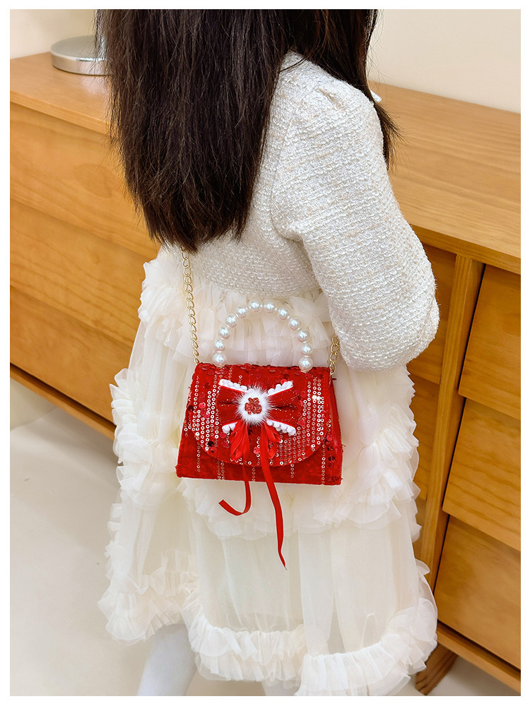 Nueva princesa bolso de perlas de Año Nuevo bolso rojo de la niña de Año Nuevo pequeño diseño de viento fragante bolso especial