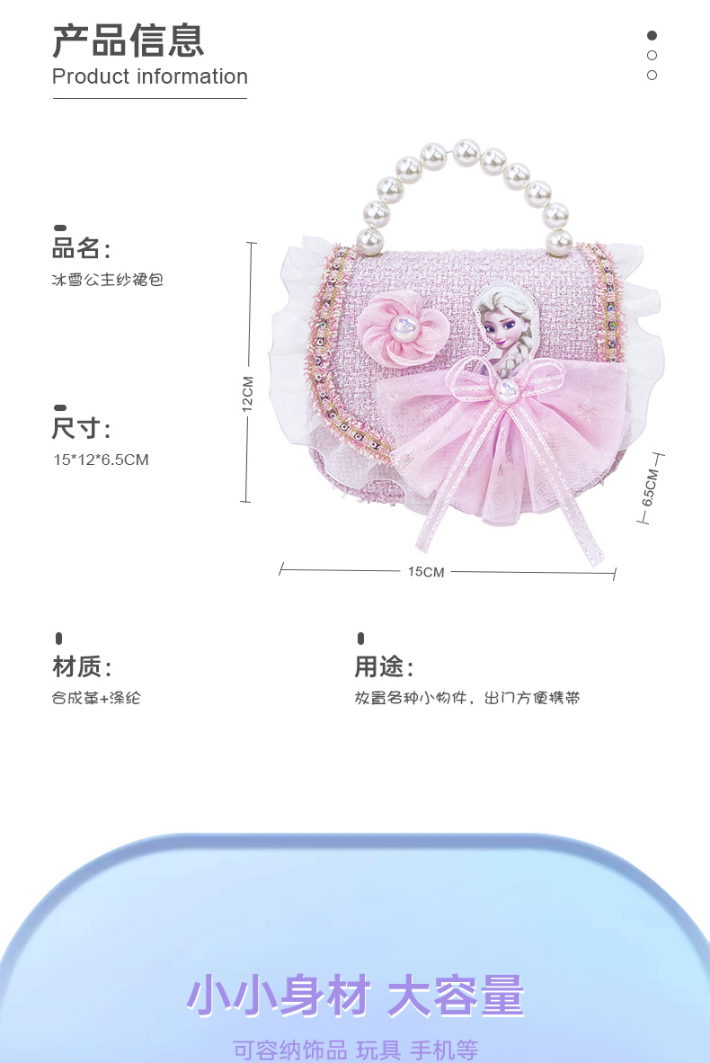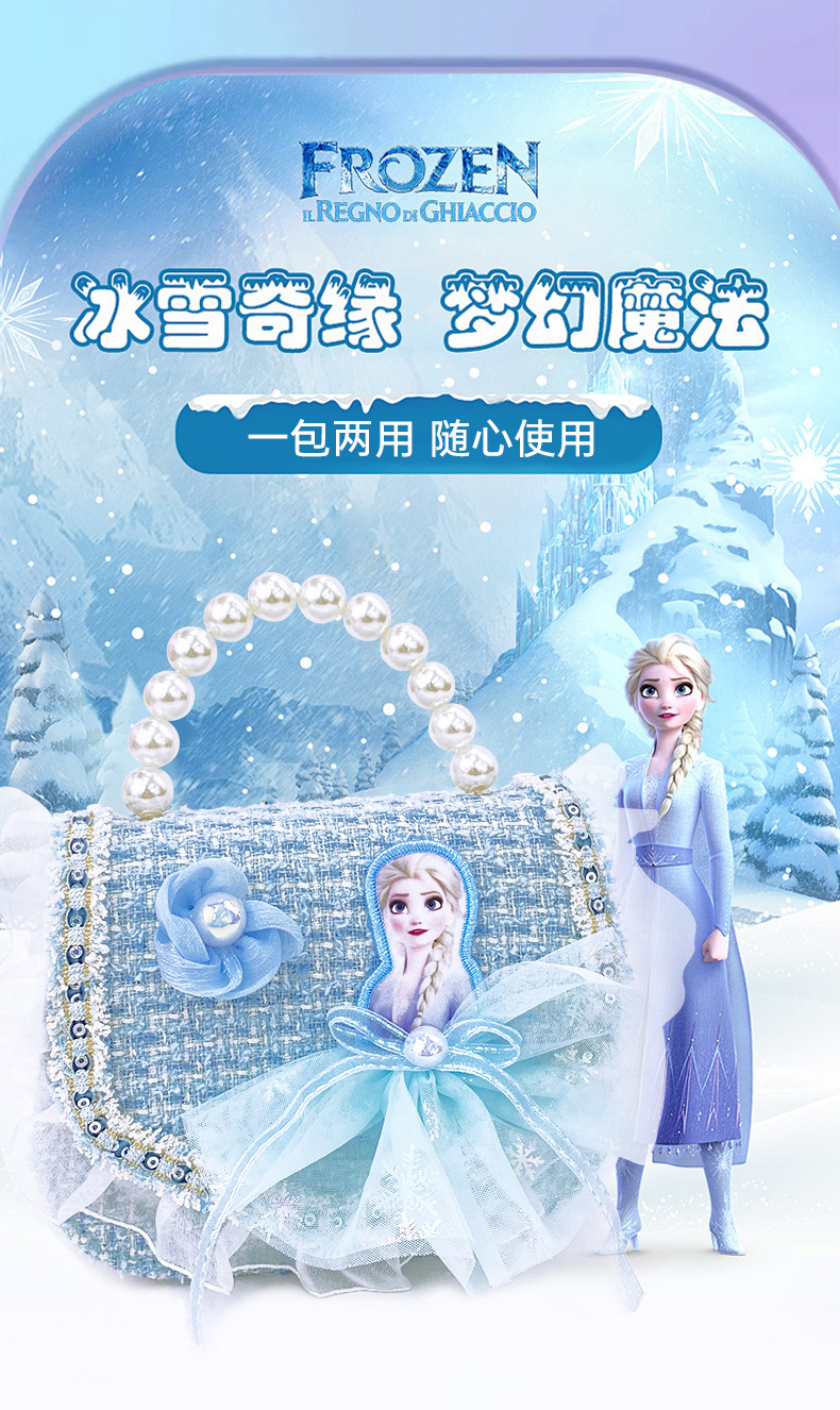 Bolso Infantil de la Princesa Elsa de Frozen, Bolso de Estilo Chanel para Niñas, Bolso Bandolera para Niñas Pequeñas